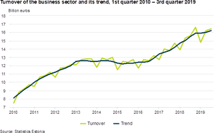 In the third quarter of 2019, average gross monthly wages and salaries were highest at state institutions and businesses (€1,723) and at businesses owned by foreign private entities (€1,650). The fastest on-year increase was recorded at state institutions and businesses (10.3 percent); the slowest, meanwhile, was recorded at businesses owned by Estonian (7.5 percent) and foreign private entities (7.6 percent).