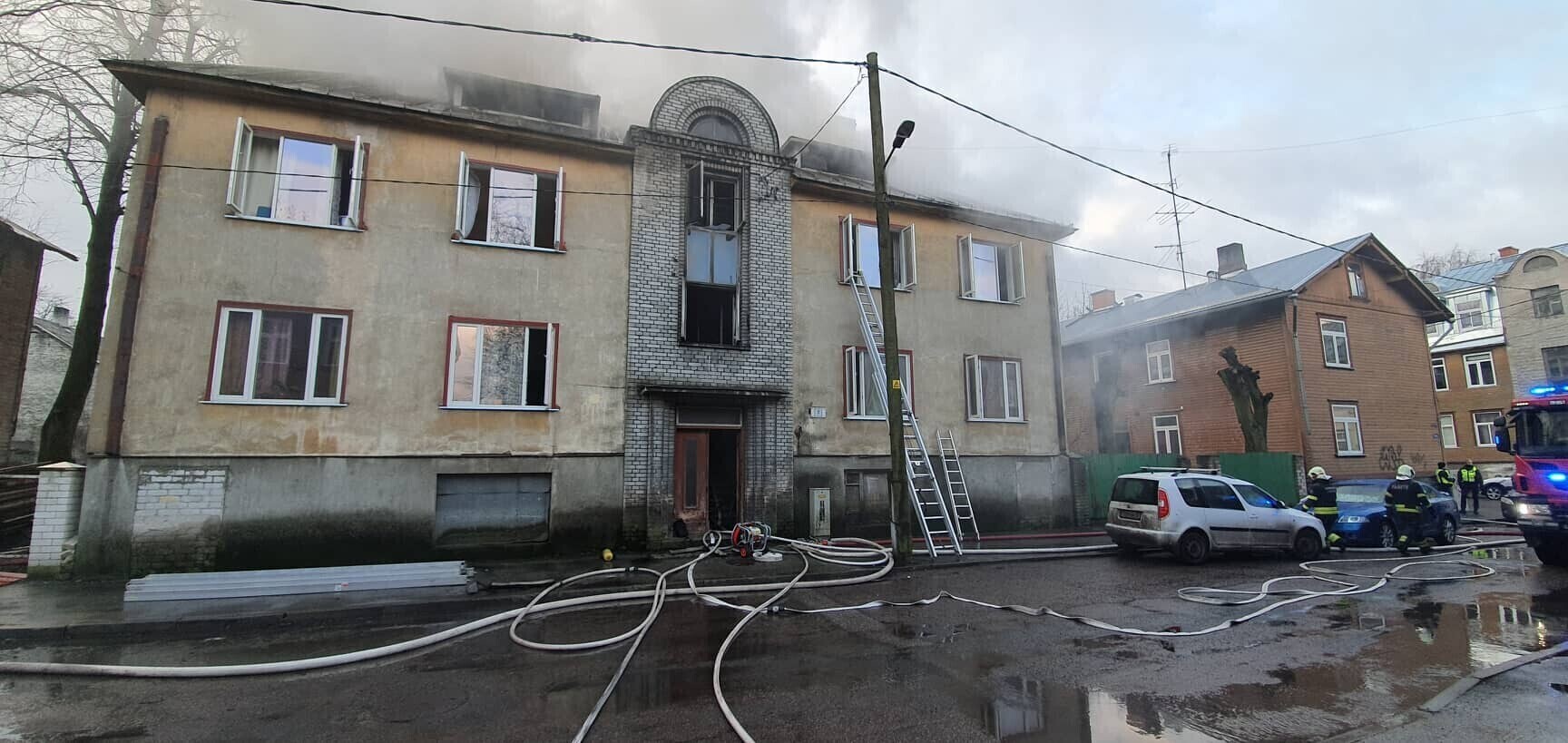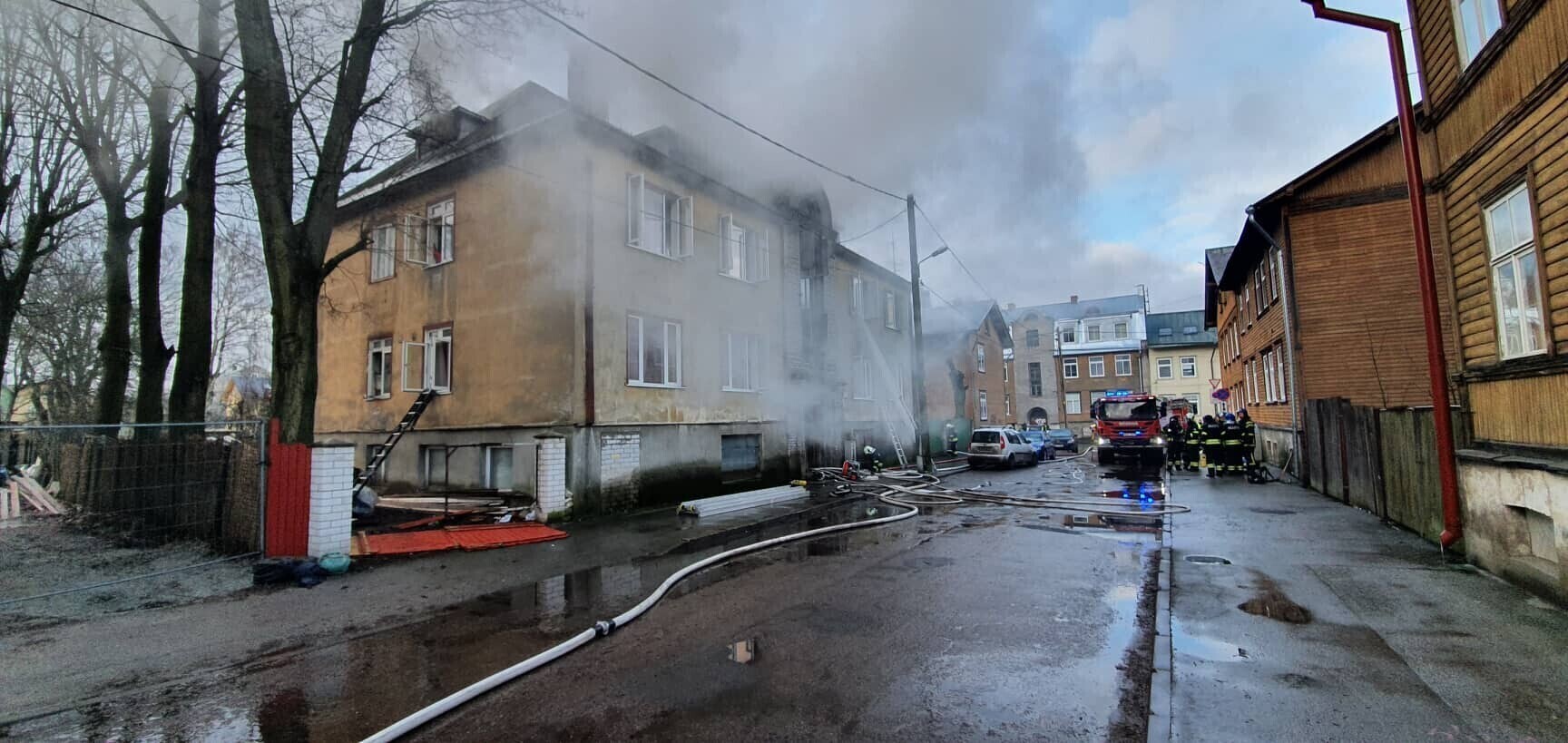 As a lot of smoke is spreading from the house fire the Rescue Board is asking residents of Pebre, Õle and Timuti streets to close their windows and doors and to turn off ventilation.
