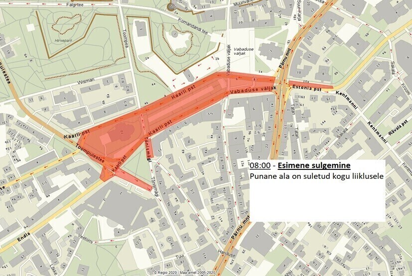 Map: Independence Day traffic disruptions in Tallinn