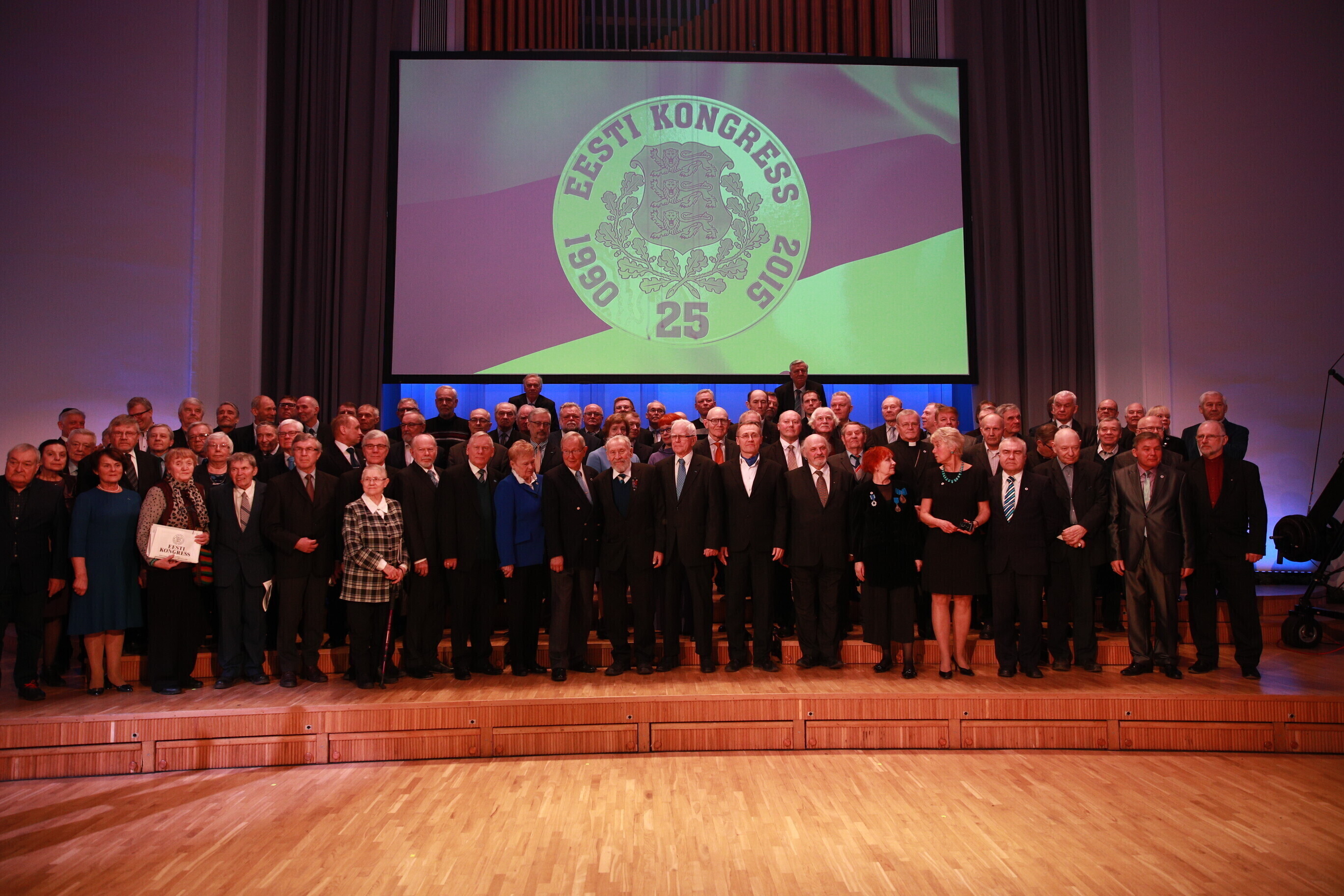 The chairman of the Estonian Committee, Tunne Kelam (1990-1992) spoke at the celebration. He said the accomplishment of the Congress of Estonia was a heroic act of the whole nation.