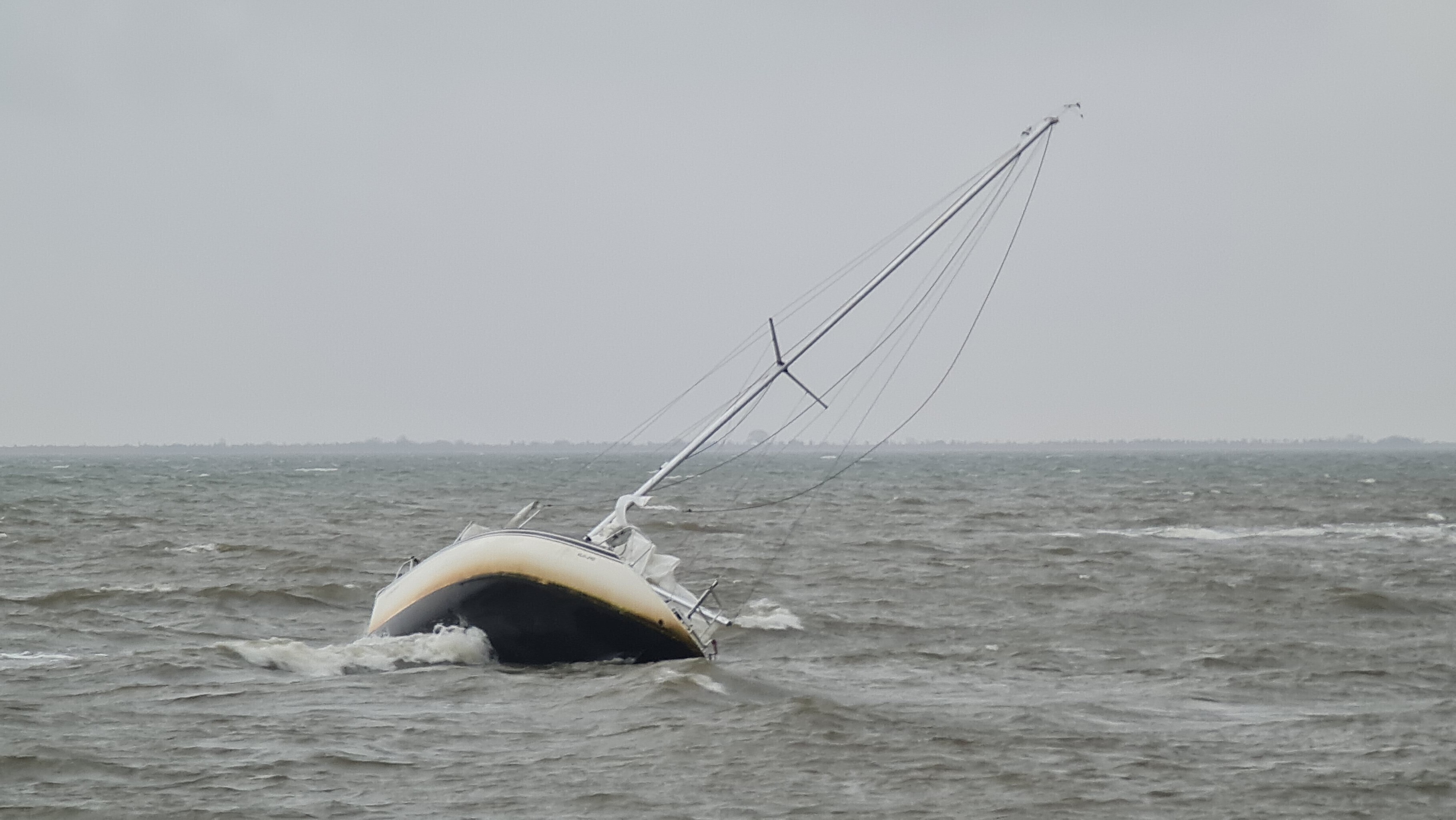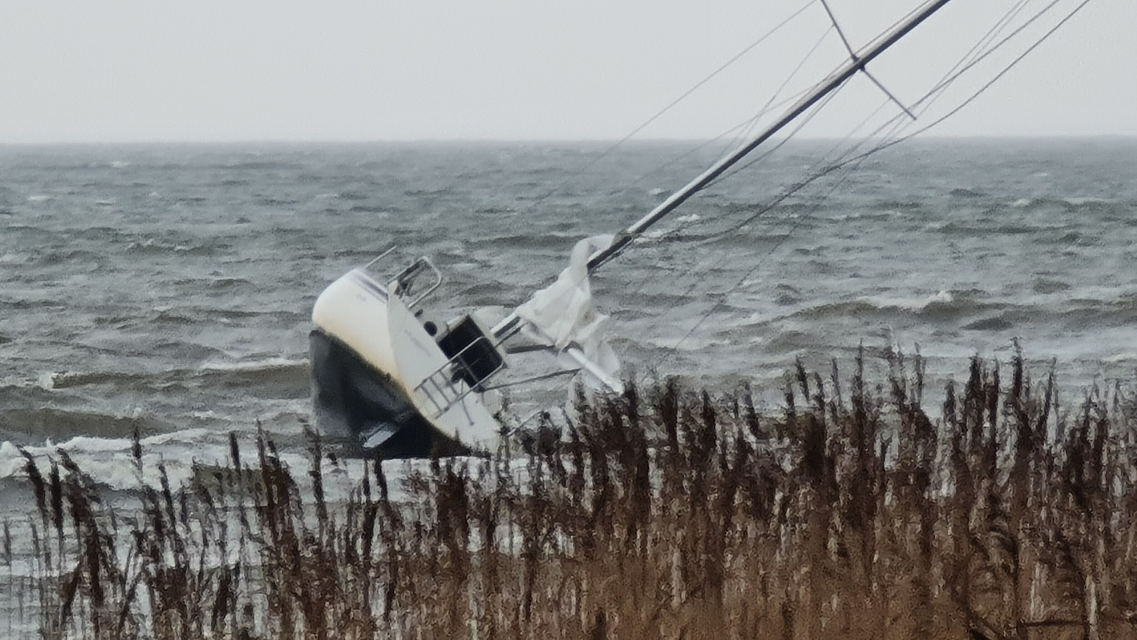 The yacht, which has been damaged and is currently lying part-capsized and close to the shore, may have become stranded due to engine failure, and was left in place overnight.