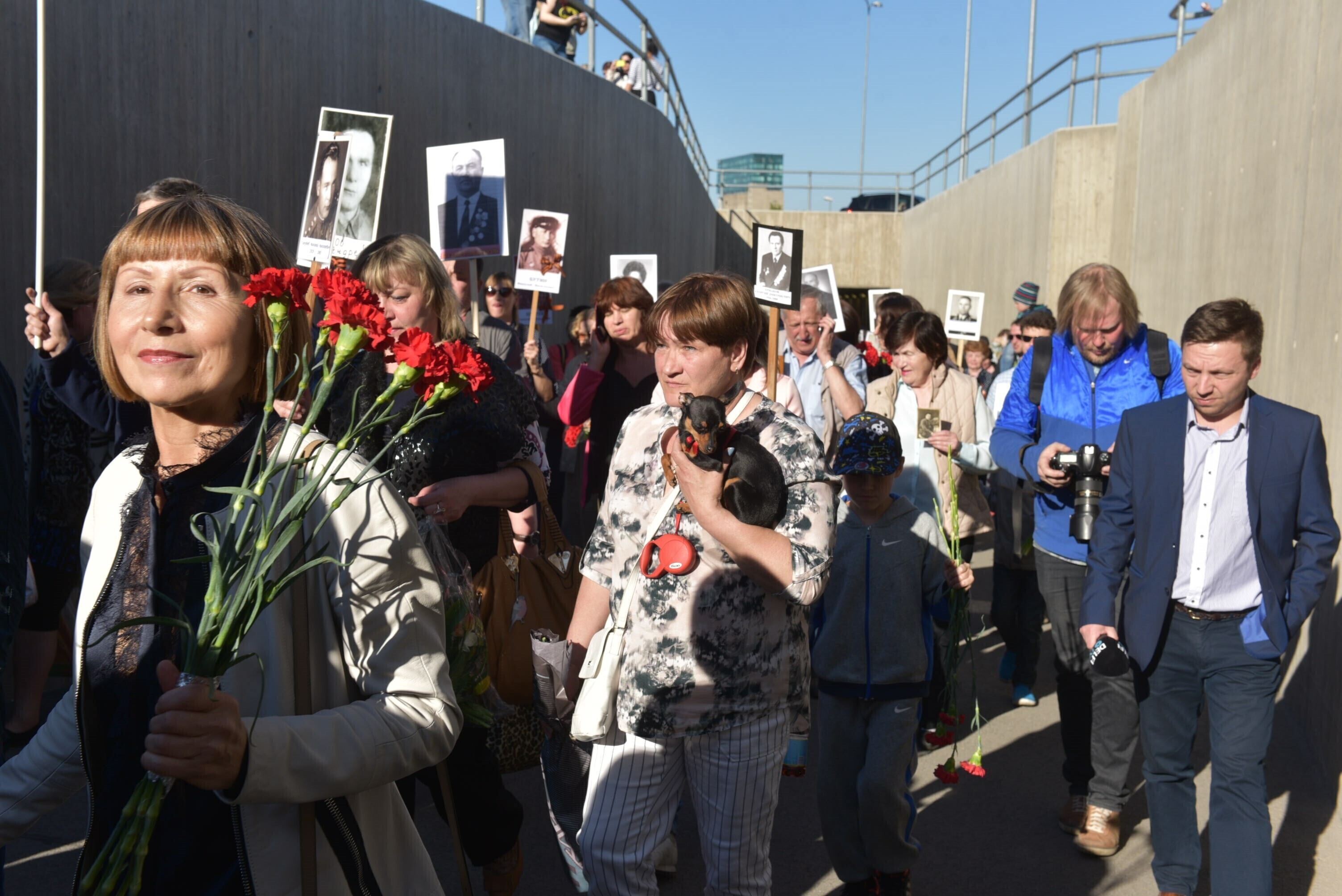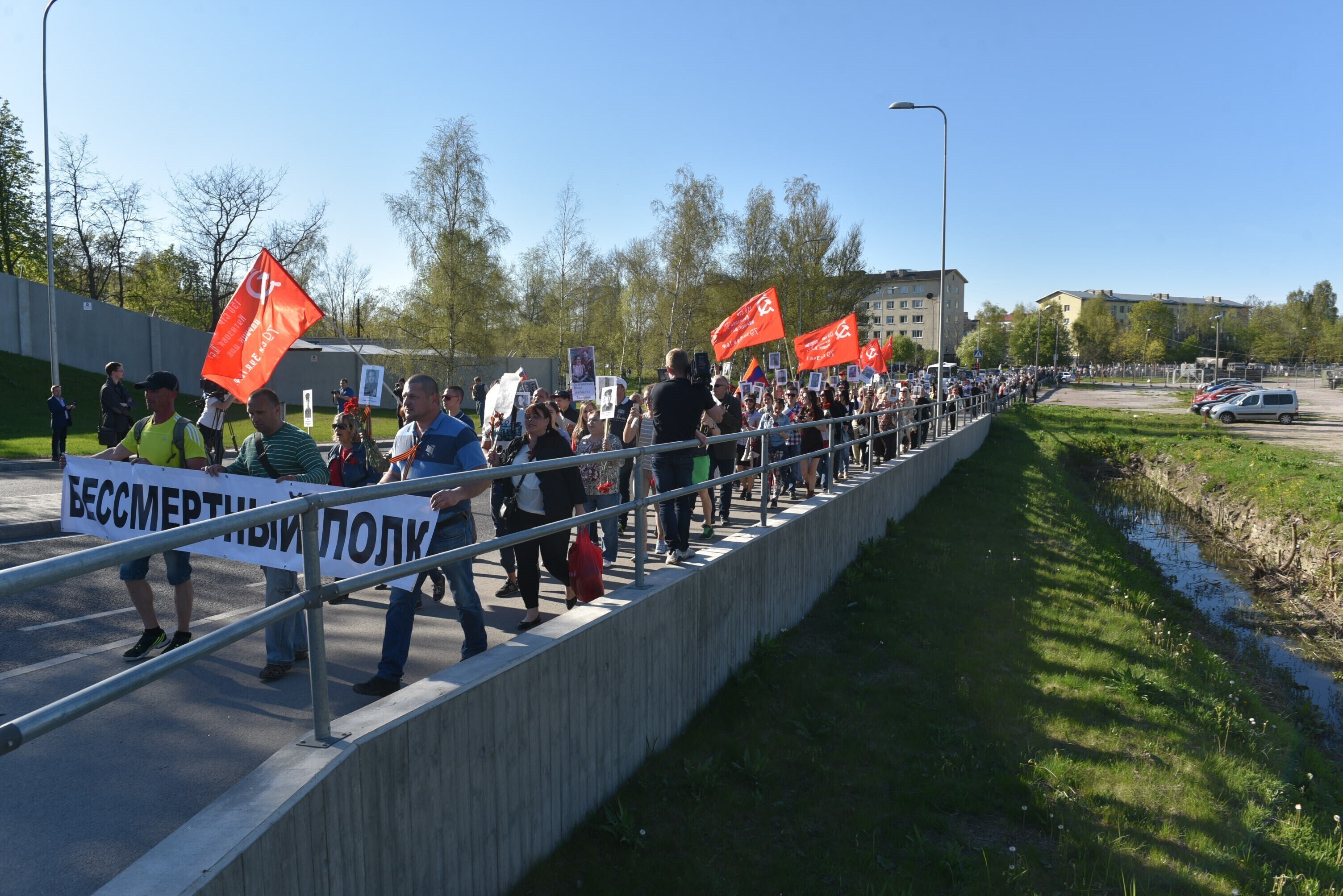 While the city did not grant a permit to close Filtri Street, the main road leading from Tallinn Bus Station to the Defence Forces Cemetery of Tallinn, where the Bronze Soldier memorial to WWII’s Soviet troops is located, the march took place along this route anyway, escorted by police to ensure road safety.