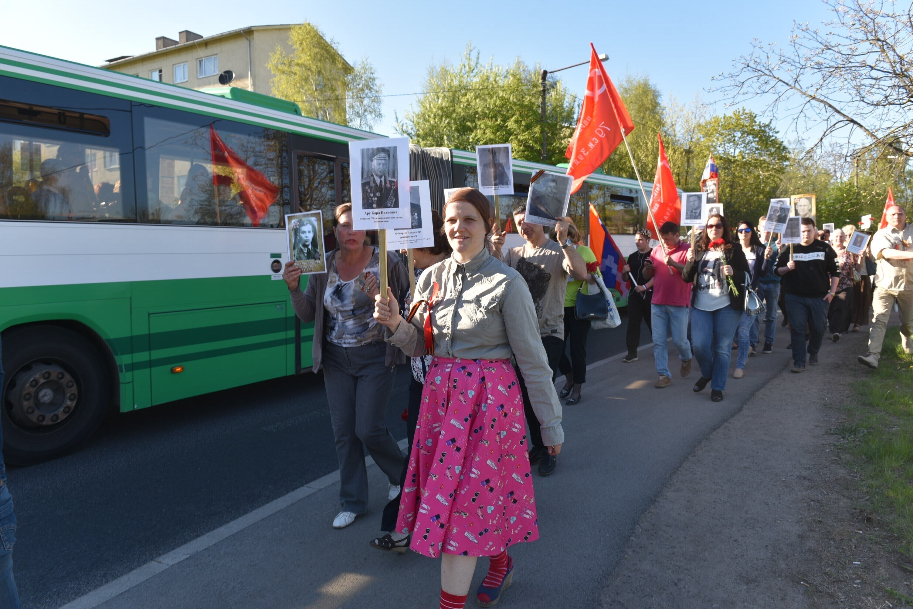 The traditional Victory Day parade in Moscow has in recent years been followed by the March of the Immortal Regiment, where hundreds of thousands march through the center of Moscow, carrying photographs of ancestors or other relatives who fought in the Red Army during WWII.