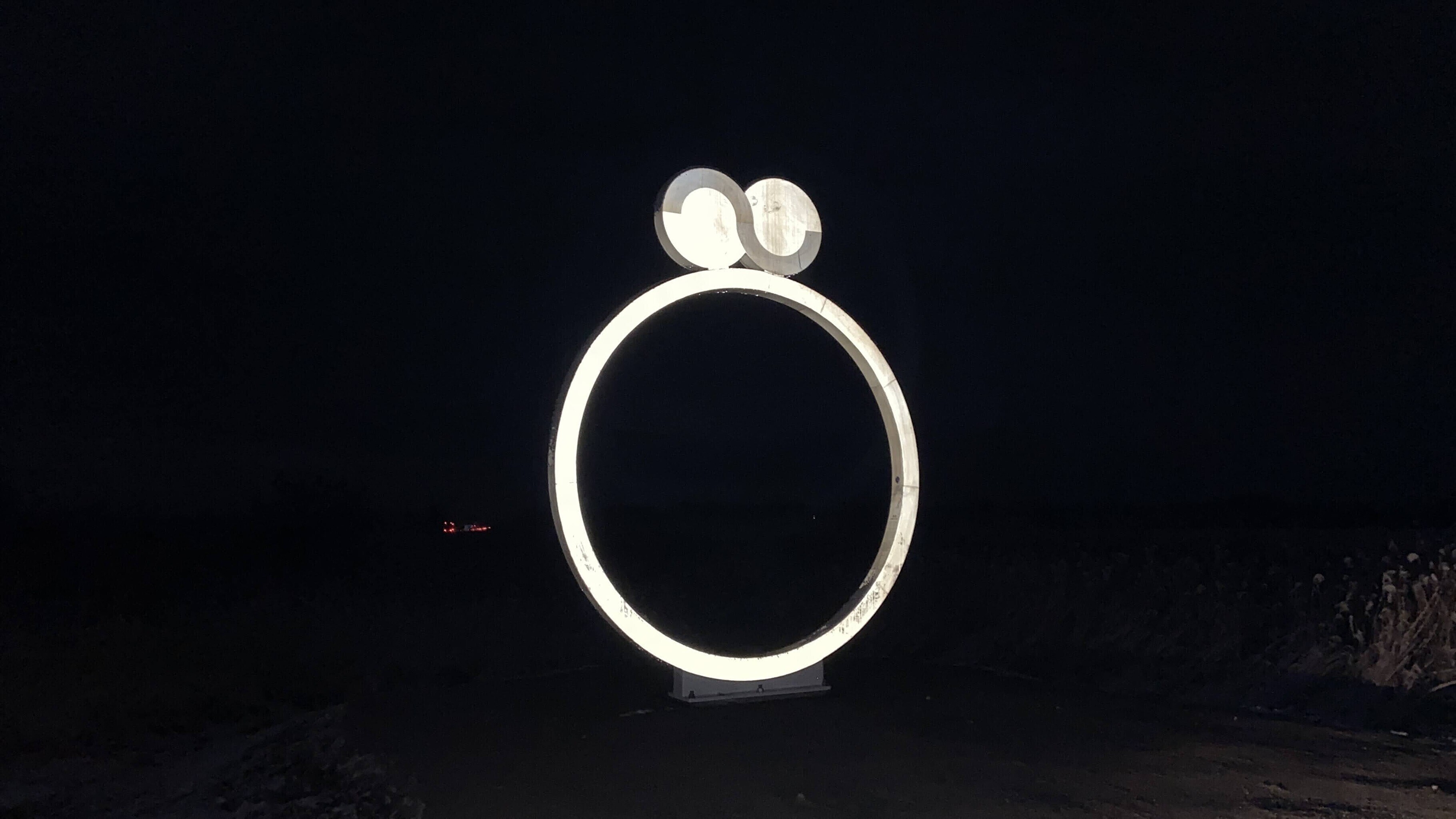 The Ö monument, which is visible during the day and night, was the resulting compromise. It is 5-meters tall and sits beside the Kuressaare-Kuivastu road. It was unveiled at a ceremony on Monday.