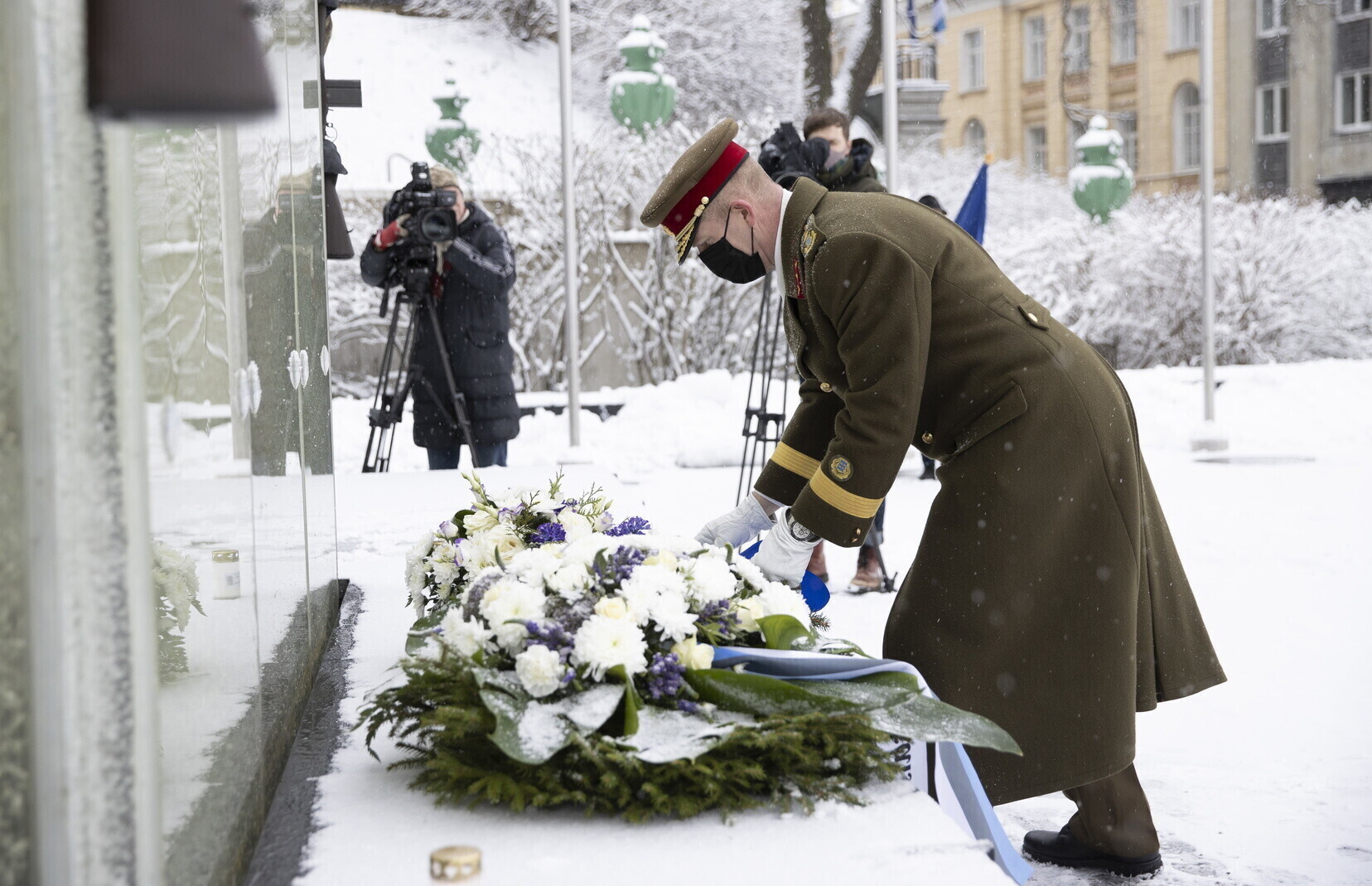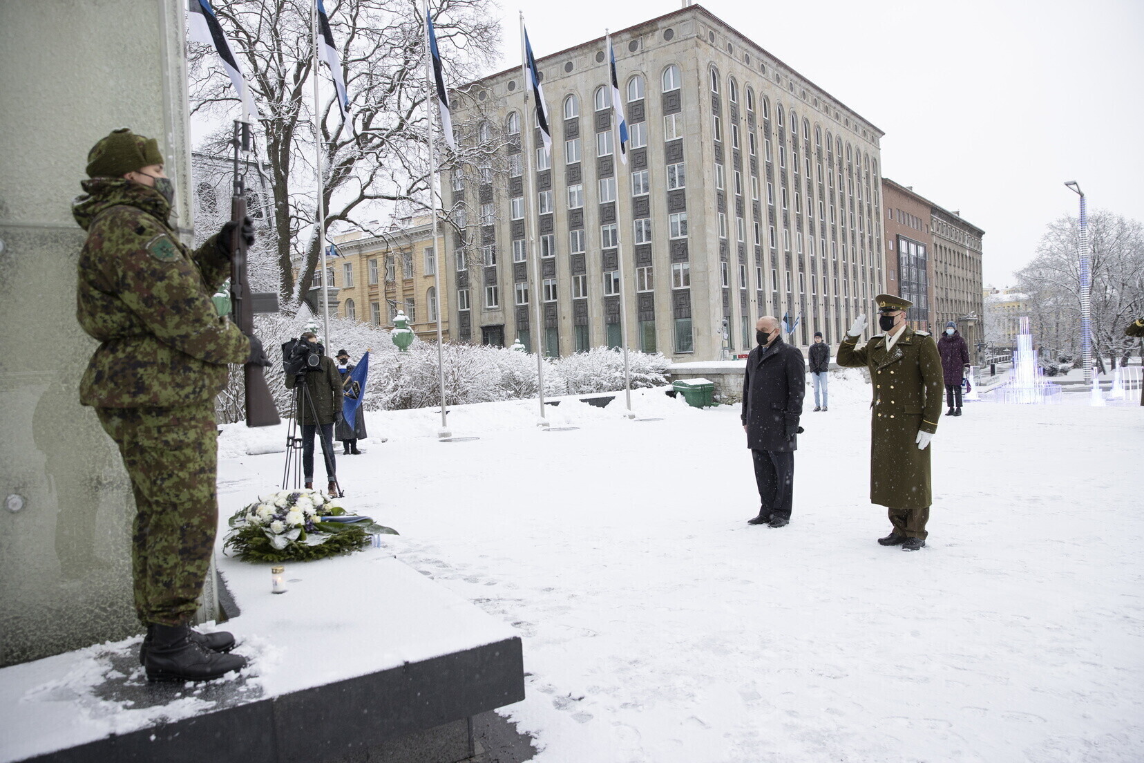 Luik was joined by Estonian Defense Forces (EDF) commander, Maj. Gen. Martin Herem and commander of the volunteer Defense League (Kaitseliit), Brig. Gen. Riho Ühtegi at Sunday morning's ceremony, which will be mirrored by representatives from both organizations at memorial services nationwide.