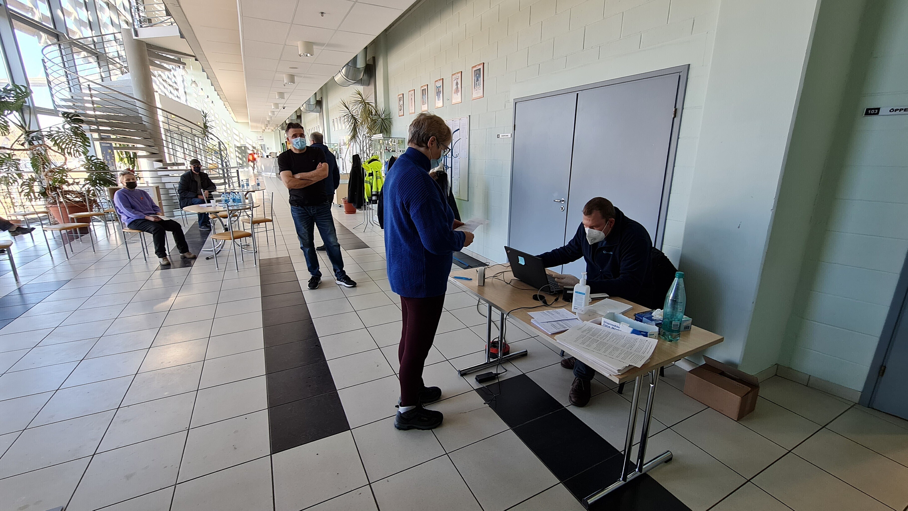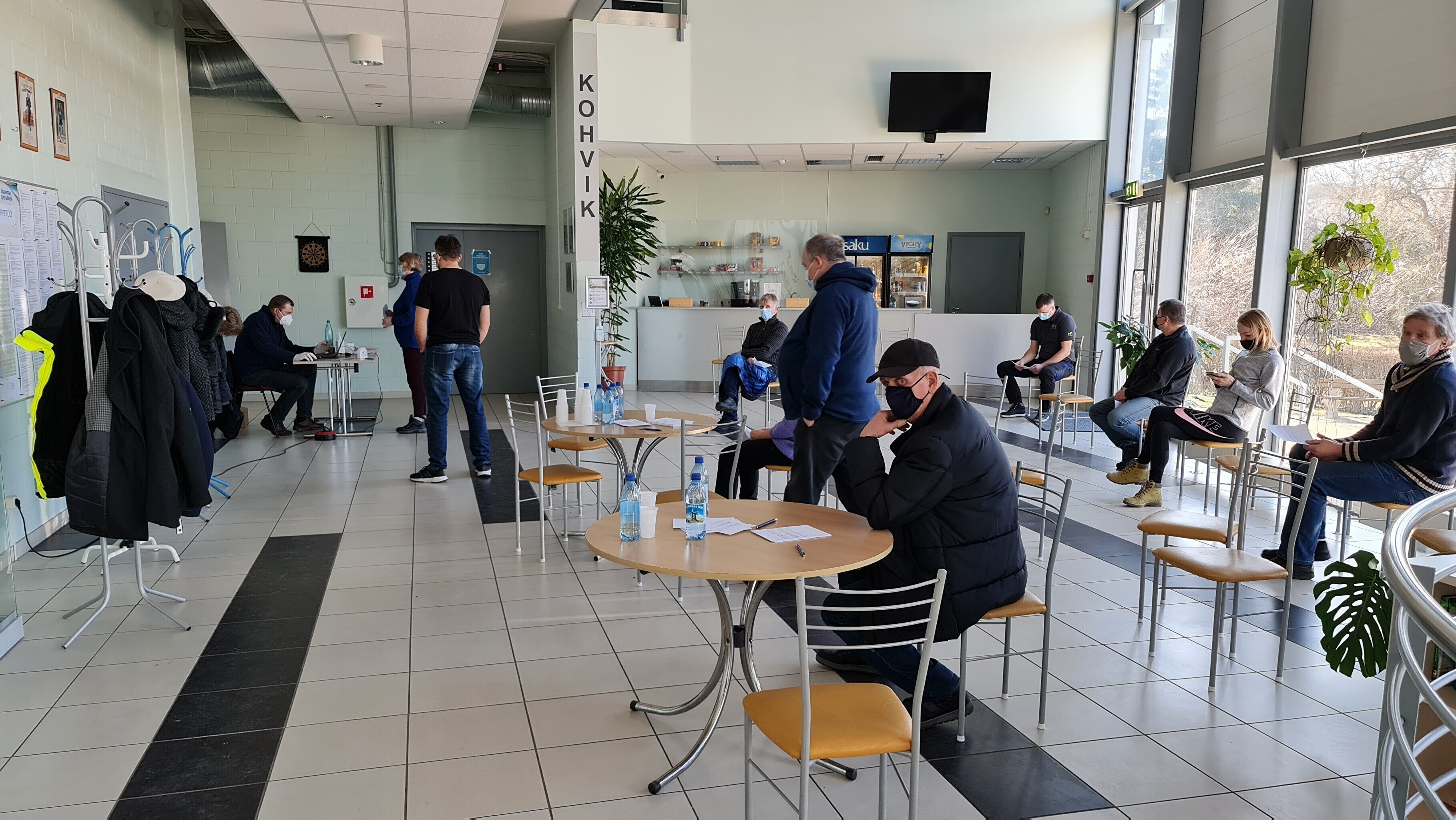 ERR's Saaremaa correspondent took pictures of the vaccinations taking place in a sports hall in the island's capital Kuressaare on Thursday.