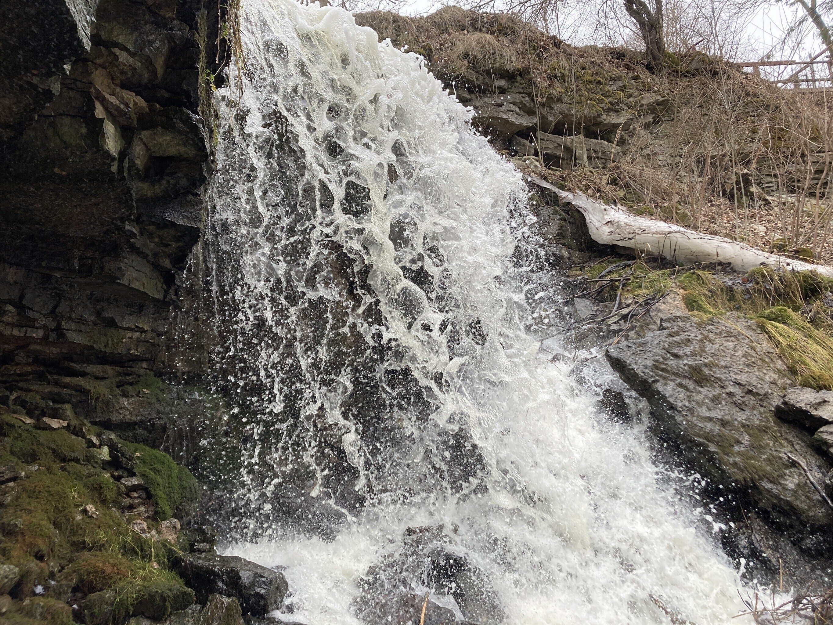 The Langevoja cascade is made up of two drops, the first one being 1.5 m in height, the lower one drops down 4 m.