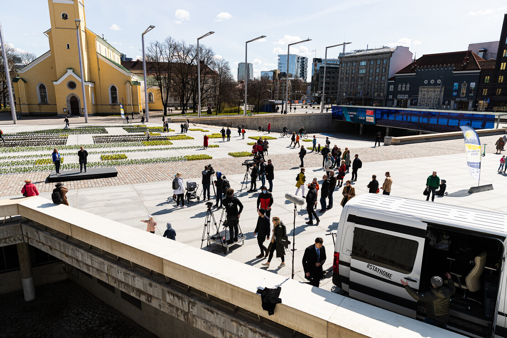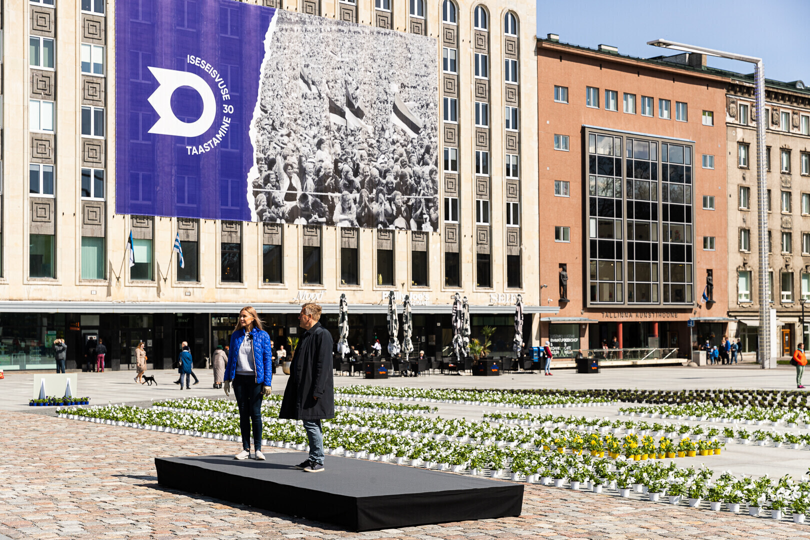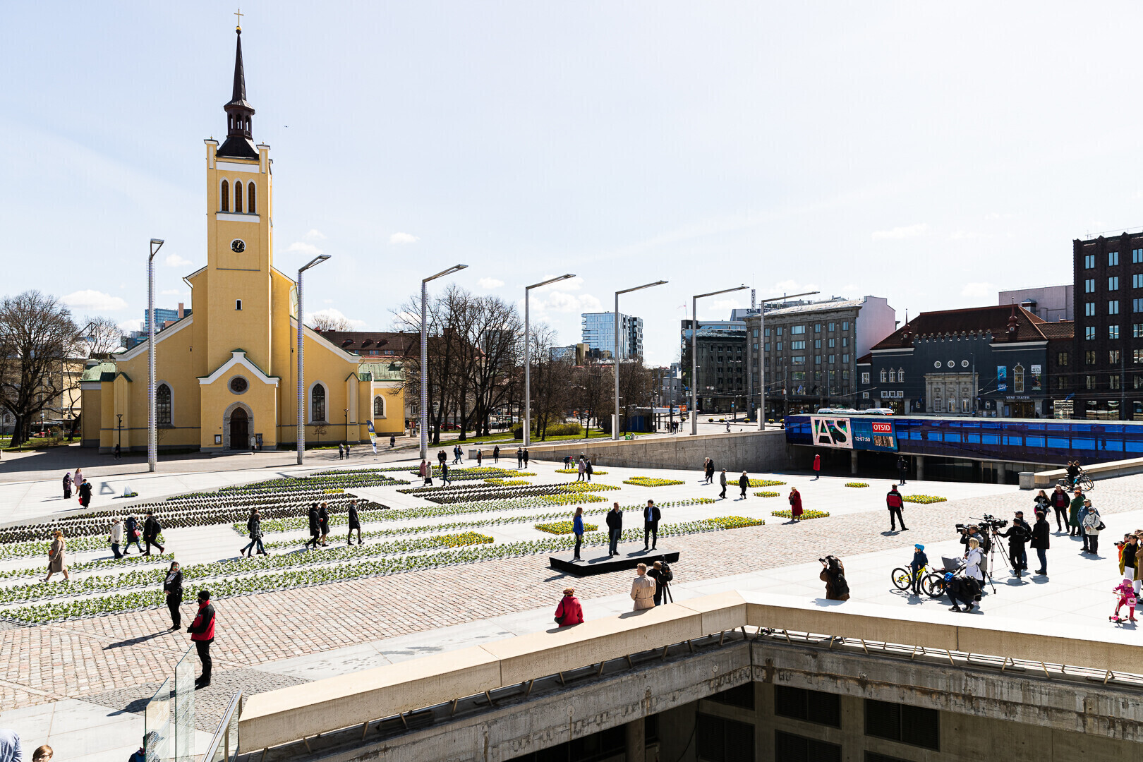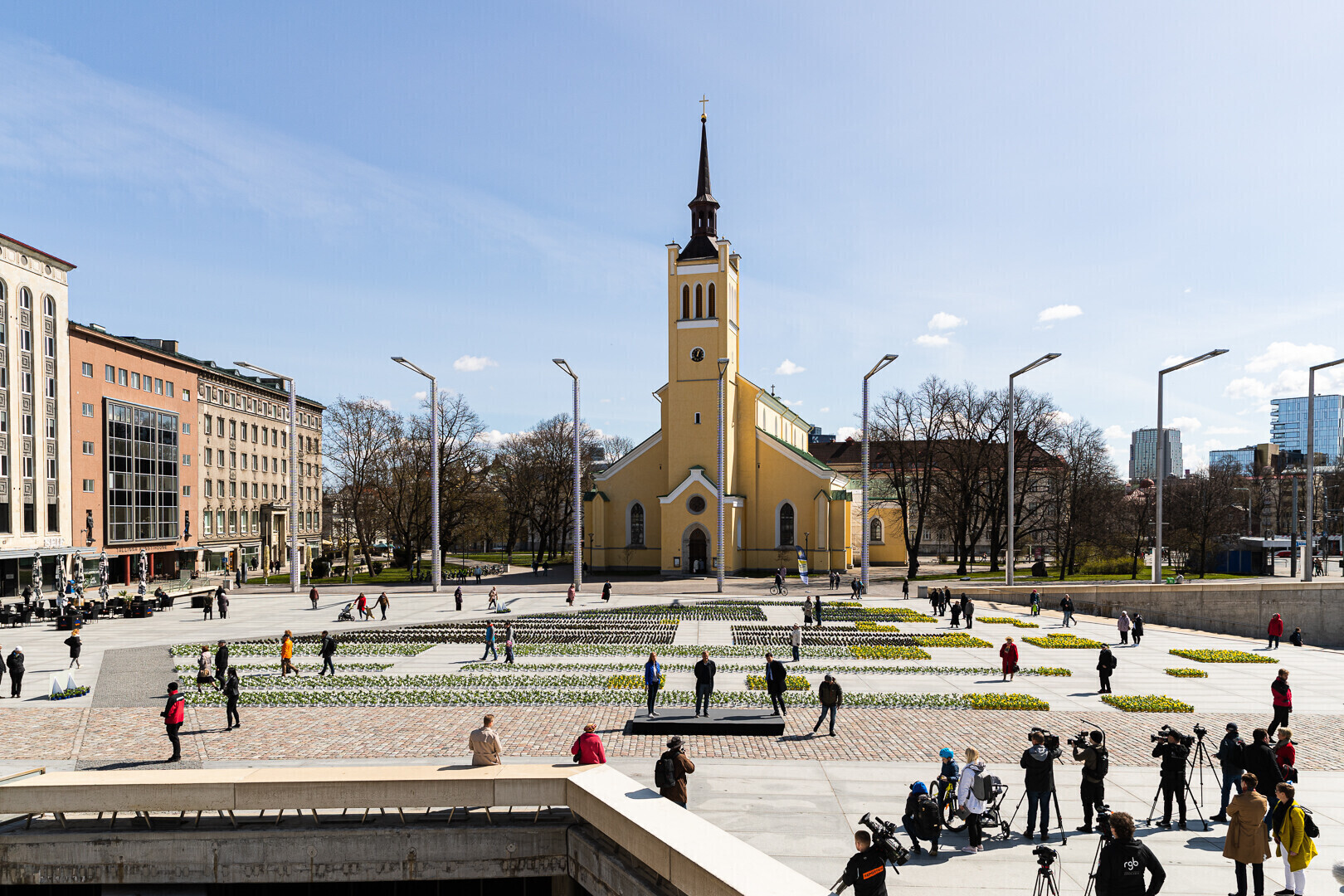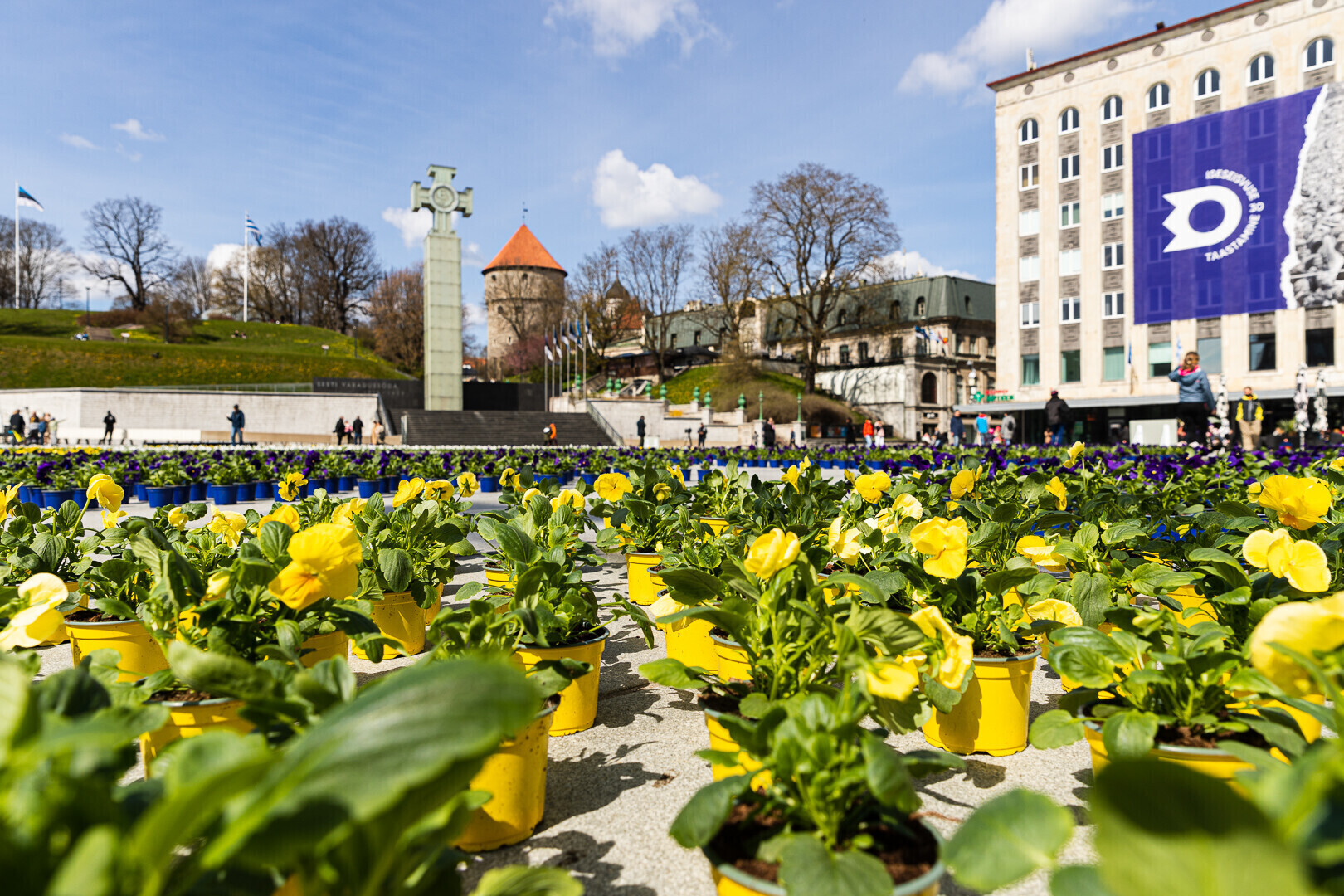 The flower arrangement, in the colors both of the EU and Estonia's flags, was unveiled by Tallinn mayor Mihhail Kõlvart at noon Saturday, to the accompaniment of the EU anthem, tolled by the adjacent Jaani Kirik's (St. John's Church) bellringers, Tallinn City Government announced via a press release.