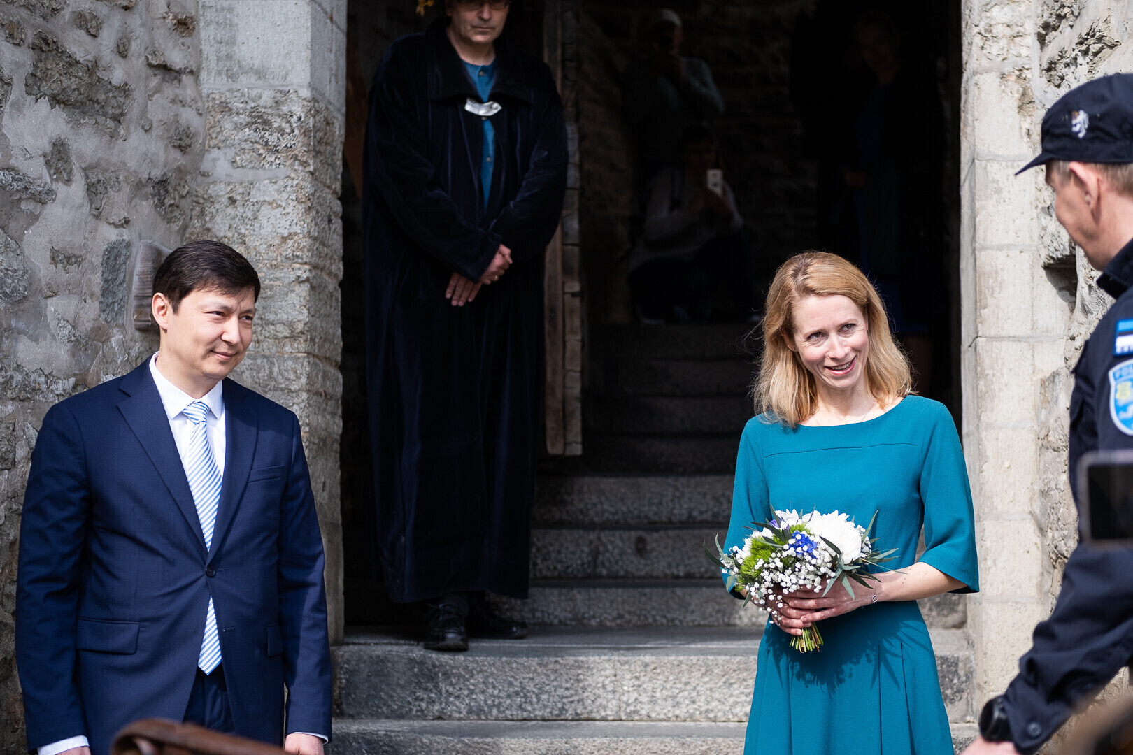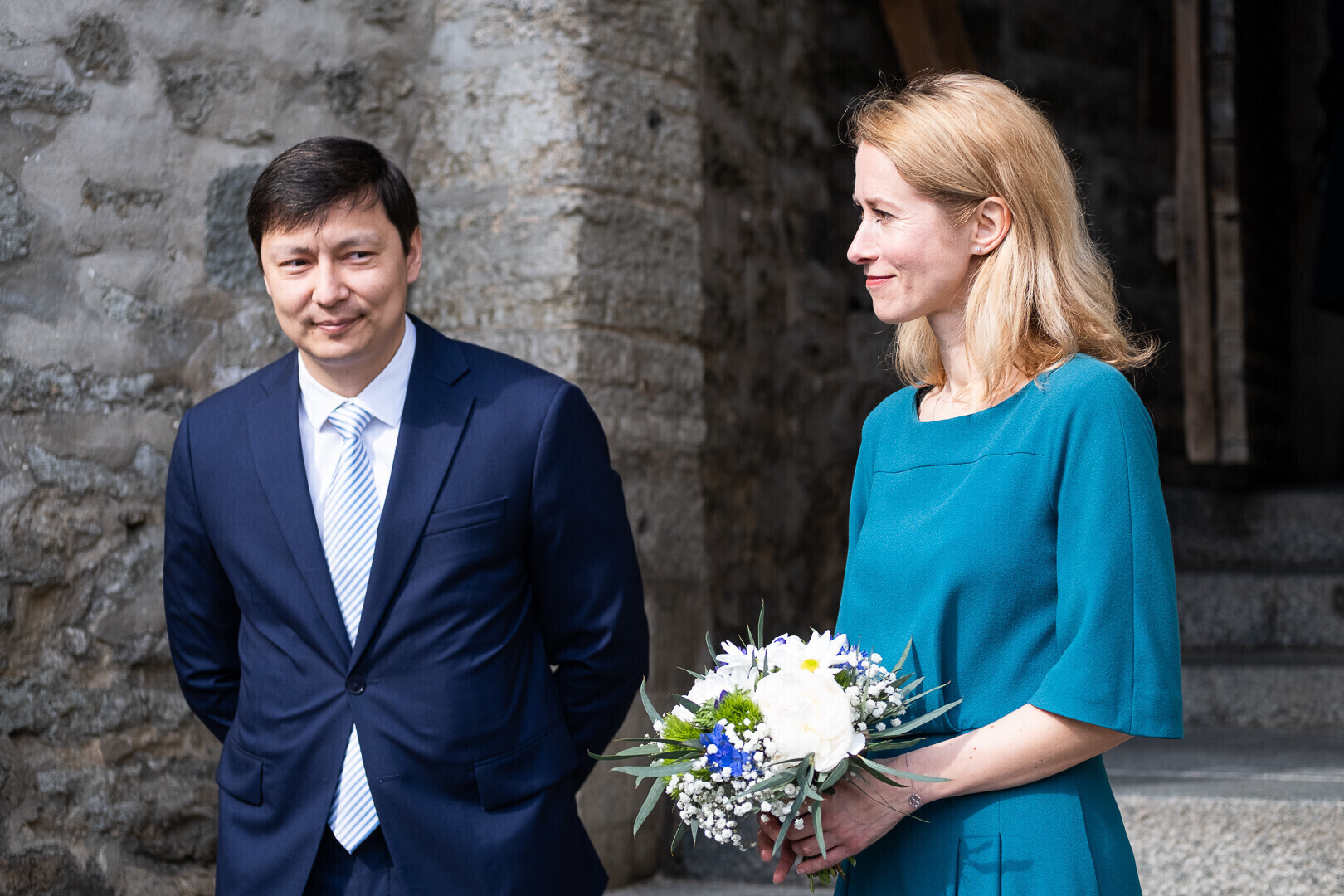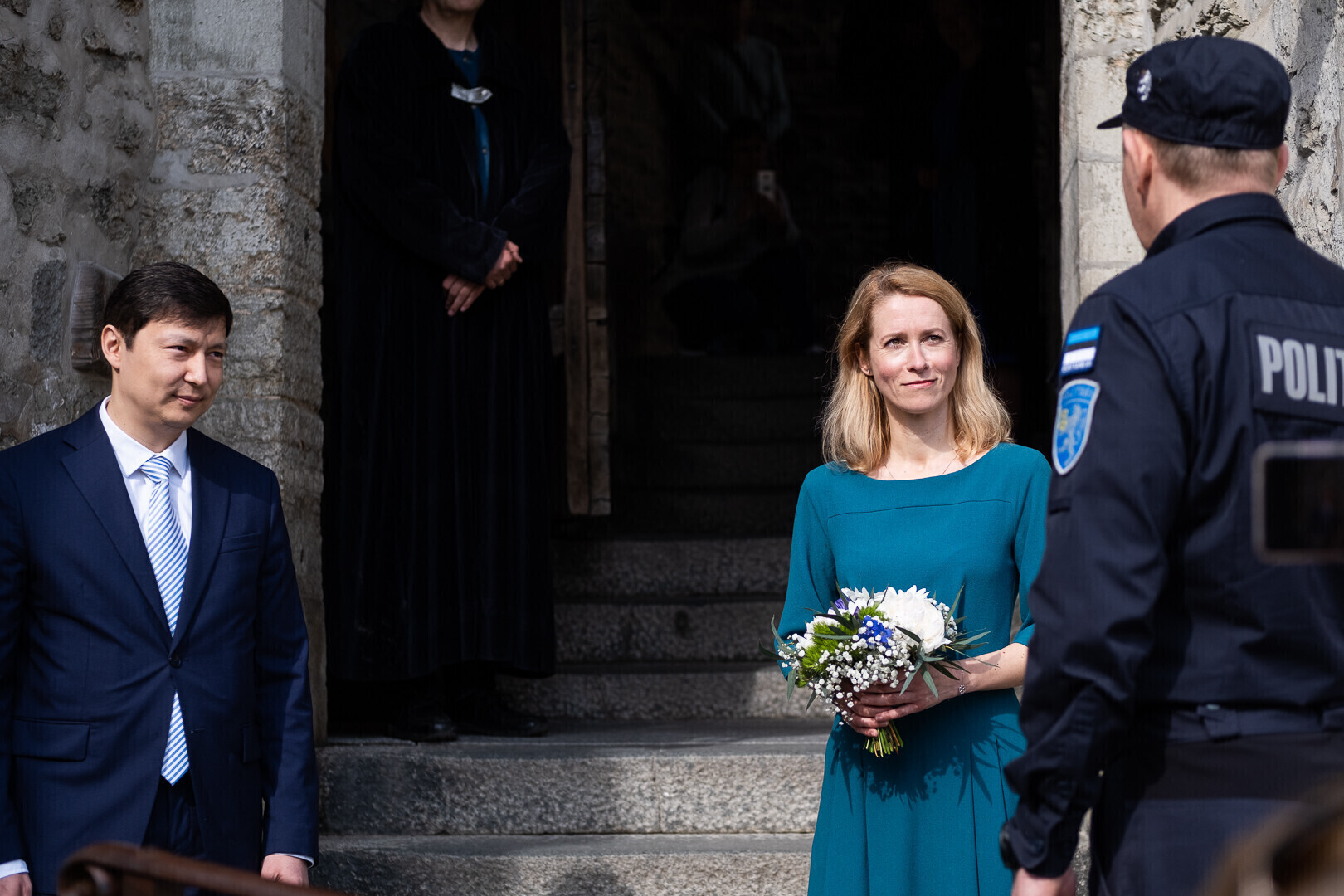 As per tradition, Prime Minister Kaja Kallas (Reform) arrived at the gate, which once demarcated the lower town and the upper town, knocking on its wooden door, to be answered by Mayor Mihhail Kõlvart (Center).