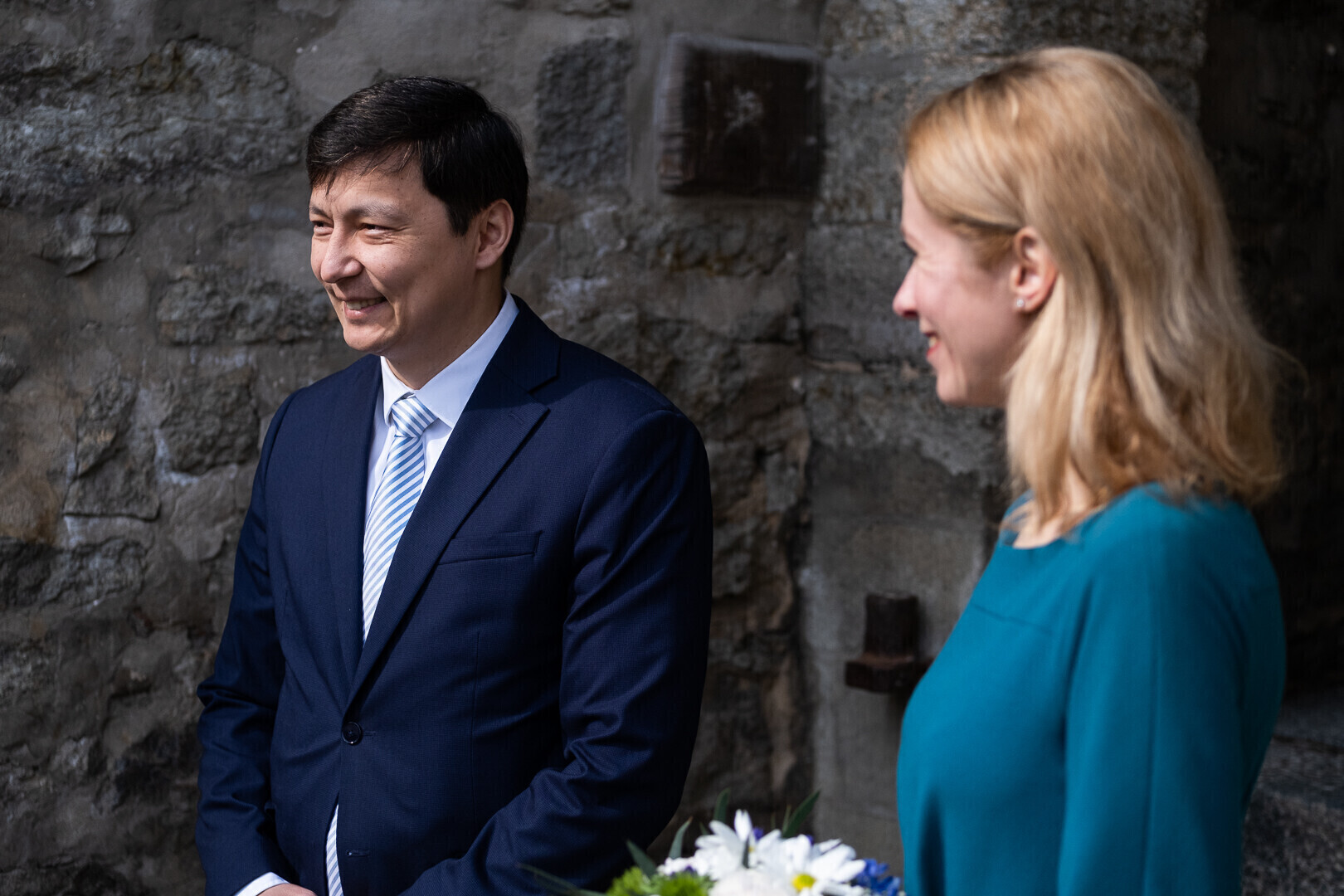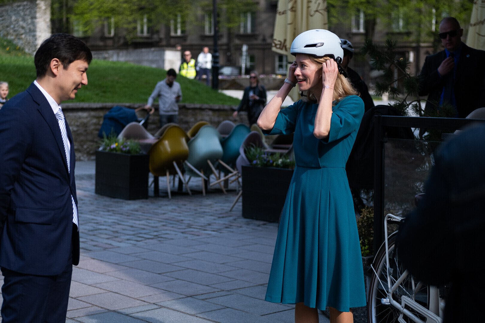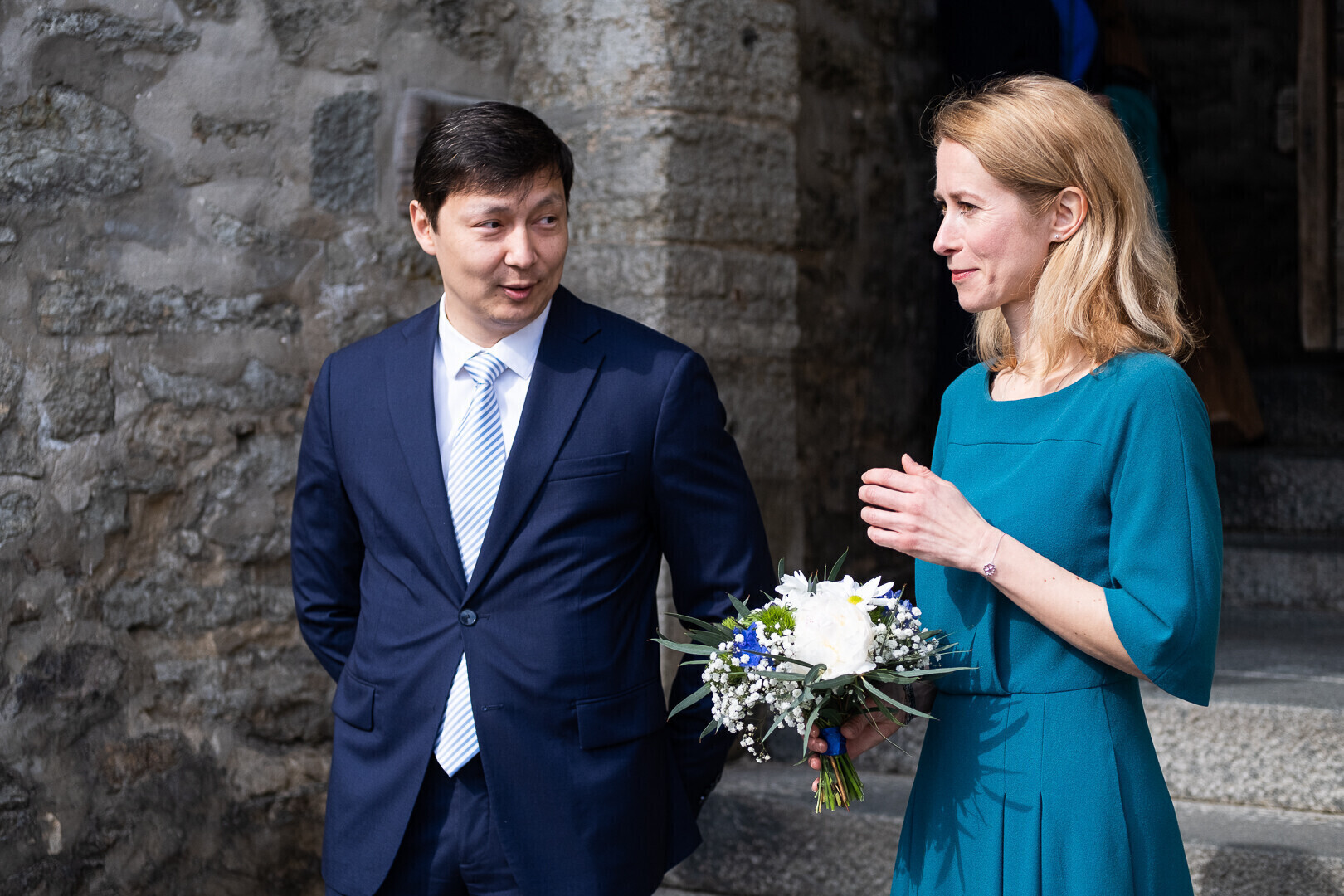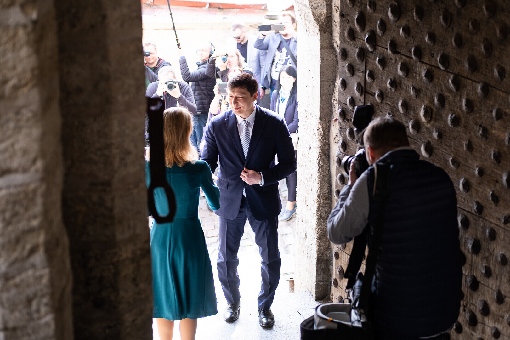 As per tradition, Prime Minister Kaja Kallas (Reform) arrived at the gate, which once demarcated the lower town and the upper town, knocking on its wooden door, to be answered by Mayor Mihhail Kõlvart (Center).