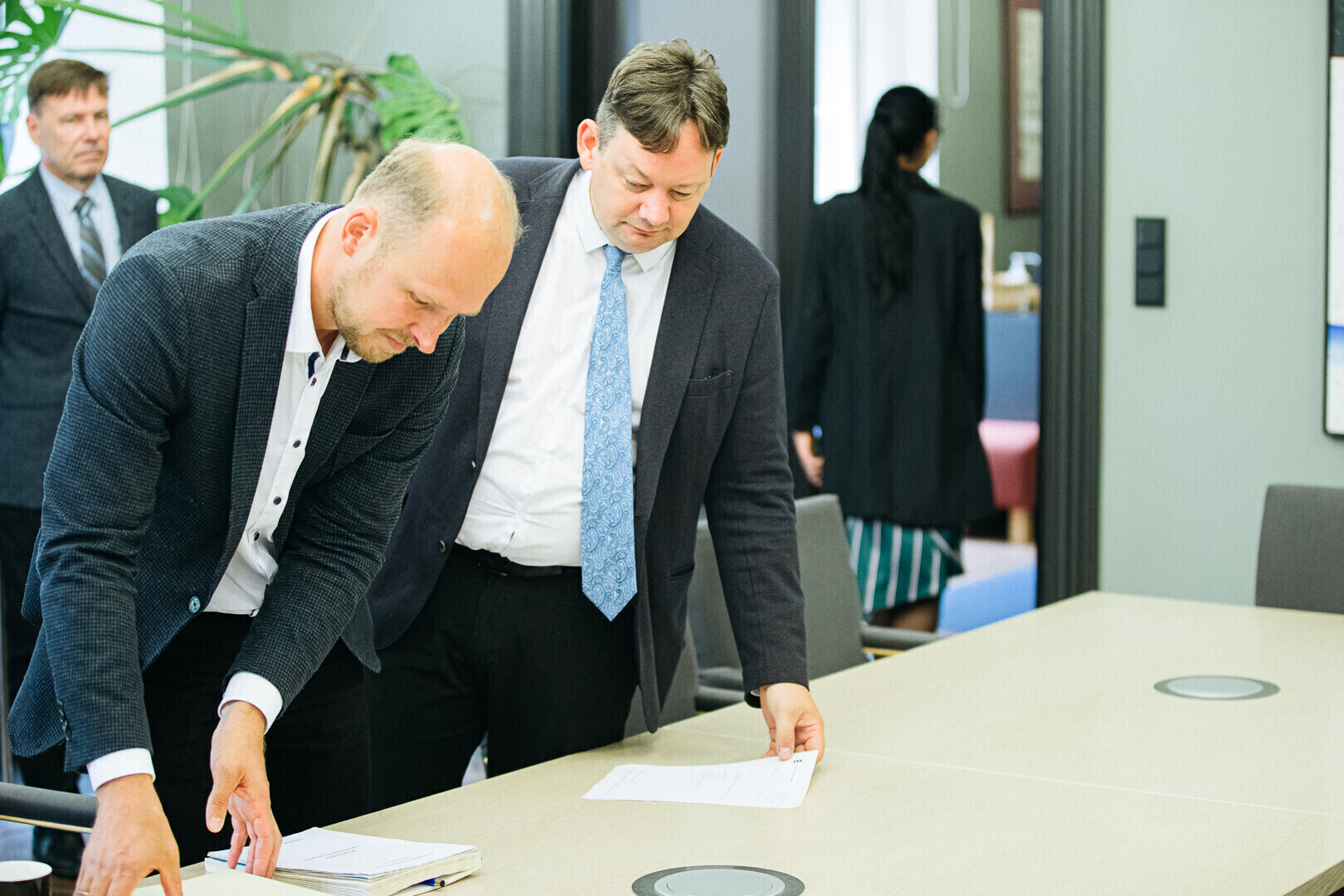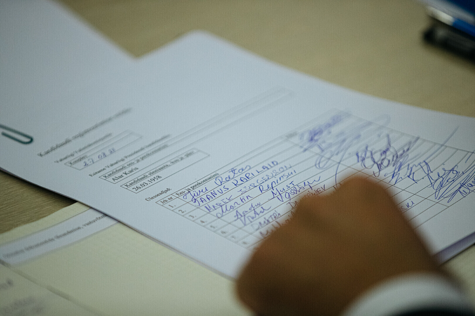 The signatures were handed over by Mart Võrklaev, leader of the Riigikogu faction of the Reform Party, and Jaanus Karilaid, leader of the Center Party faction at 10 a.m. in front of the media.