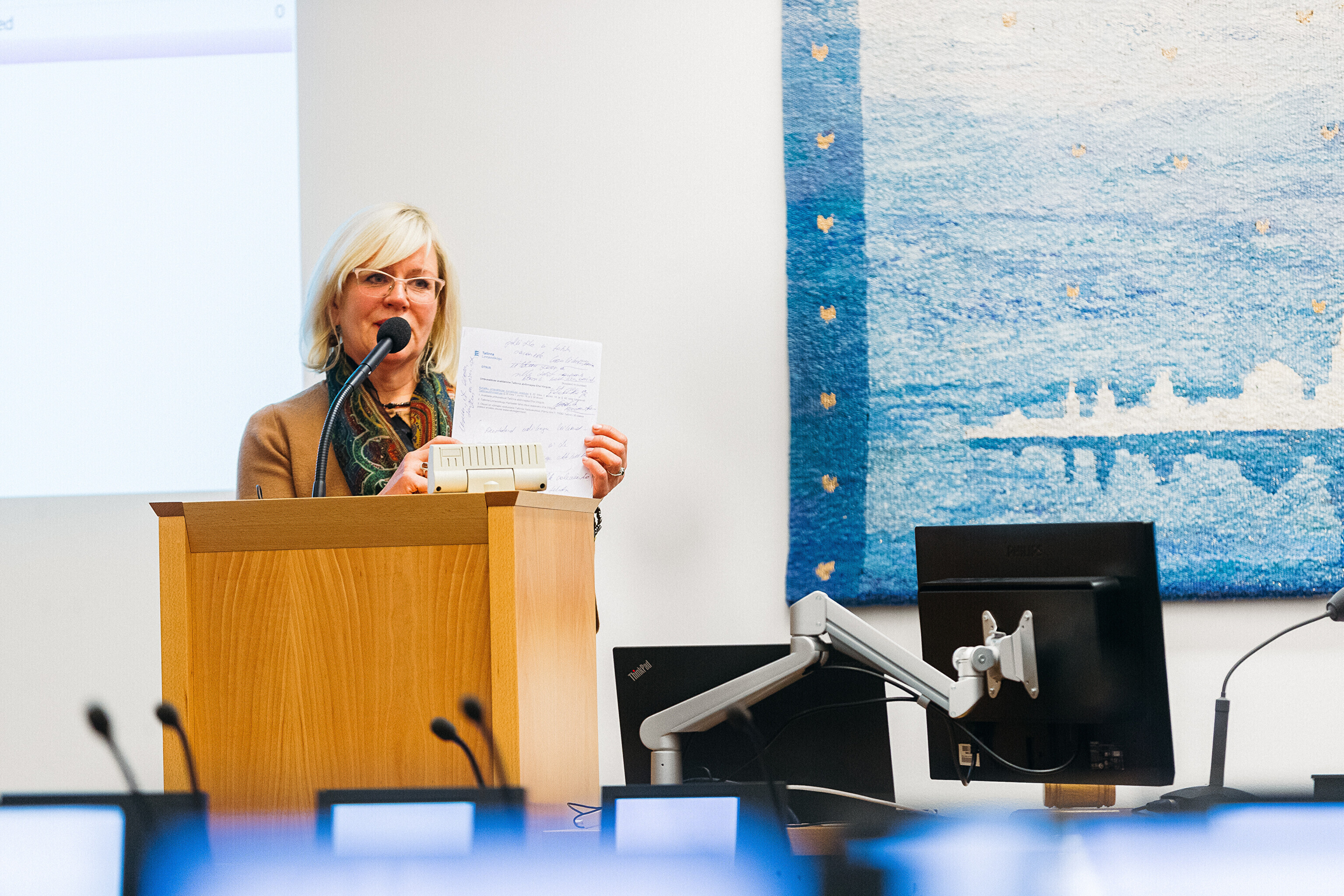 The motion stated that: "We find that until more precise circumstances become clear, Eha Võrk's activities as a member of the Tallinn City Government should be suspended."