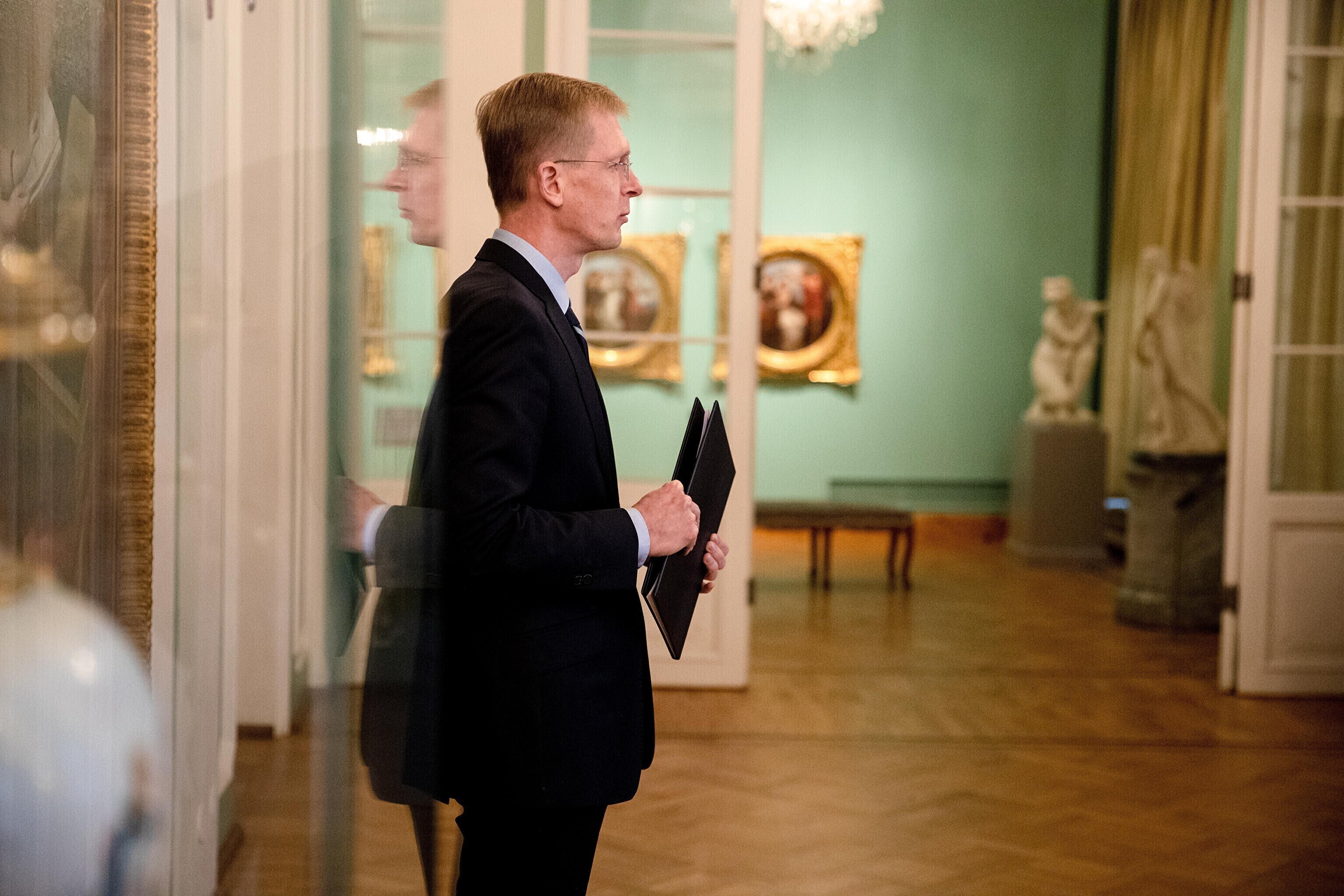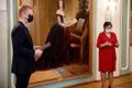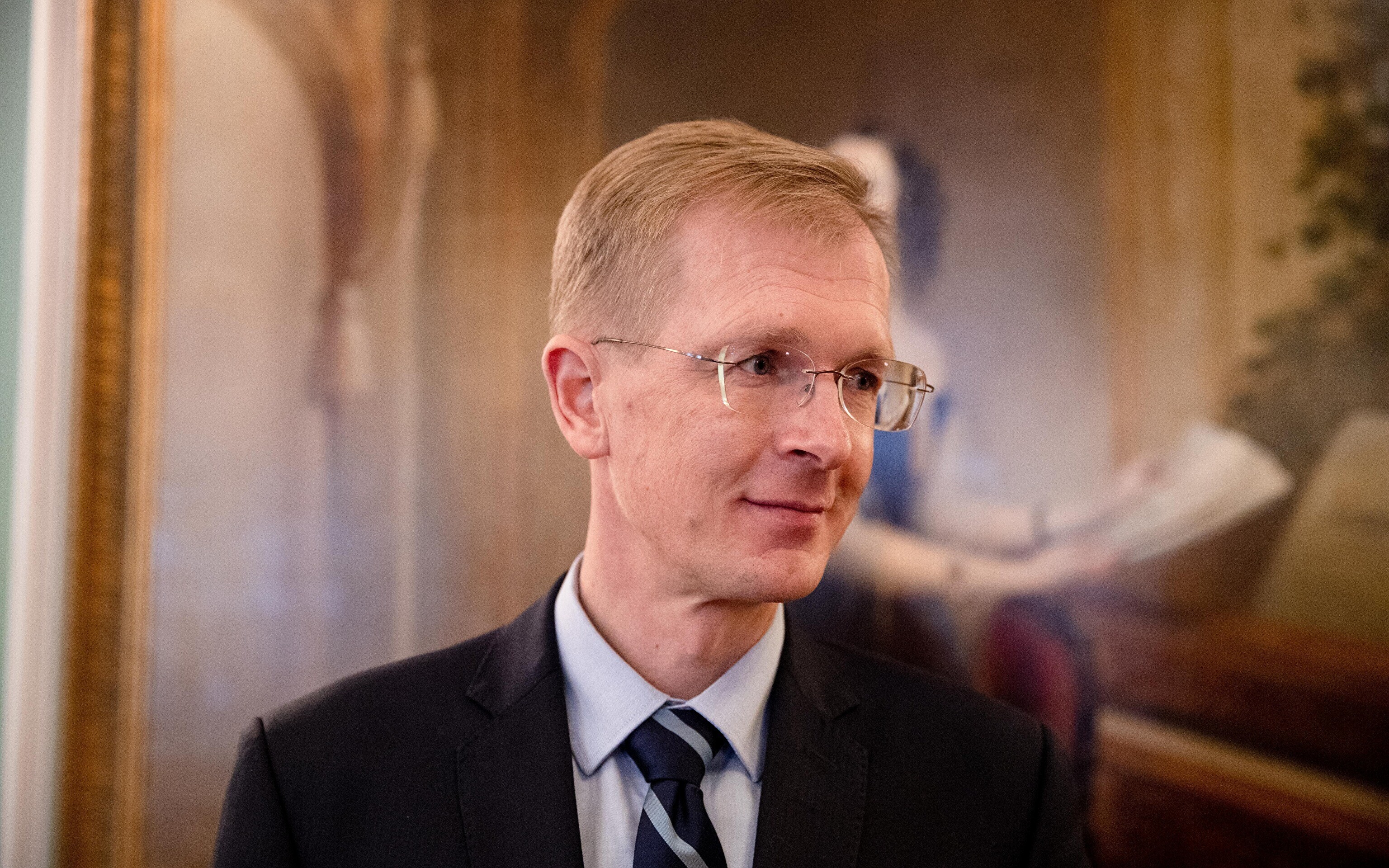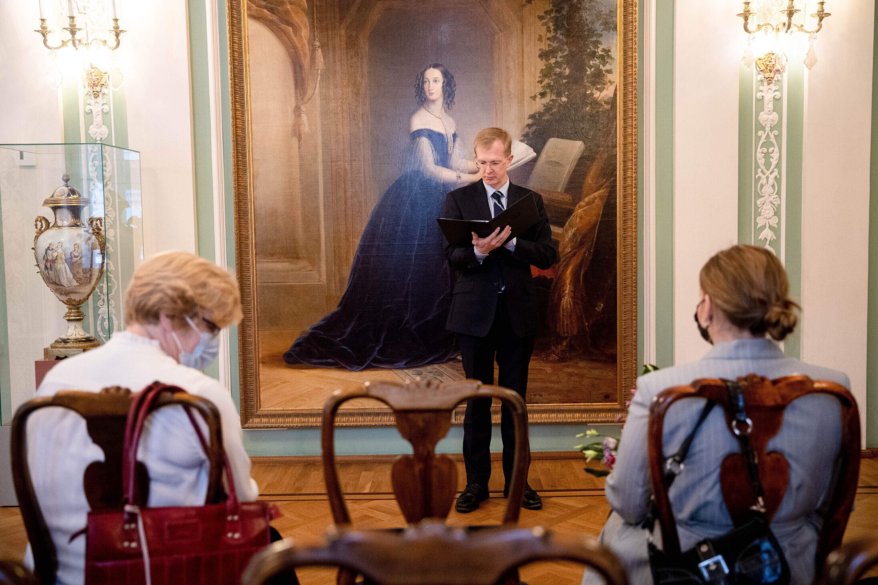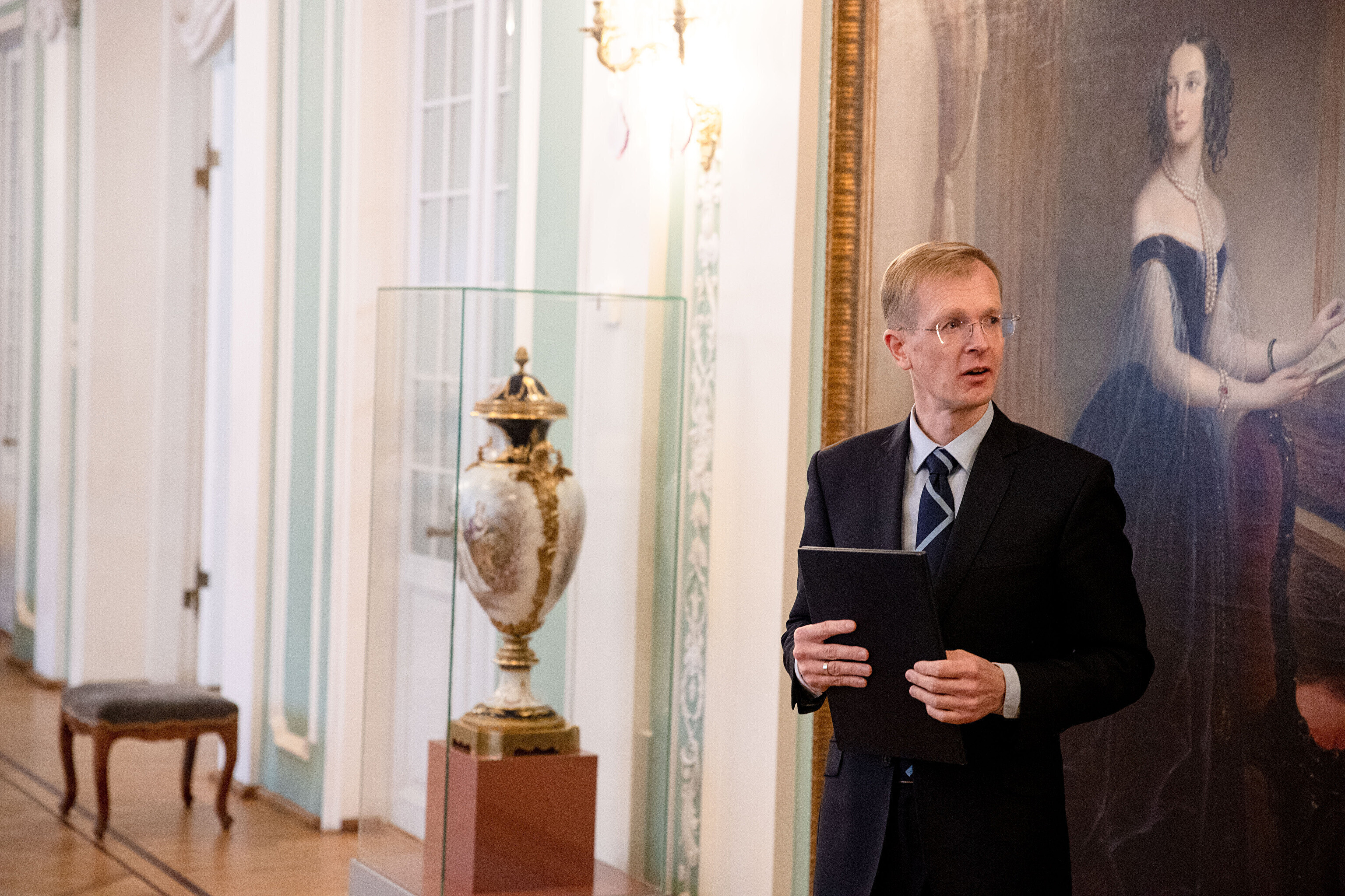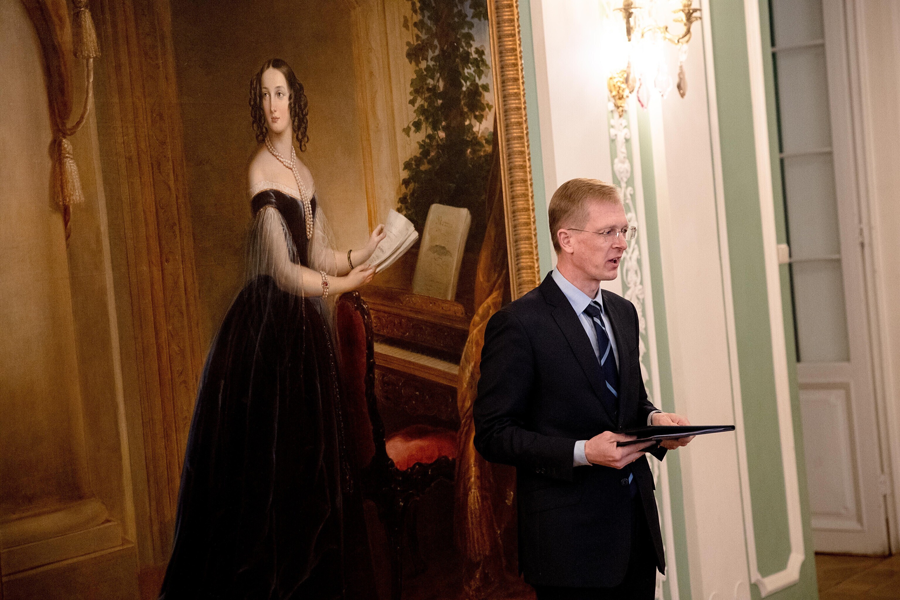 Minister of Culture Tiit Terik (Center) handed out the Eduard Wiiralt scholarship to four art students in the Kadriorg Art Museum on Wednesday.
