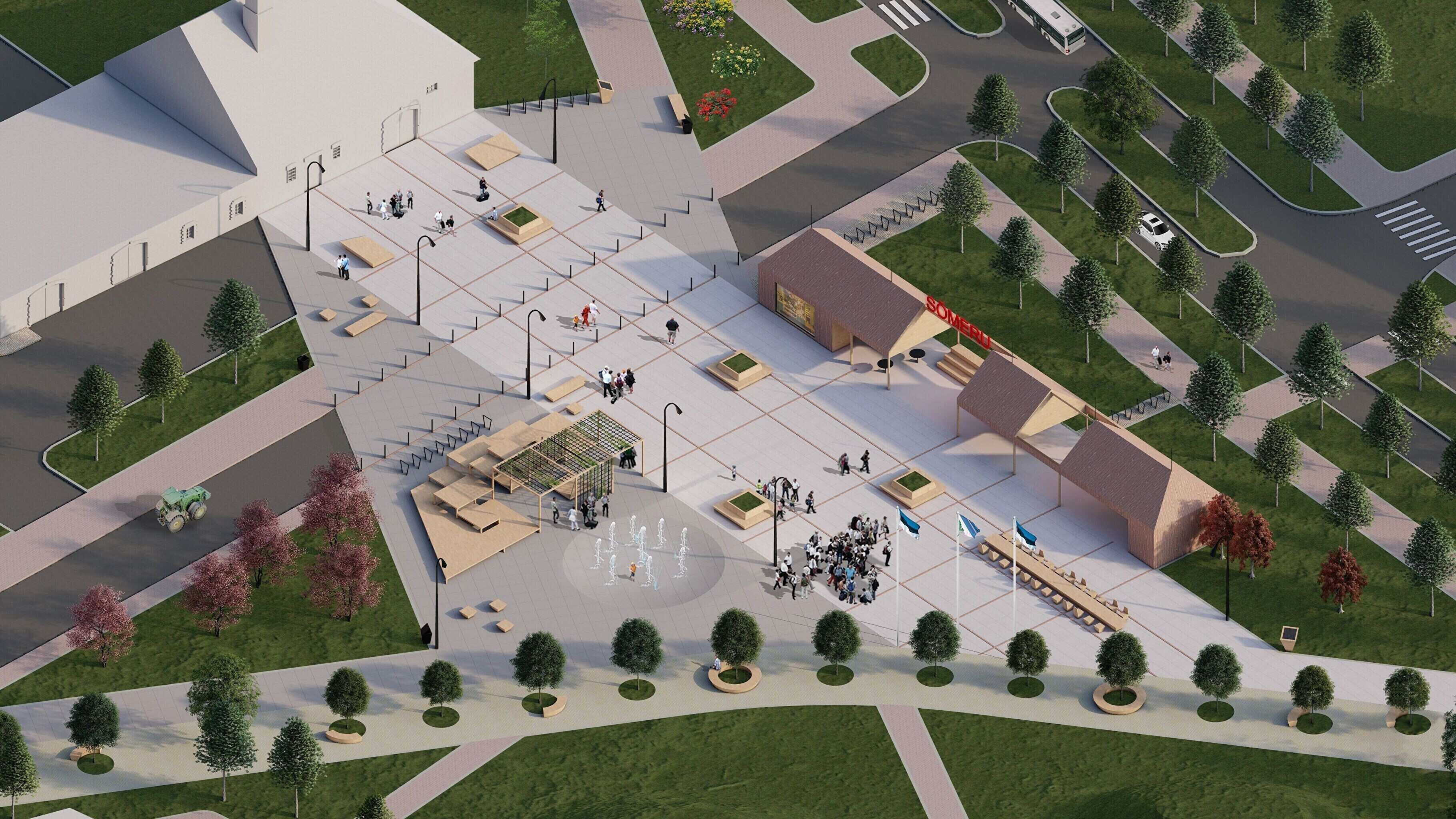 The competition's brief had been to find a representative and modern architectural solution for Sõmeru's new, central square, and to integrate it with the existing main street, into an attractive public space to be used all year round.