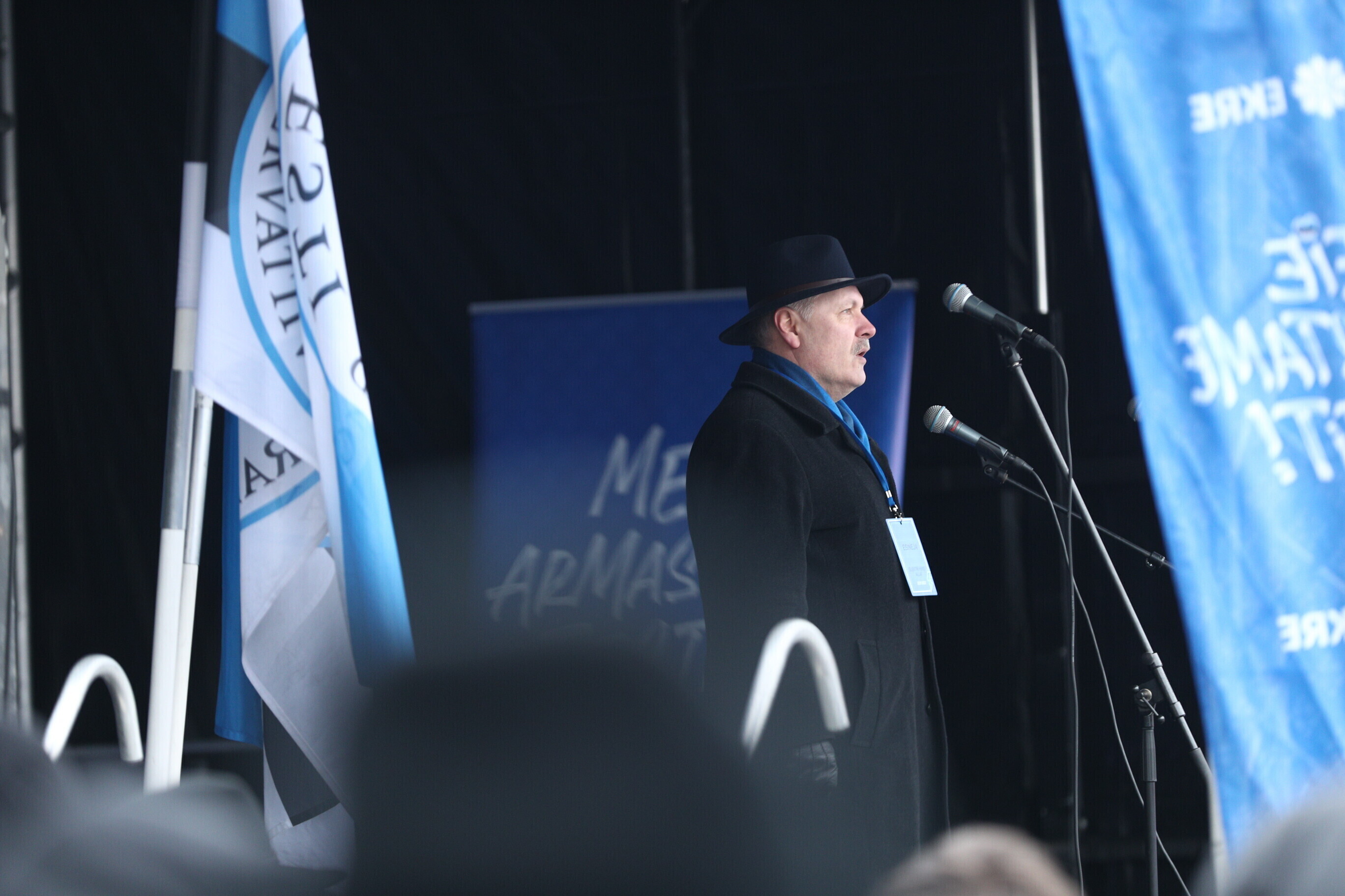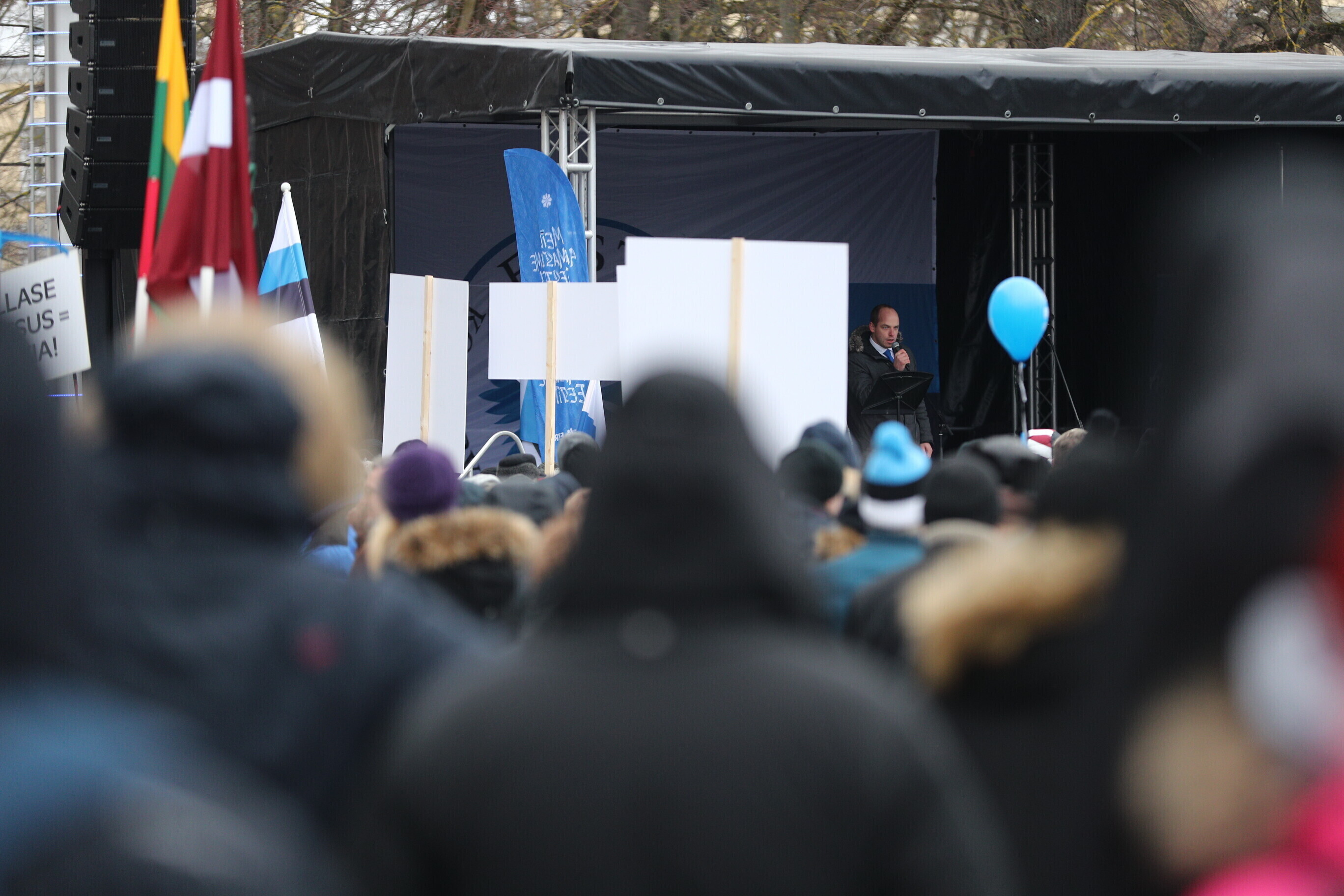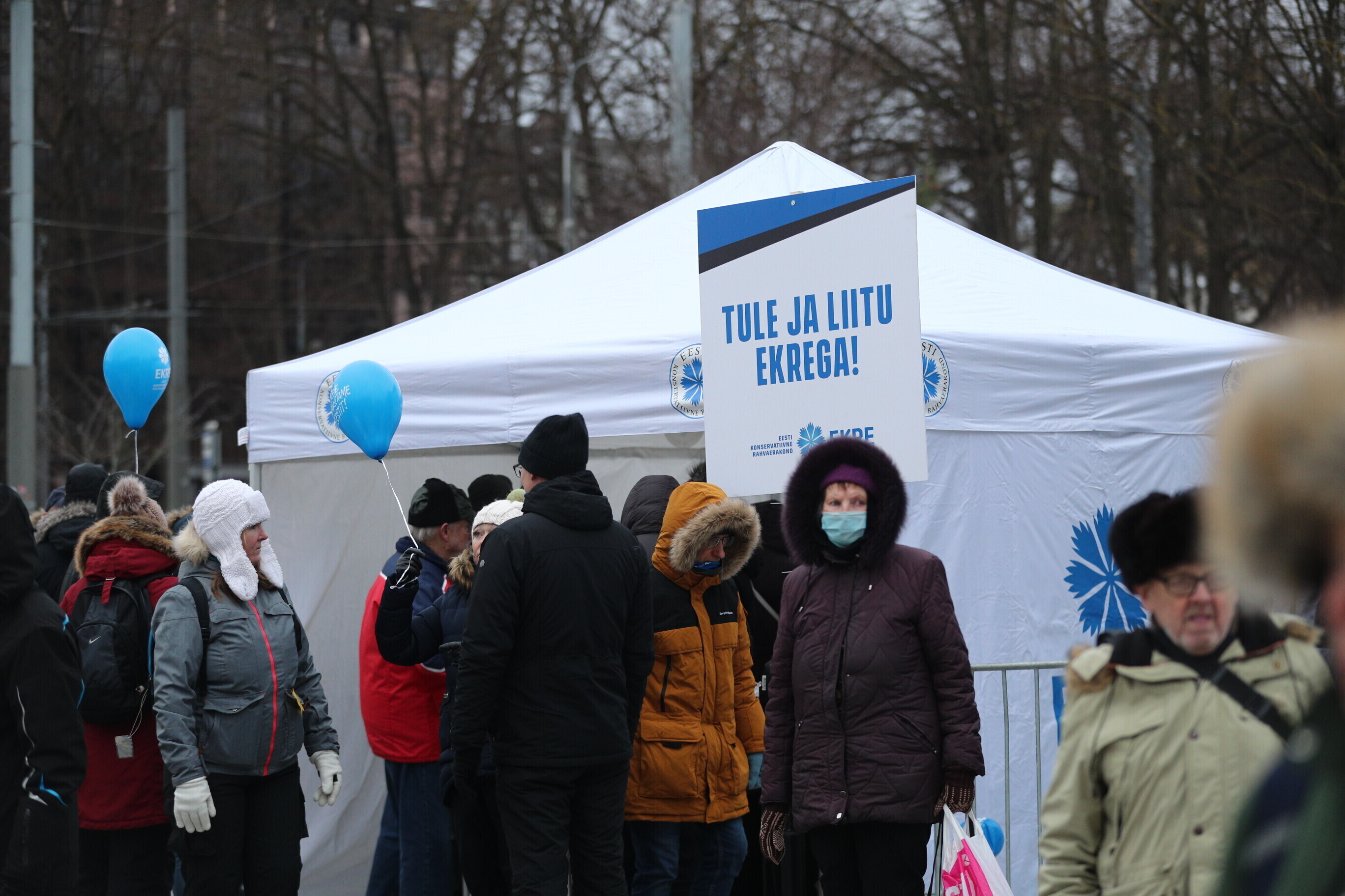 The EKRE leadership, including Mart and Martin Helme, MEP Jaak Madison and MP Siim Pohlak attended the rally, in Tallinn's Vabaduse väljak.