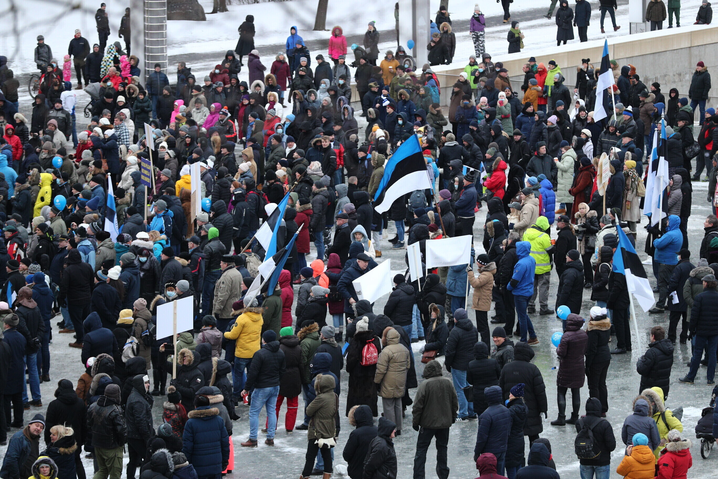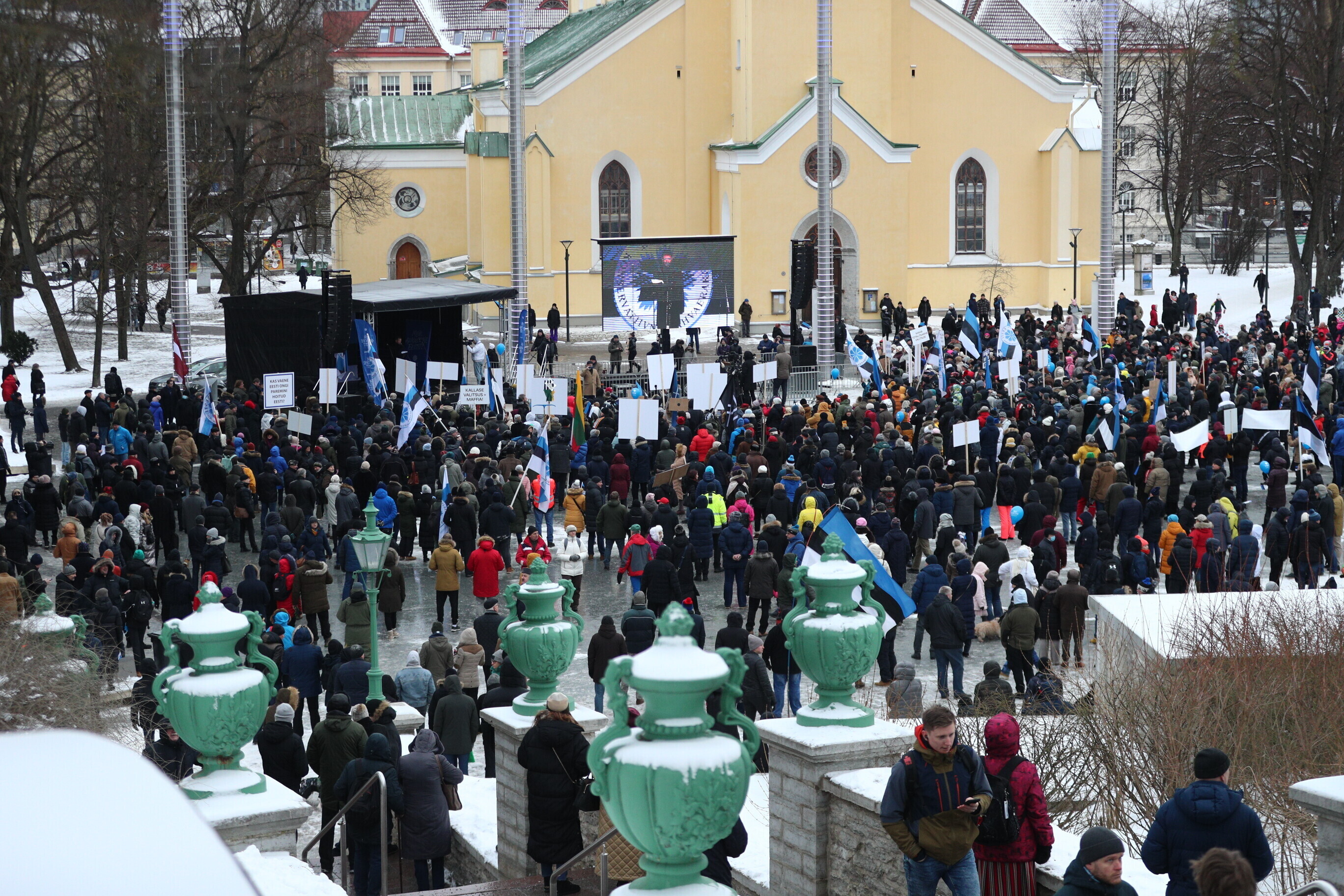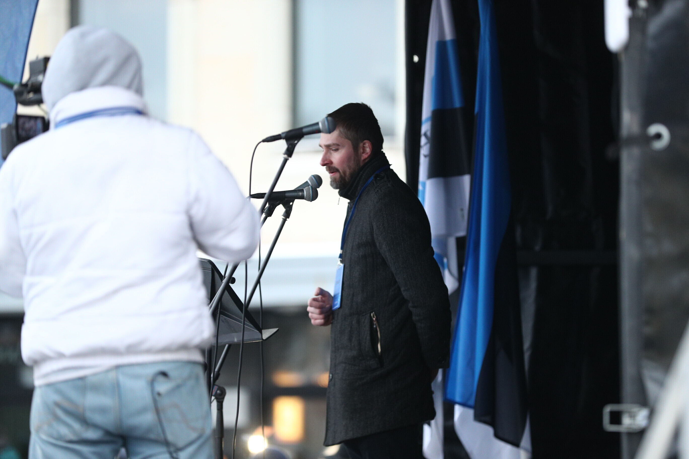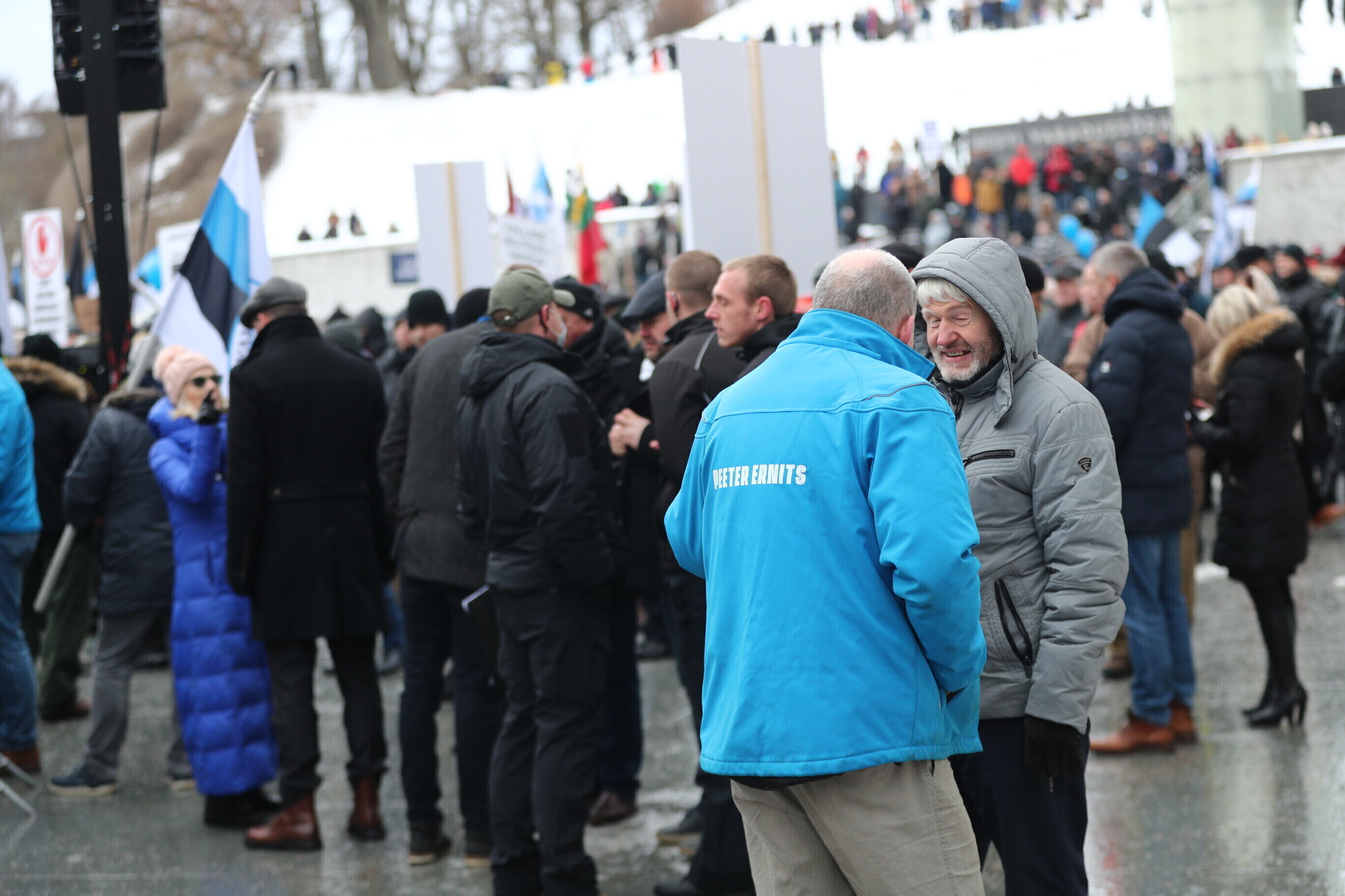 The EKRE leadership, including Mart and Martin Helme, MEP Jaak Madison and MP Siim Pohlak attended the rally, in Tallinn's Vabaduse väljak.