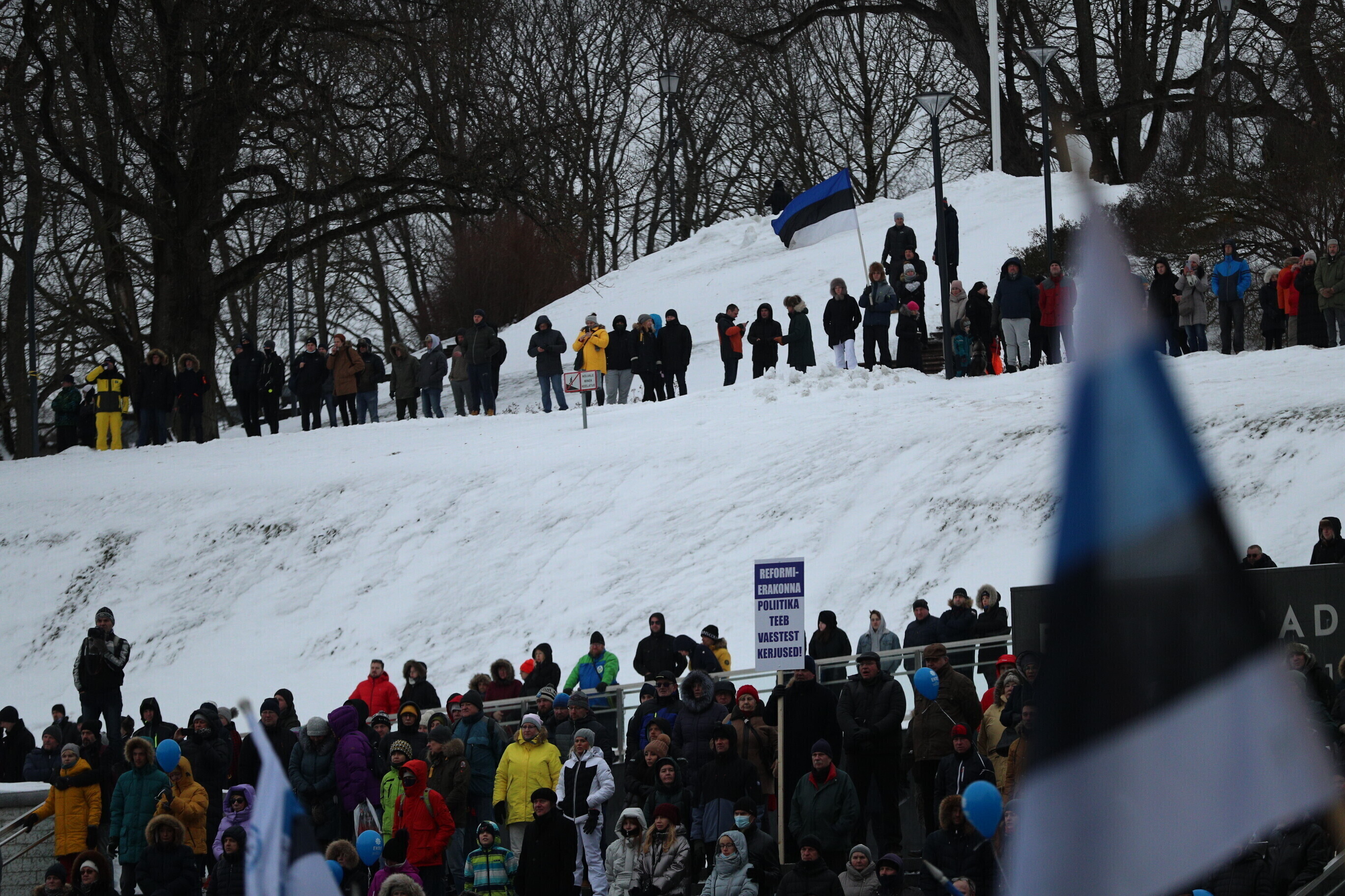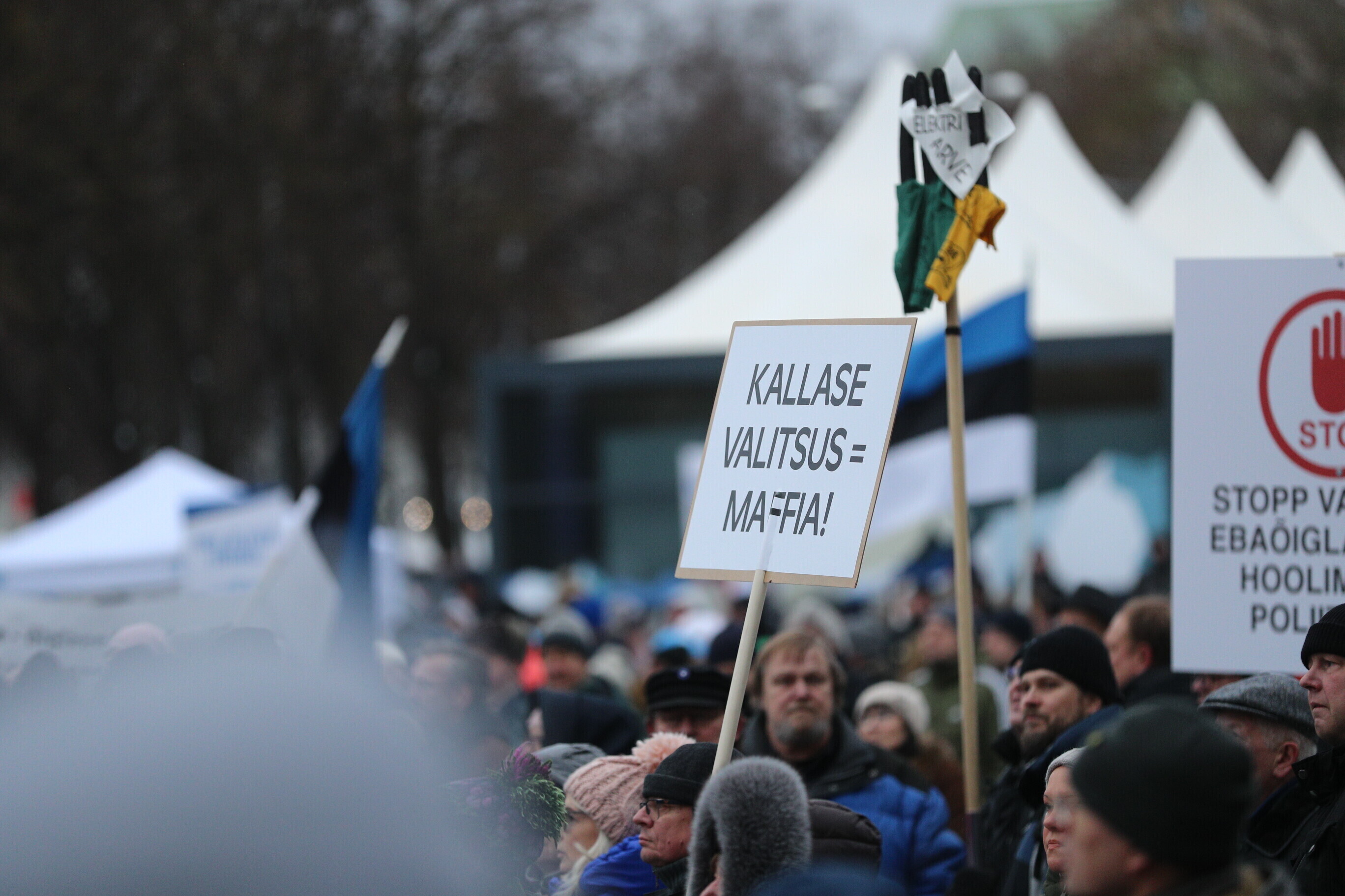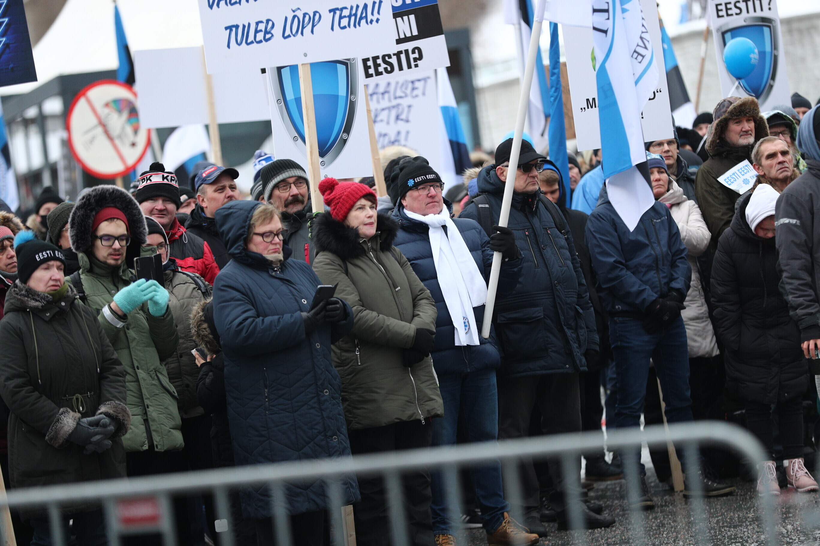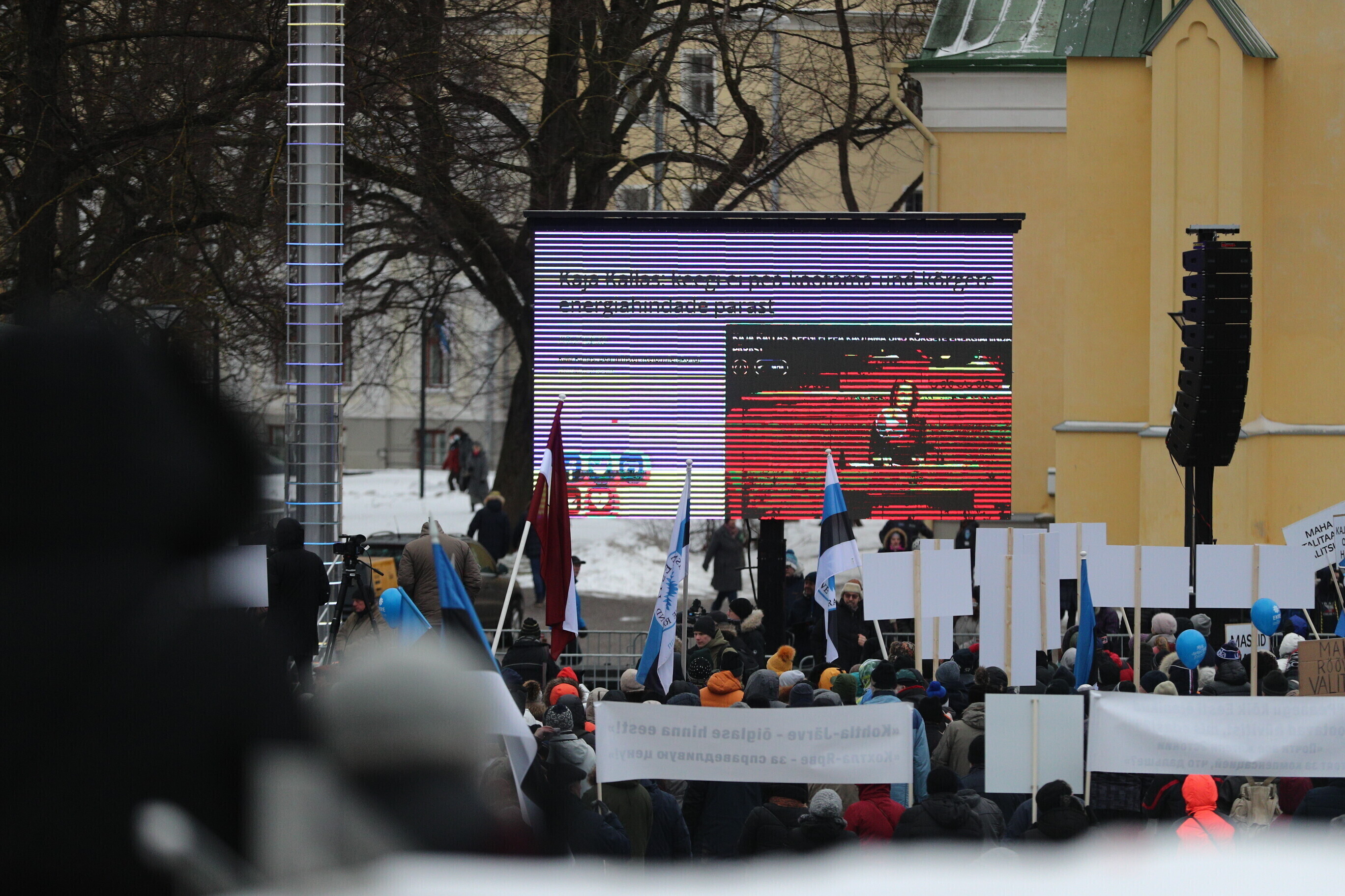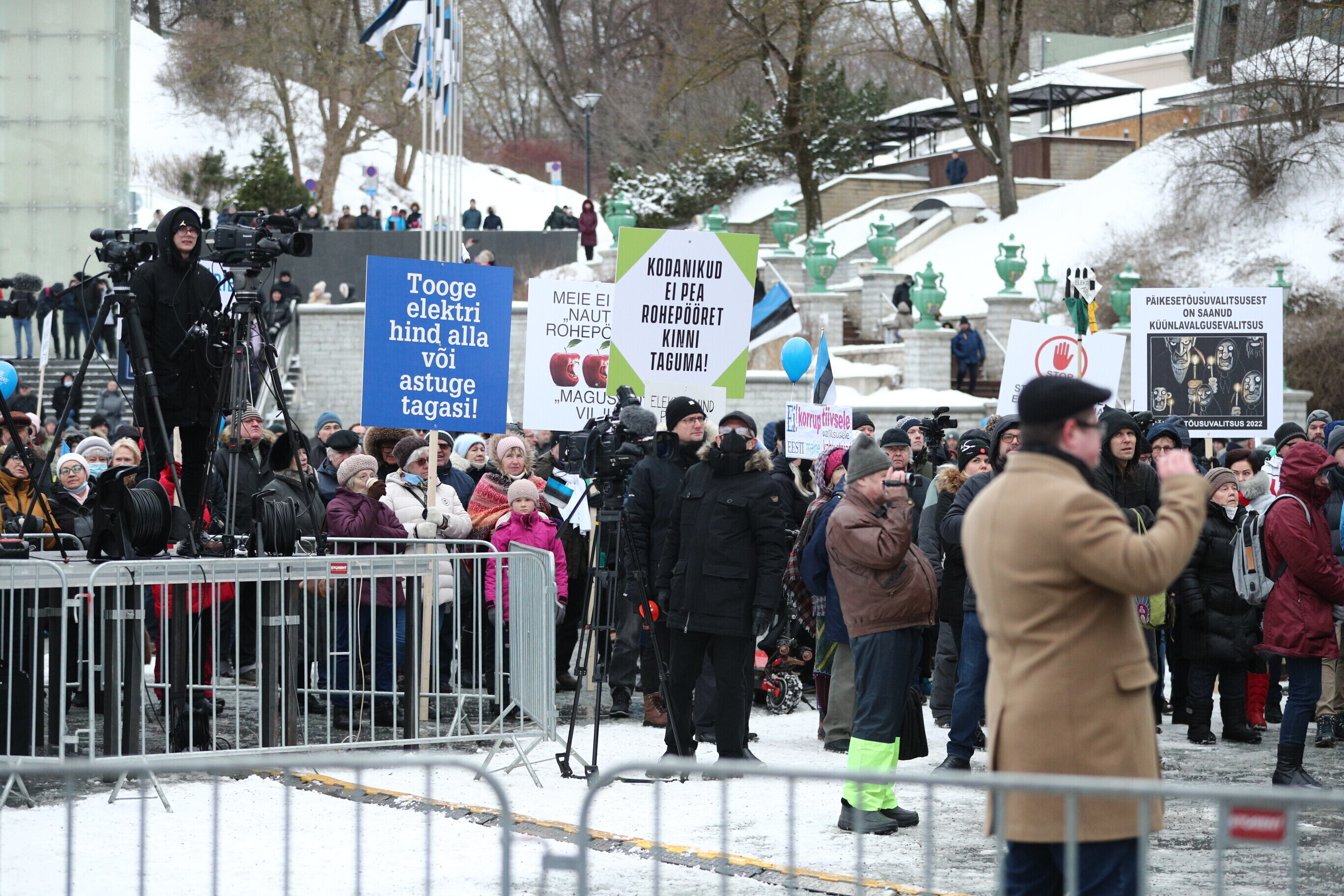 Supporters of the Conservative People's Party of Estonia (EKRE) took part in a demonstration in central Tallinn Saturday, in protest over continued high electricity prices and the government's attempts at mitigating that.