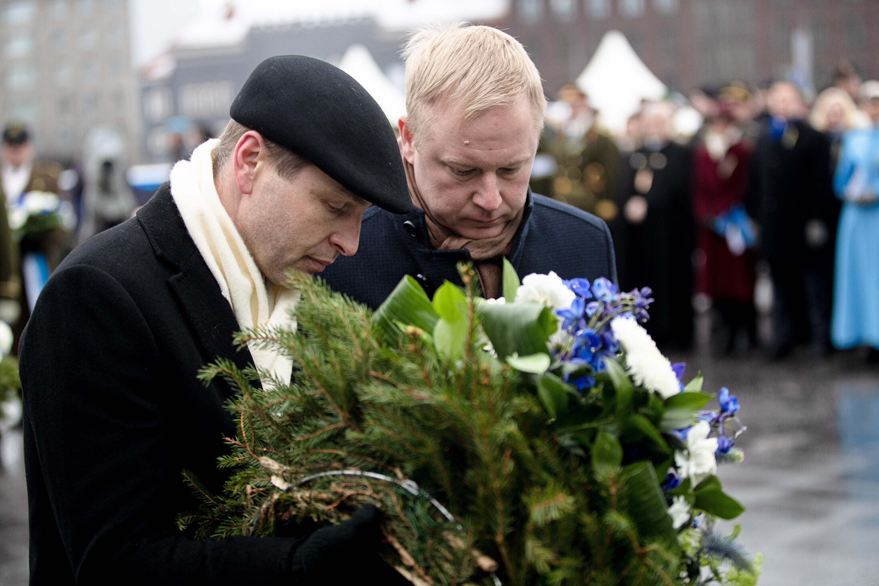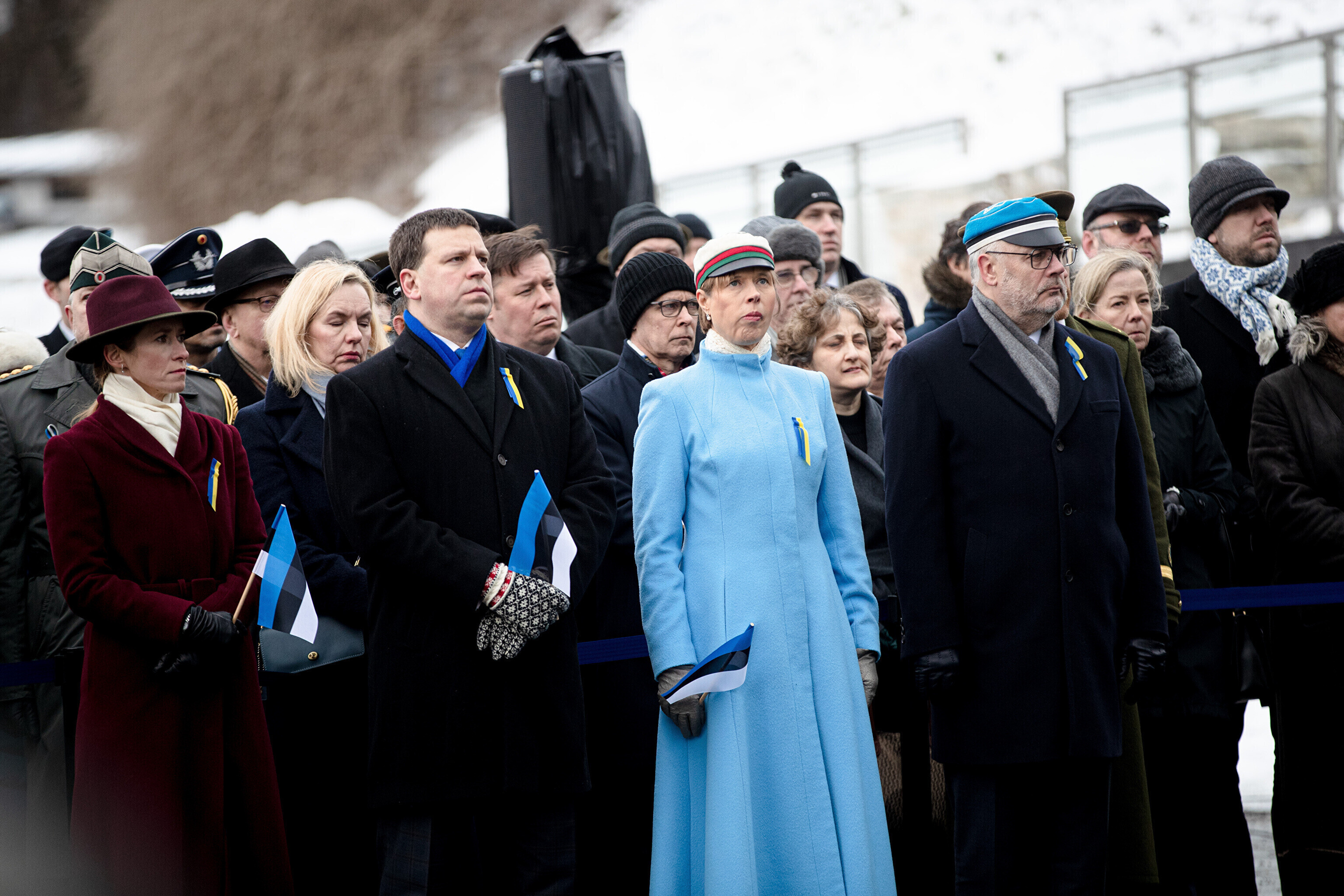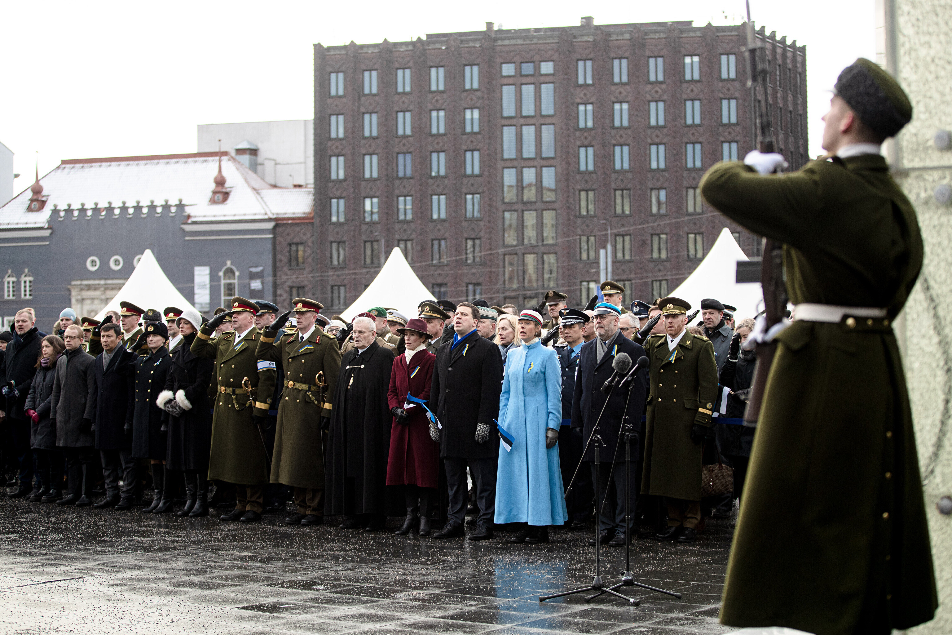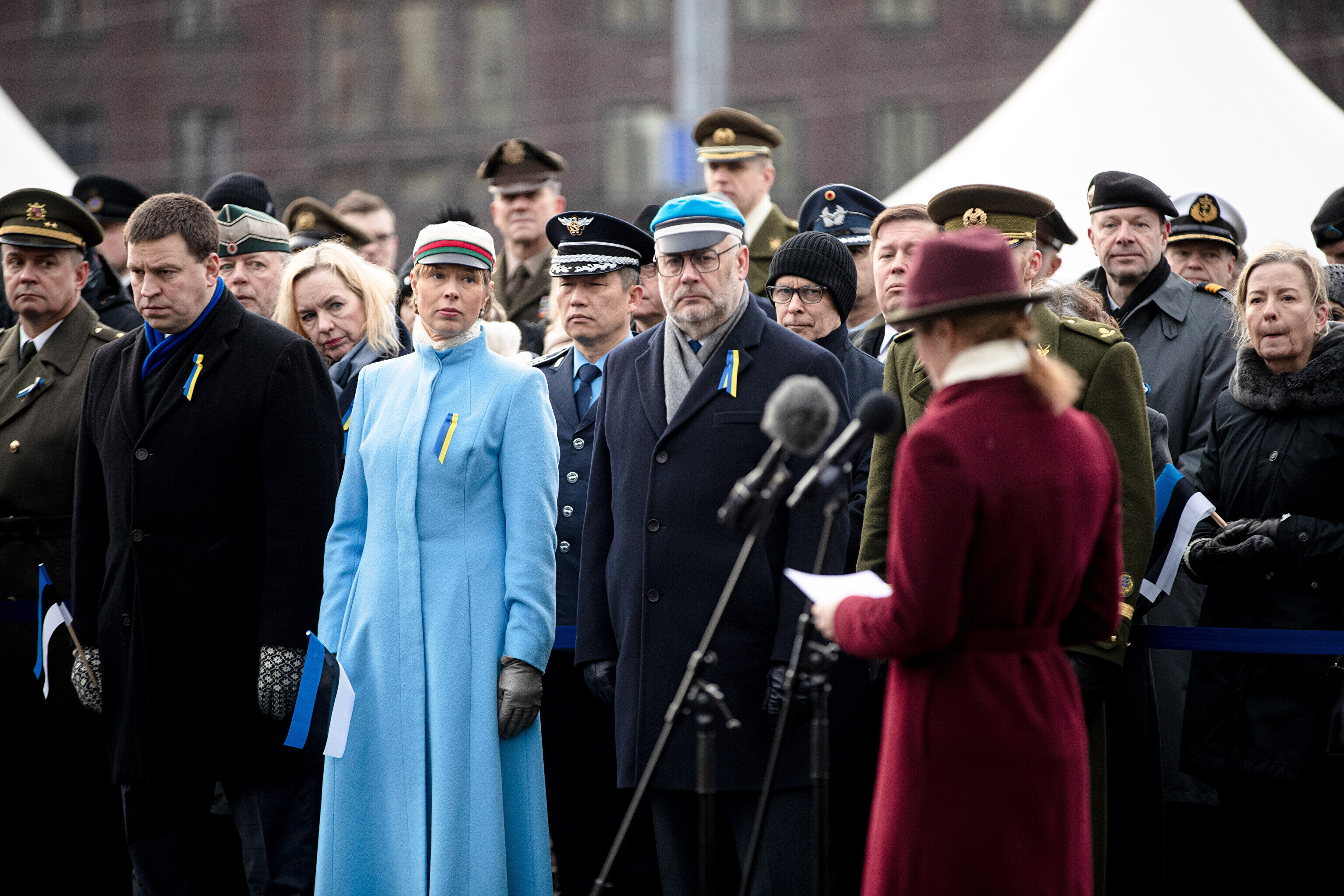 The Estonian president, prime minister and other officials laid wreaths at the War of Independence Victory Column on Freedom Square on Thursday, the 104th anniversary of Estonian independence.