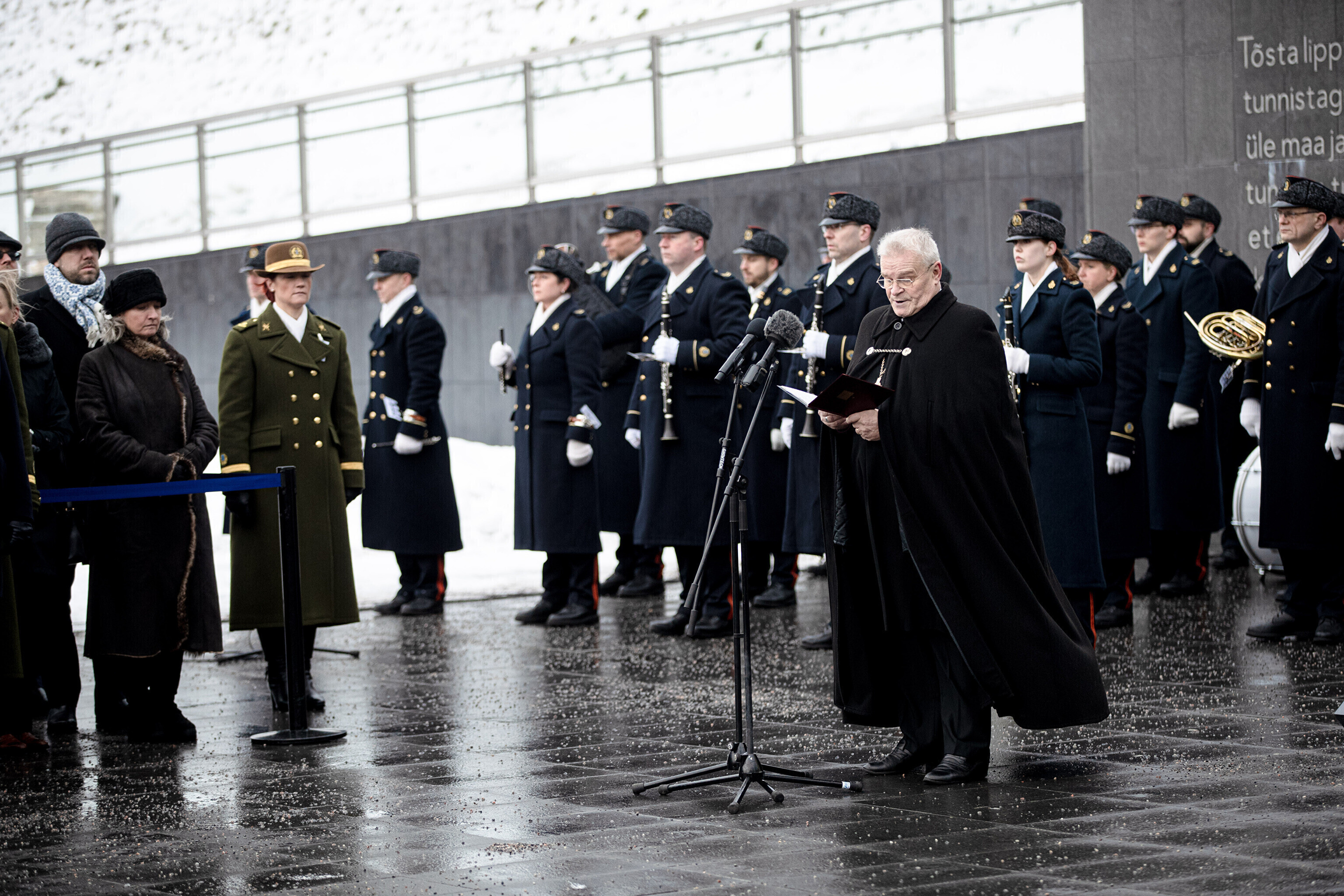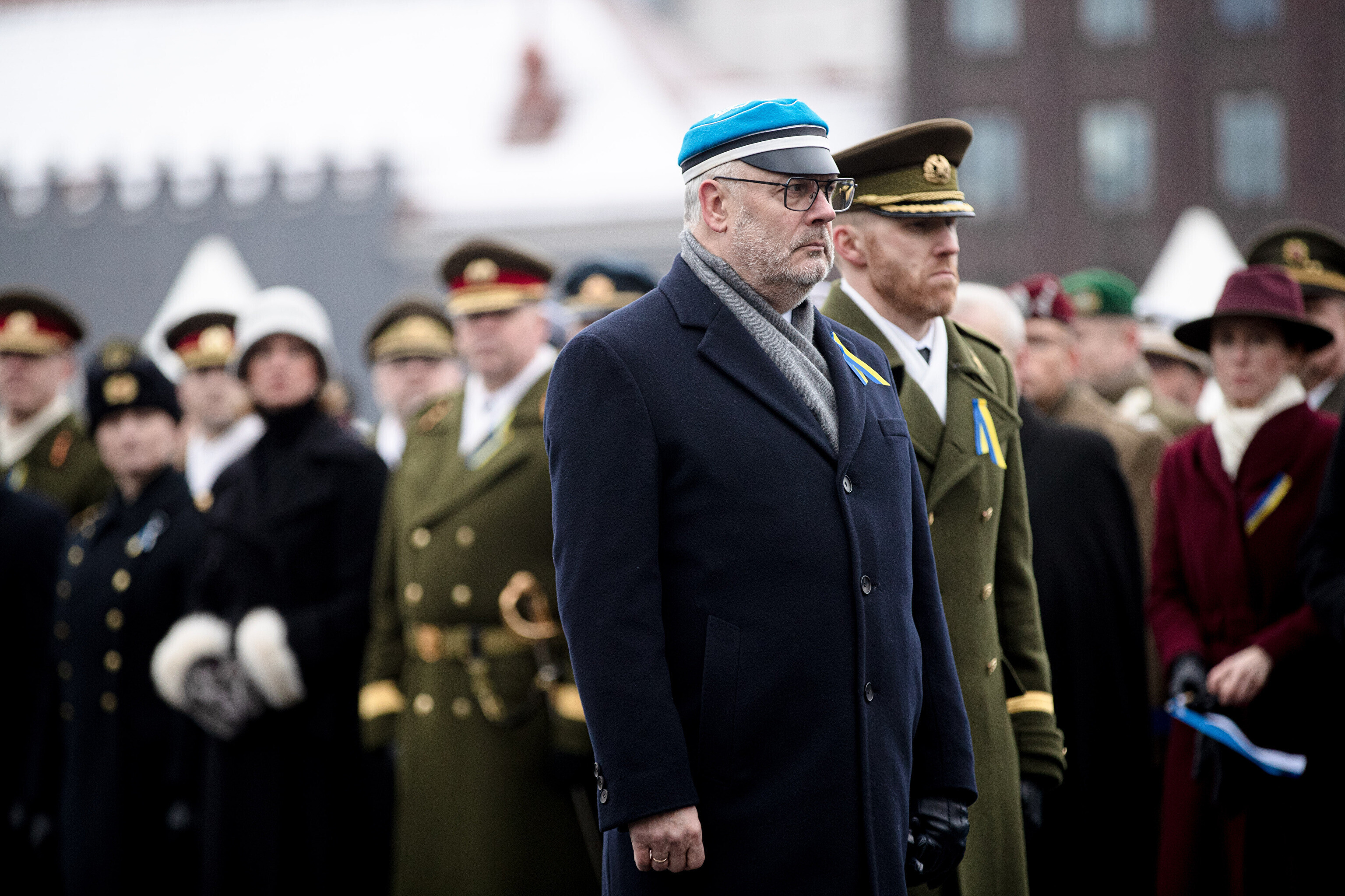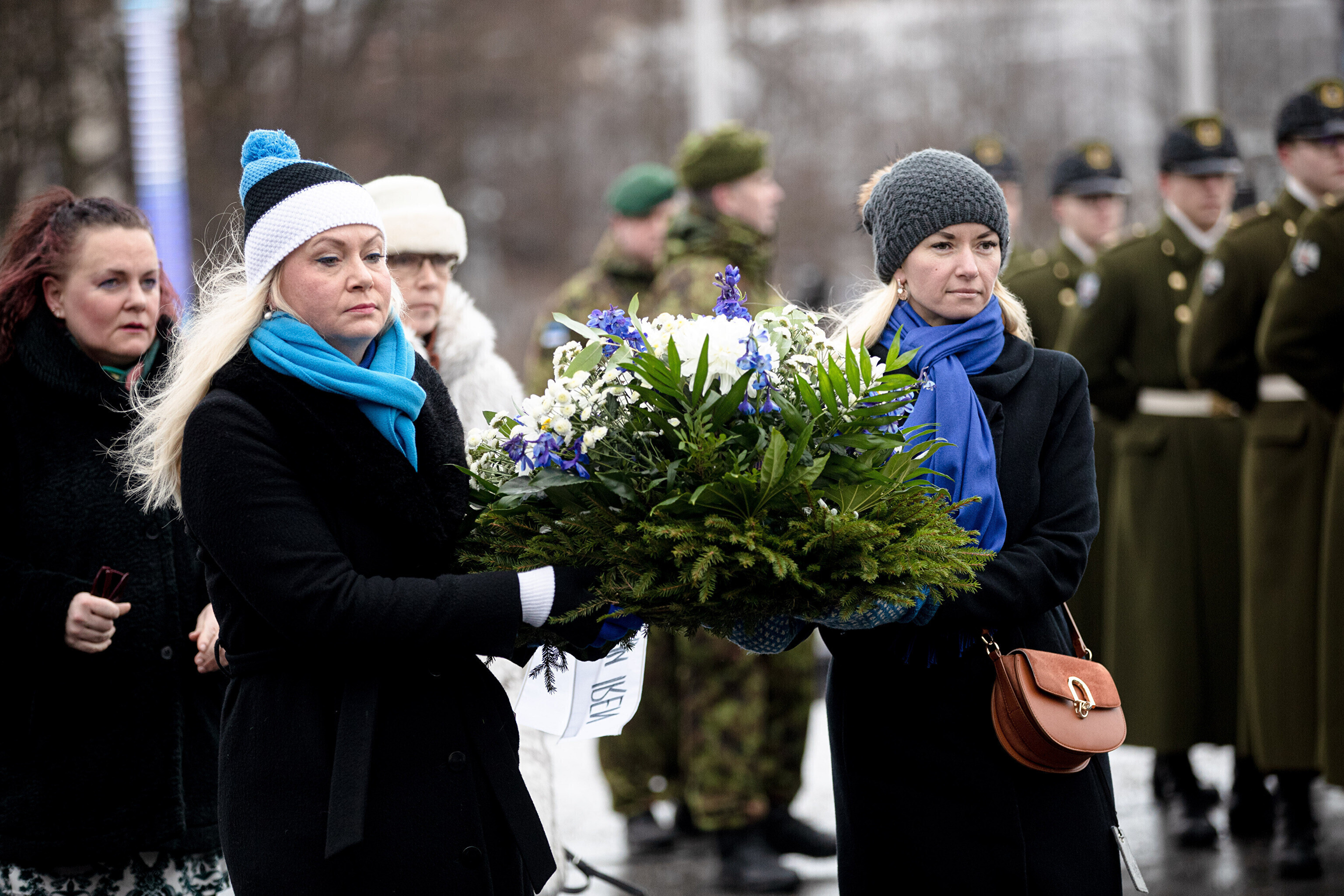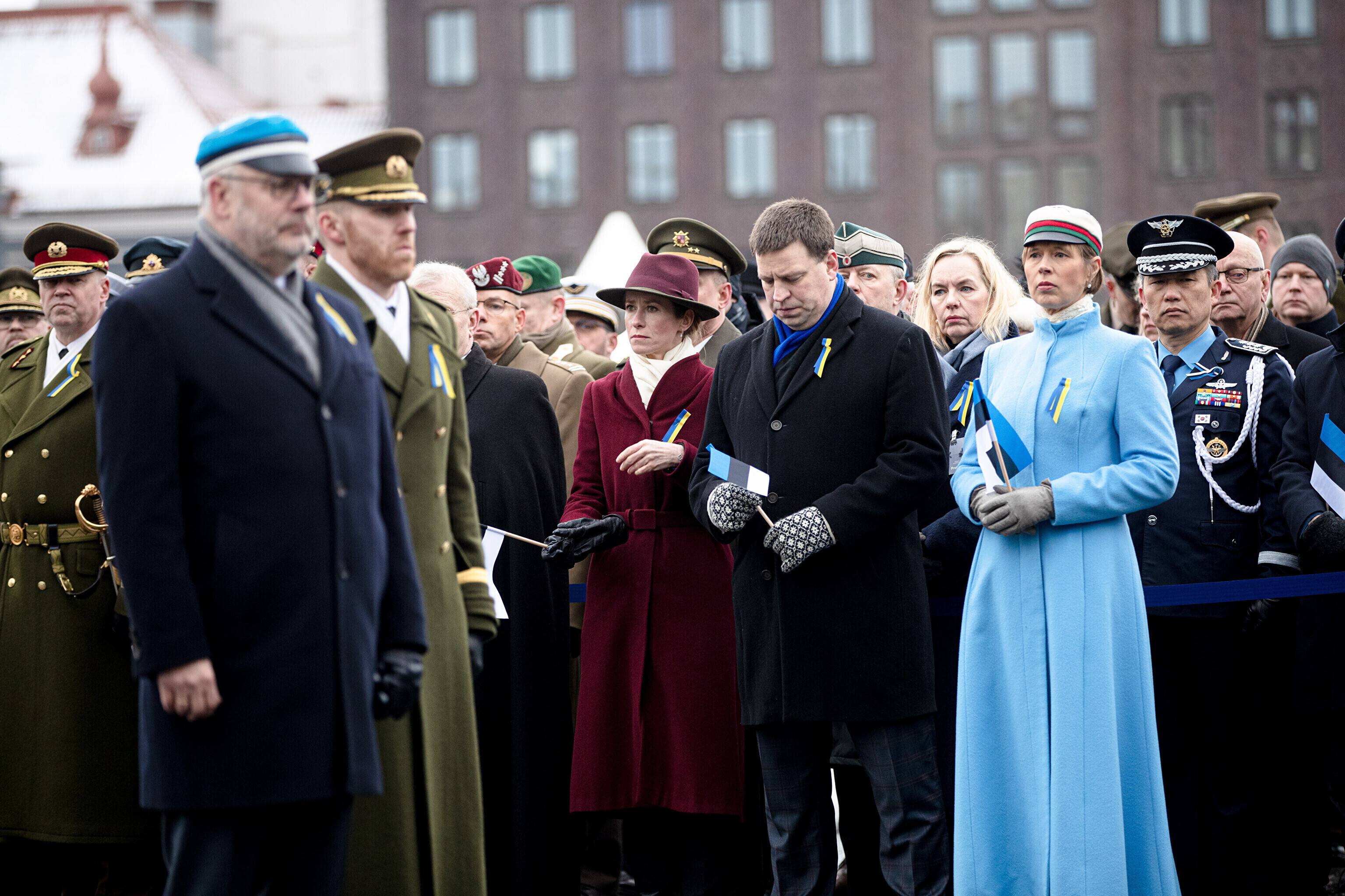 The Estonian president, prime minister and other officials laid wreaths at the War of Independence Victory Column on Freedom Square on Thursday, the 104th anniversary of Estonian independence.