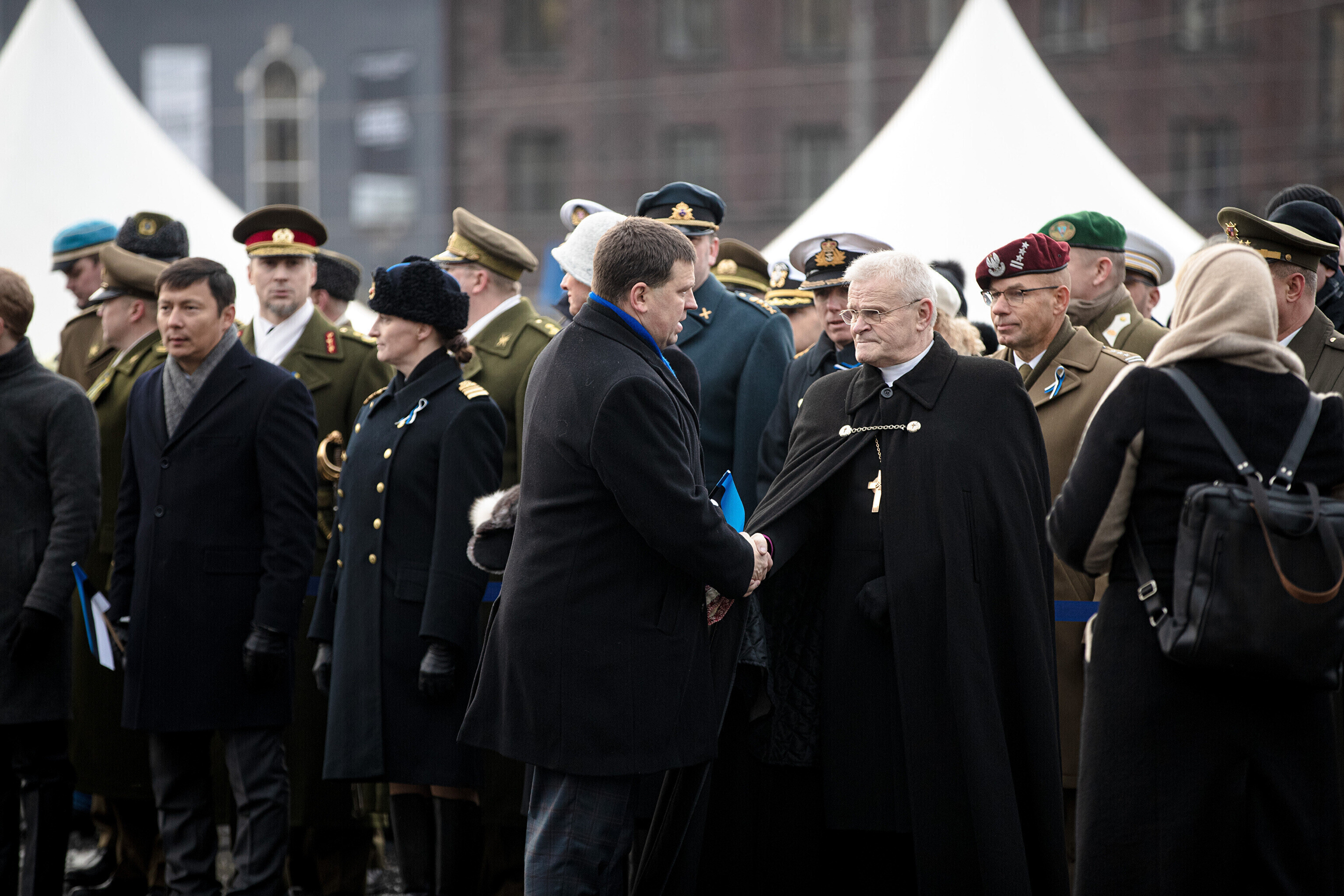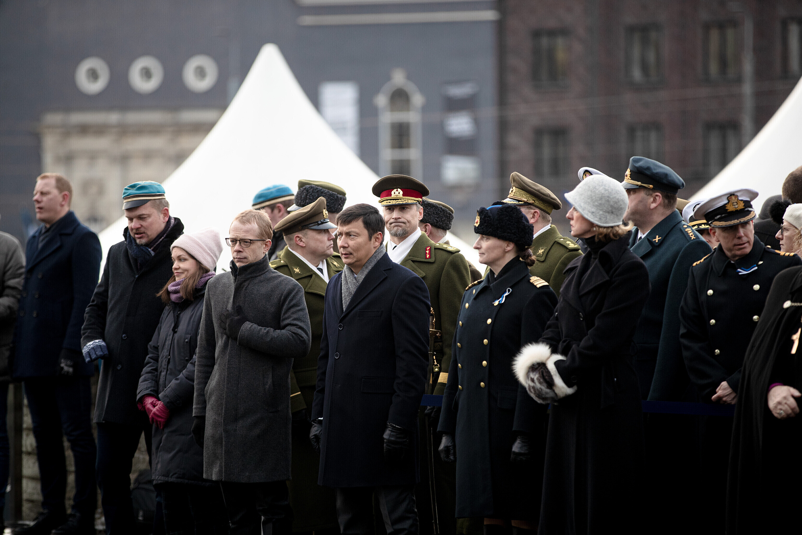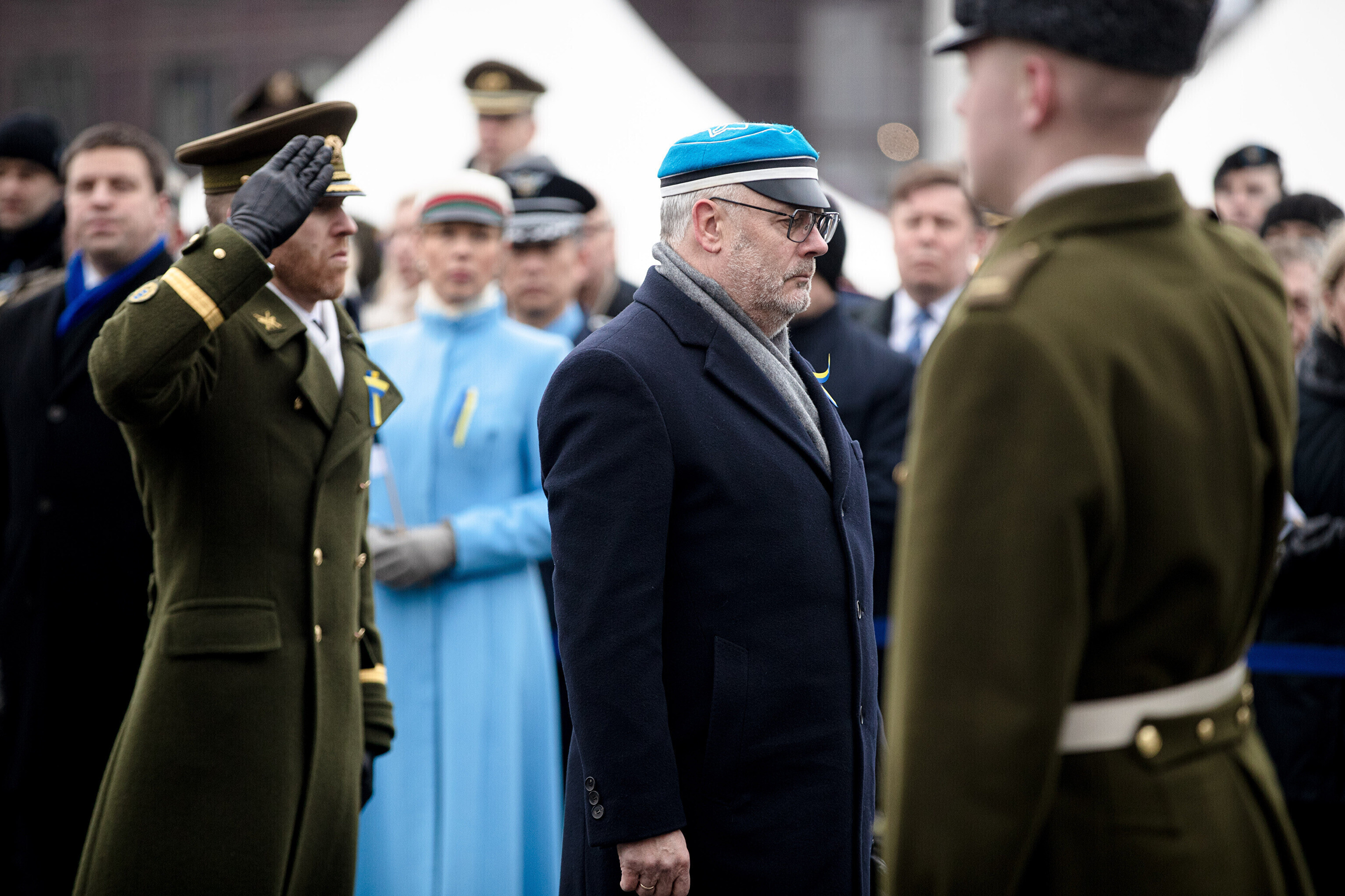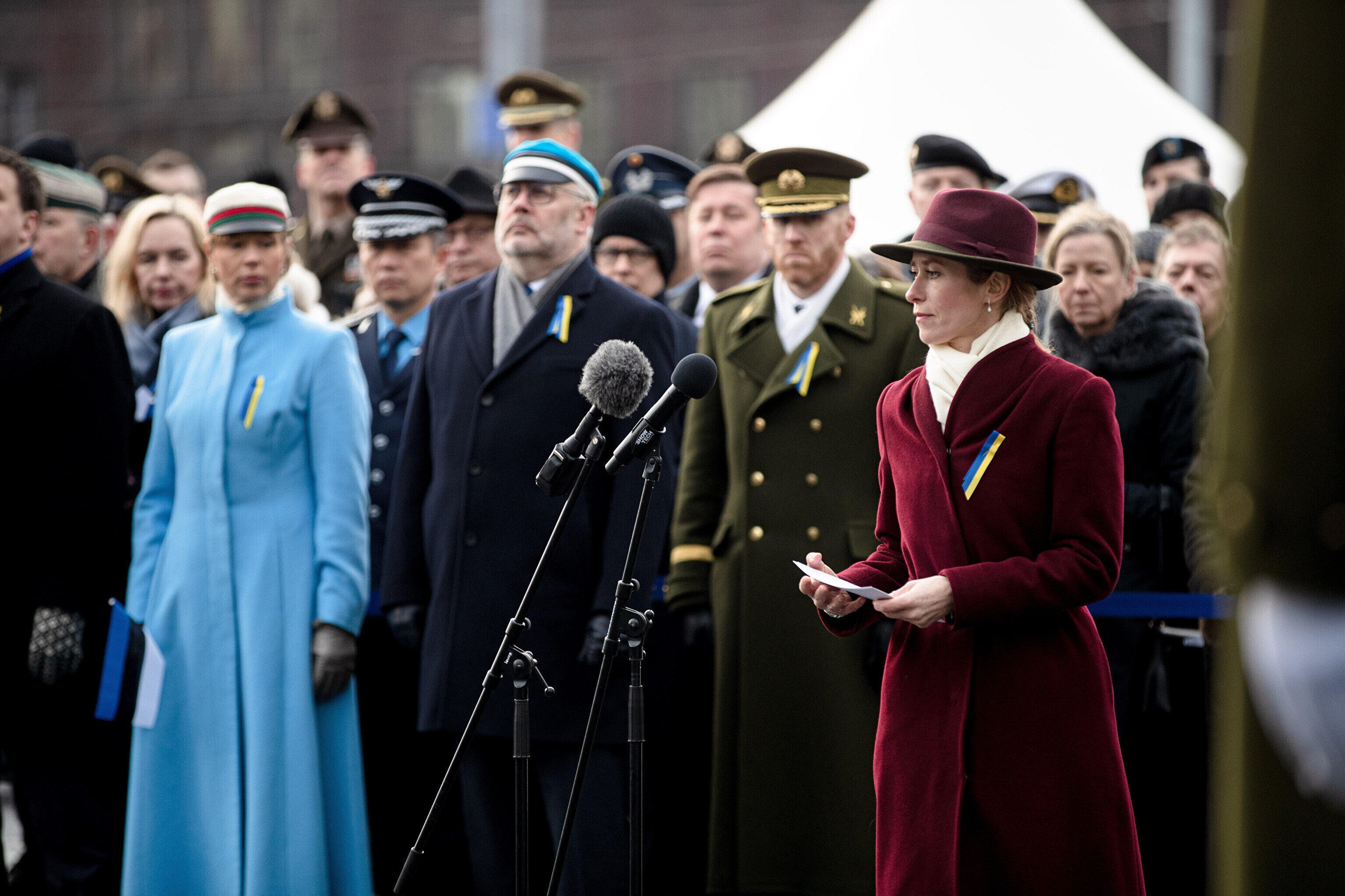 The Estonian president, prime minister and other officials laid wreaths at the War of Independence Victory Column on Freedom Square on Thursday, the 104th anniversary of Estonian independence.