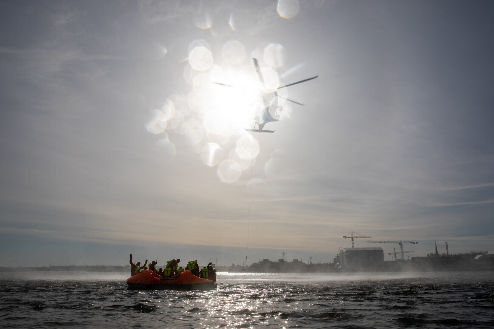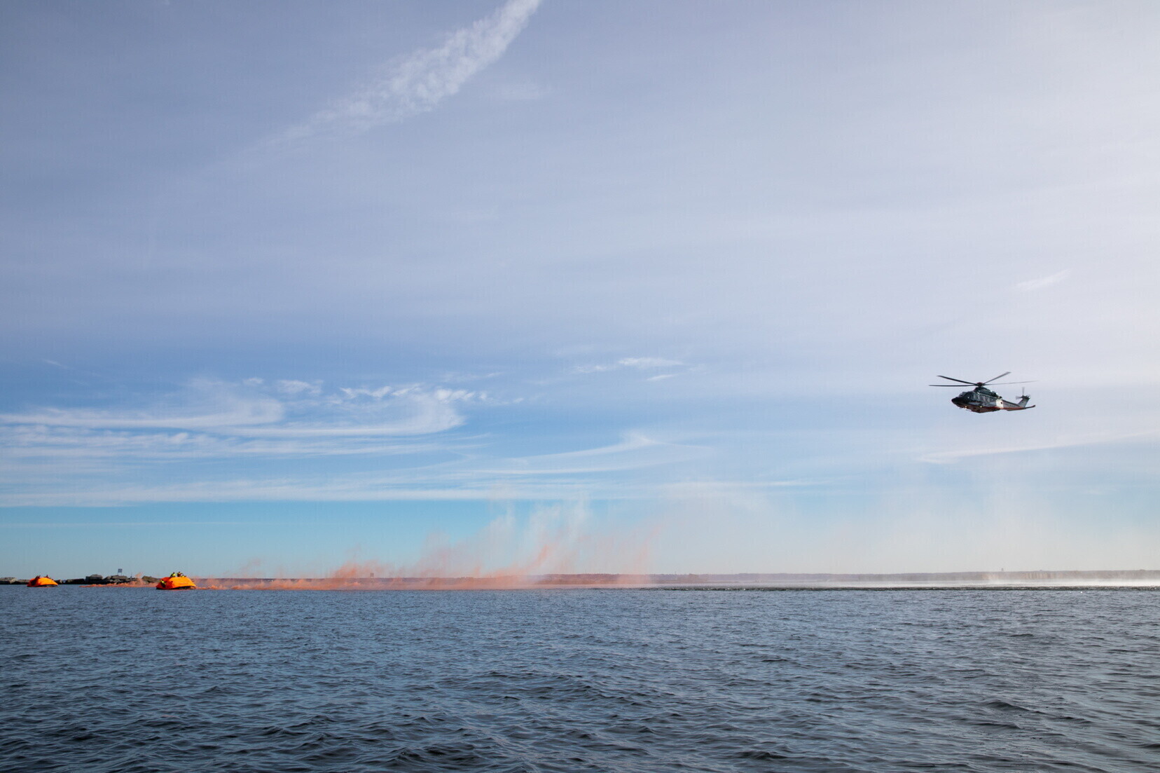 24 hours after the exercise began, a rescue squad from the Police and Border Guard Board (PPA) arrived with a helicopter to evacuate the conscripts from the rafts and bring them back to shore.