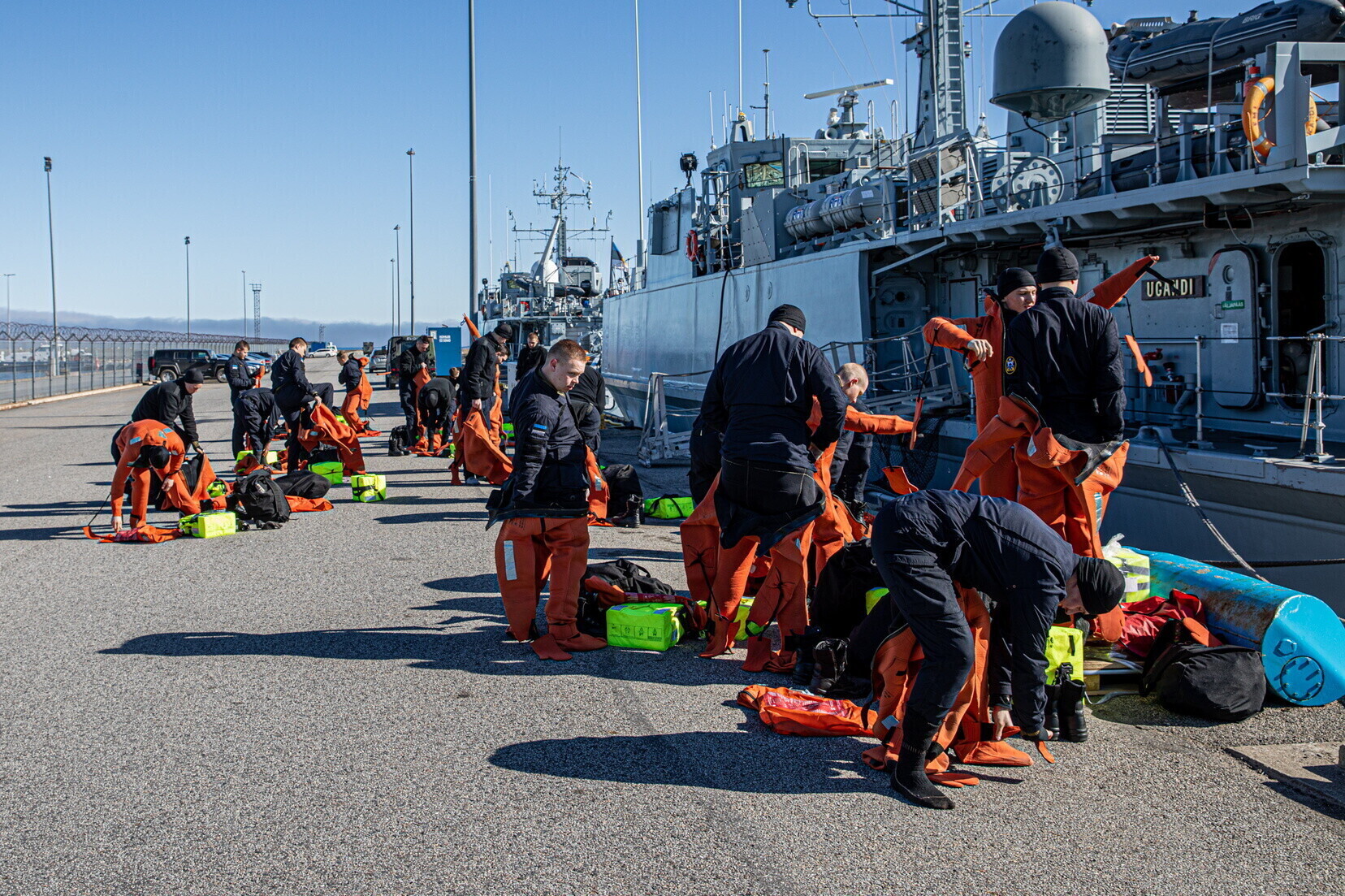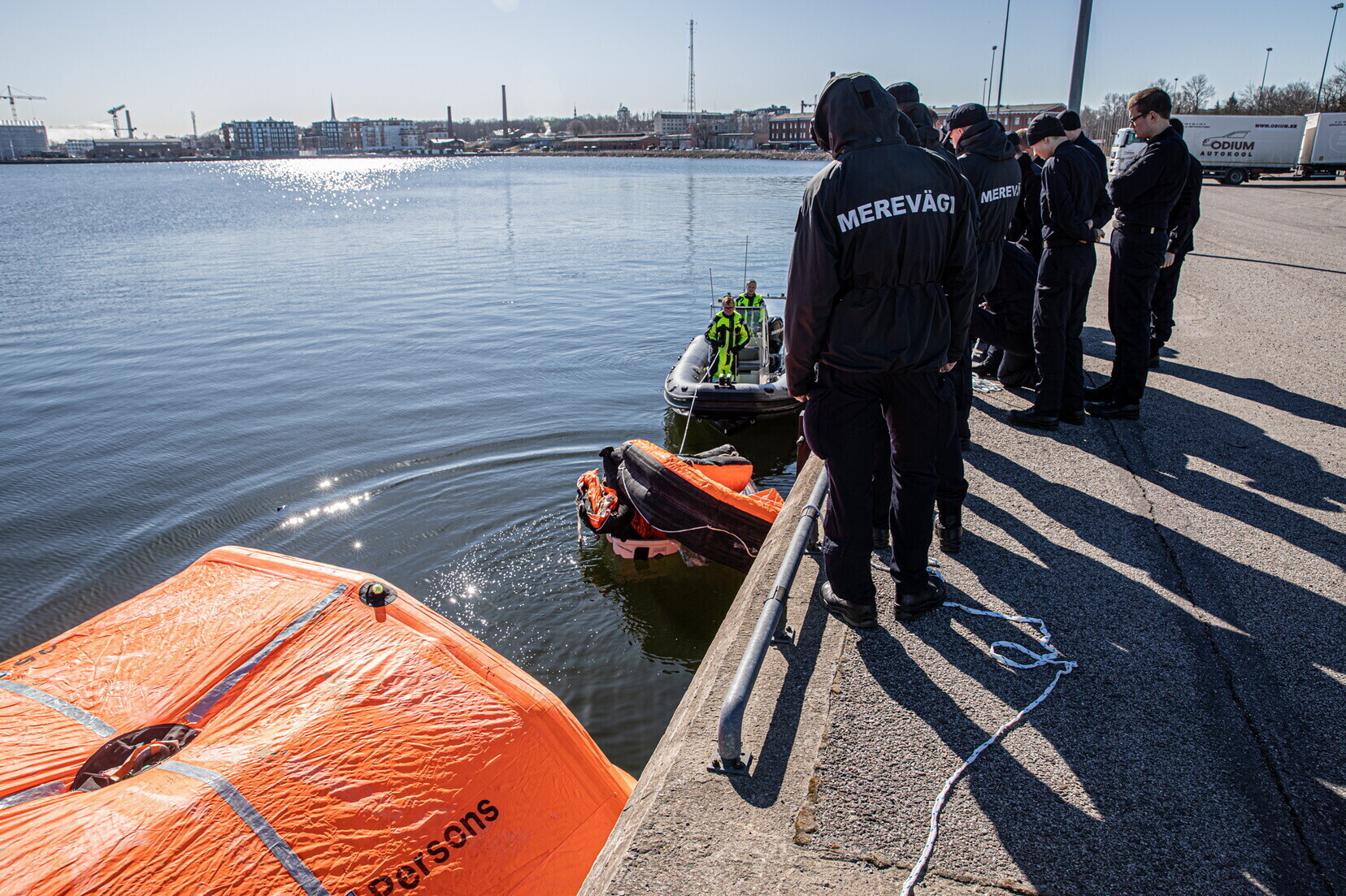 The exercise began with an emergency situation on Tuesday, when conscripts had to abandon ship before swimming together to two life rafts on the water, the Headquarters of the Estonian Defense Forces (EDF) described in a press release.