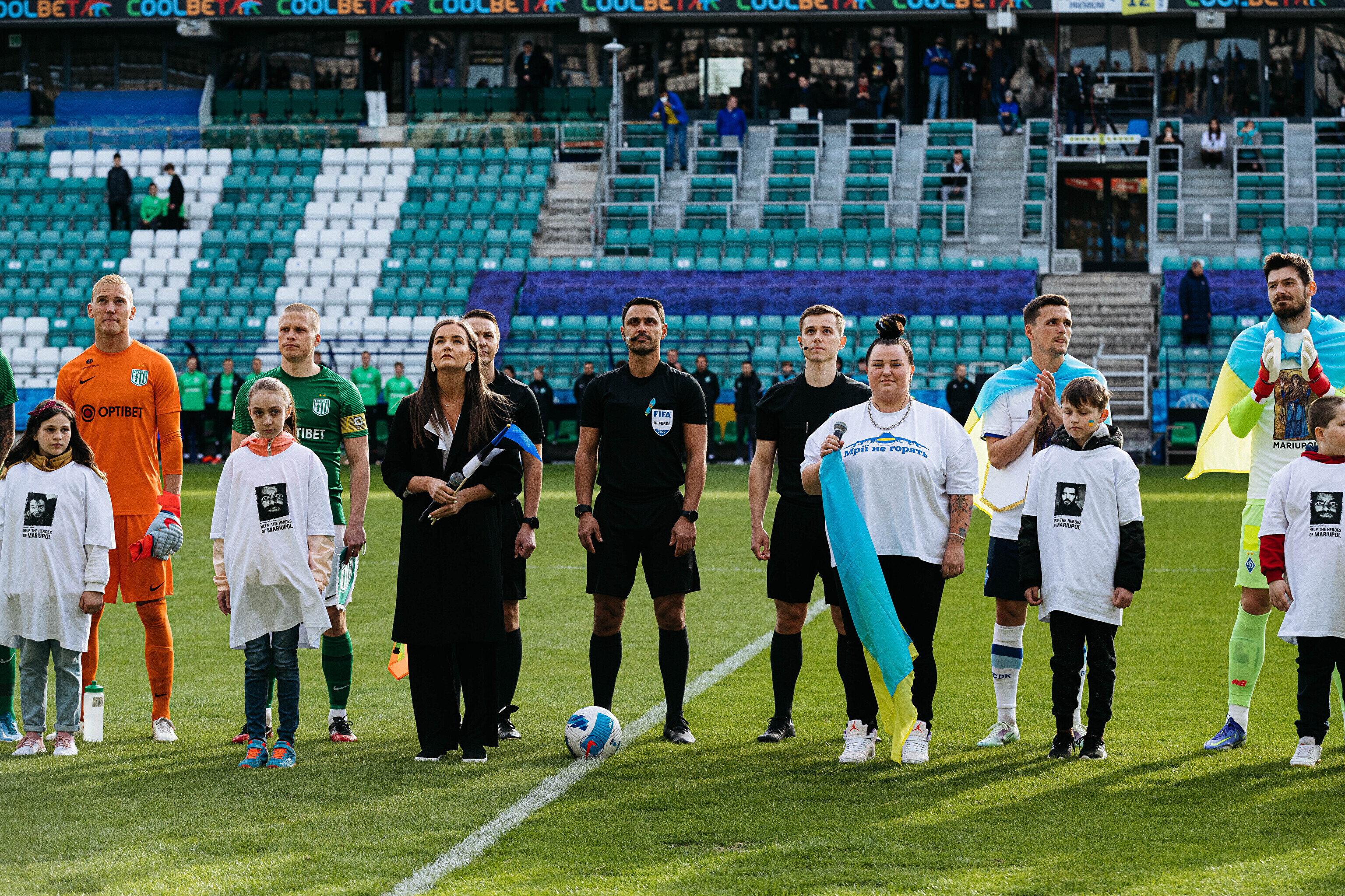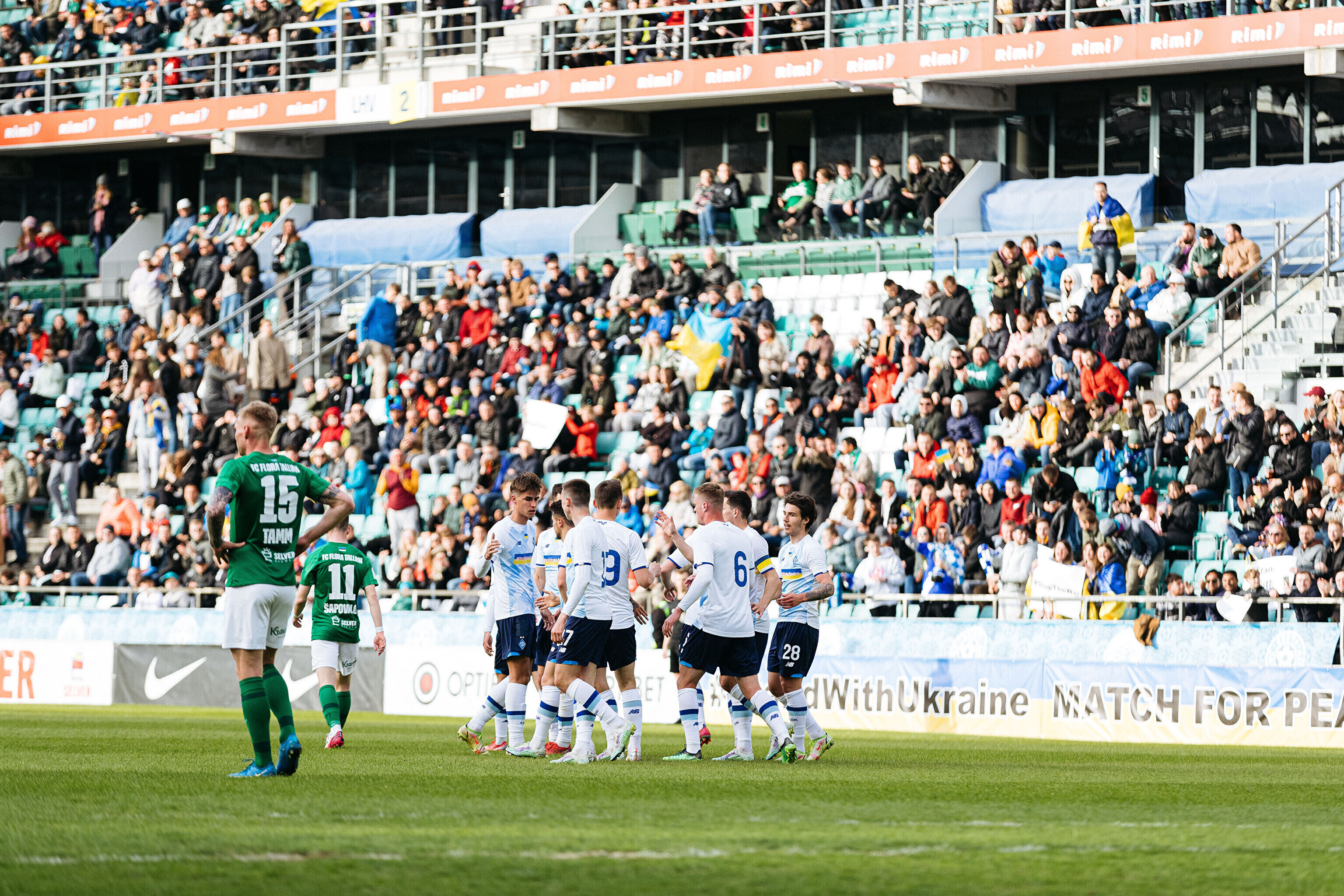 Named the "Match for Peace", the game started at 7 p.m. at the A. Le Coq Arena in Tallinn, with the visitors taking the lead 16 minutes into the game after a run down the middle ended in a goal from midfielder Vikentiy Voloshyn Three minutes before the half, Dynamo were on target again through defender Mykyta Burda, while Vladyslav Vanat topped out the third and final goal in the second half.
