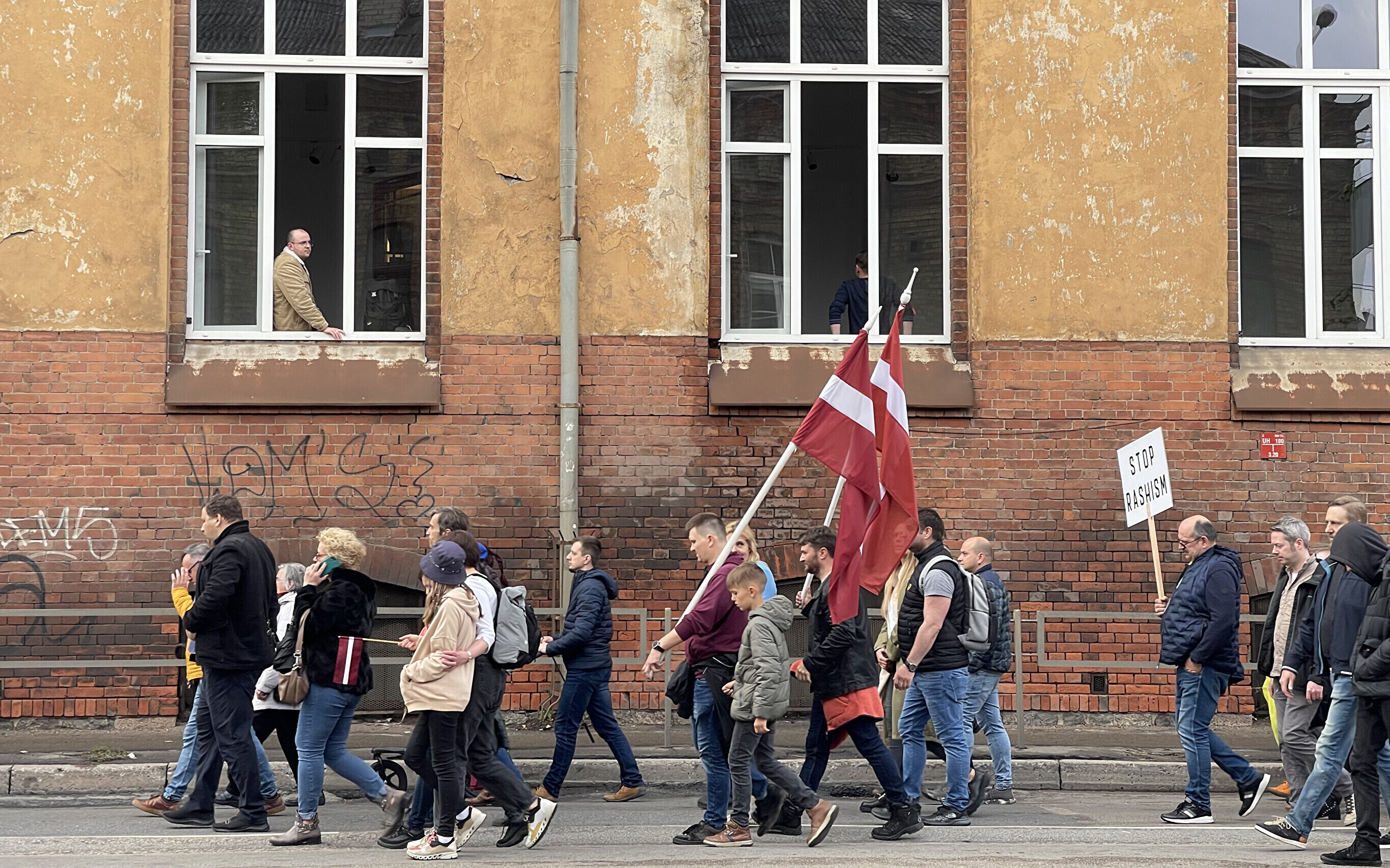 Eight people were detained including one who had tried single-handedly to block the march going ahead and another individual who had been engaged in vandalism and making obscene gestures at passing public transport, LSM reports, but otherwise the protest passed off peaceably.