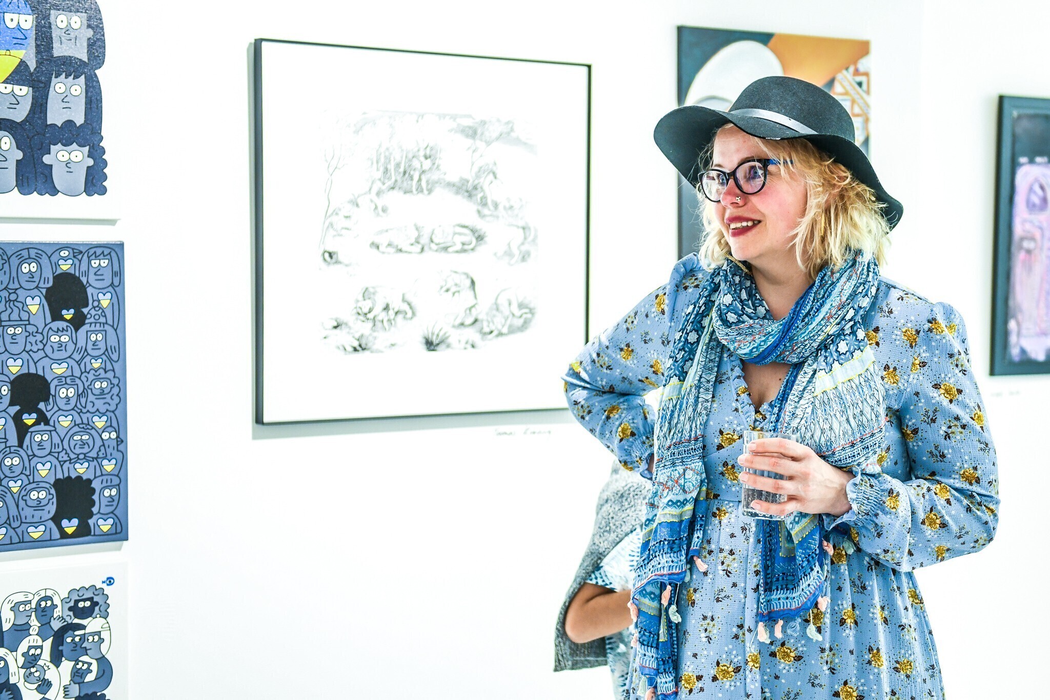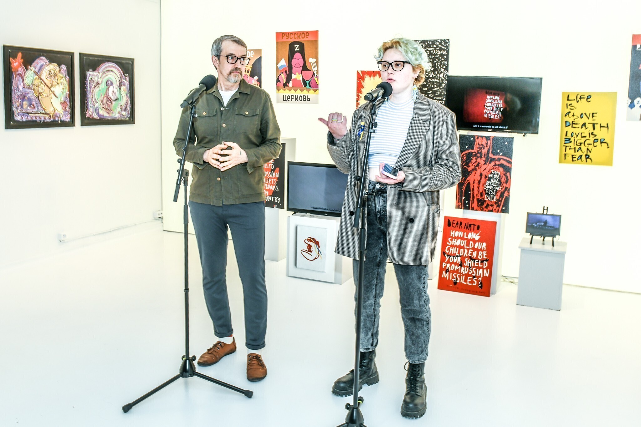 Speaking at the opening, Viktoria said that Ukraine's artists are heroes in their own right, just like the local army, fighting in Ukraine and even internationally against full-scale war — but they are armed not with weapons, but with paintbrushes and pencils.