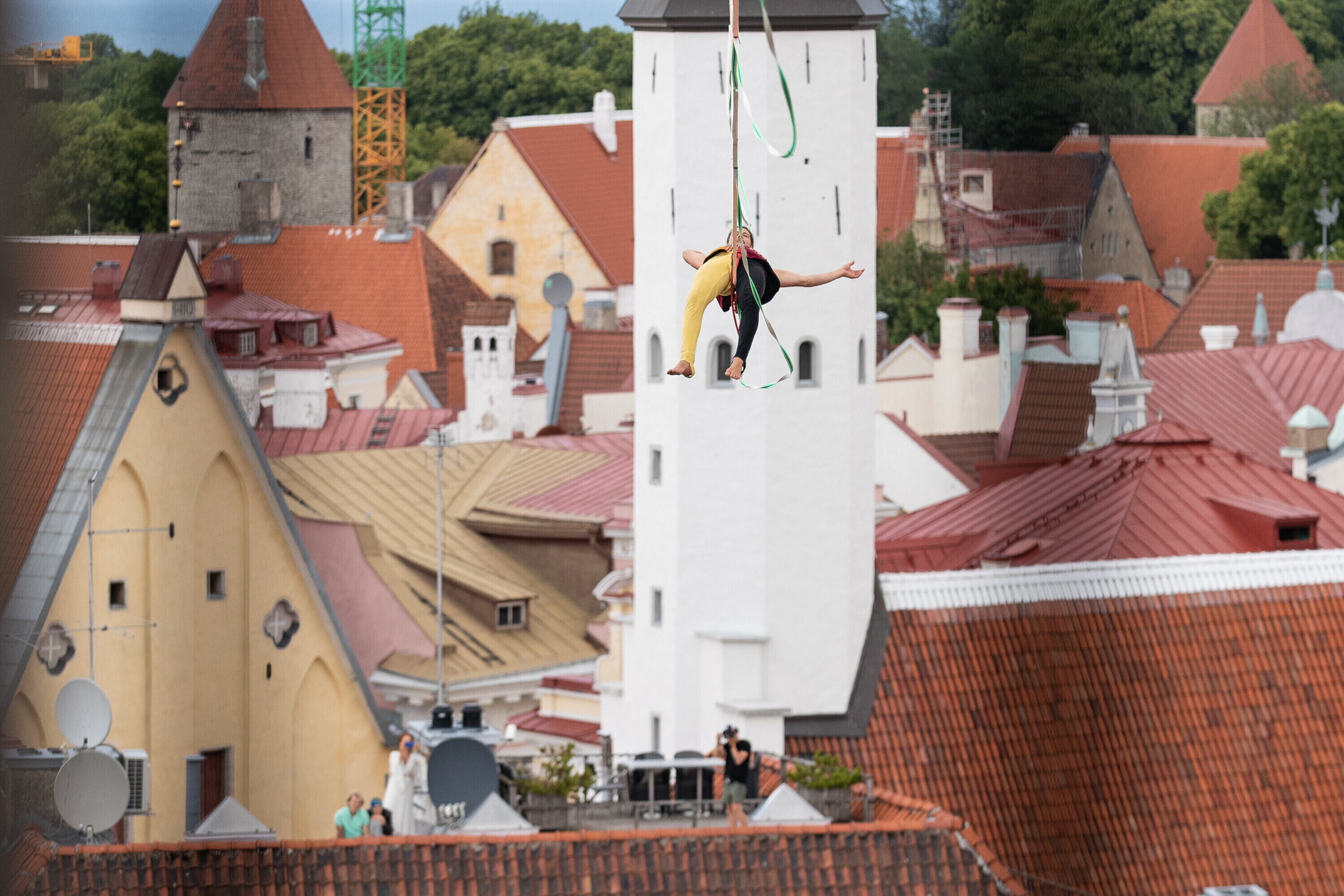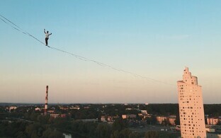 The official celebrations concluded with a spectacular slackline performance by Vahesaar, who performed his act at a height of 35 meters — or nearly 115 feet —between the towers of Tallinn Town Hall and Pühavaimu Church.