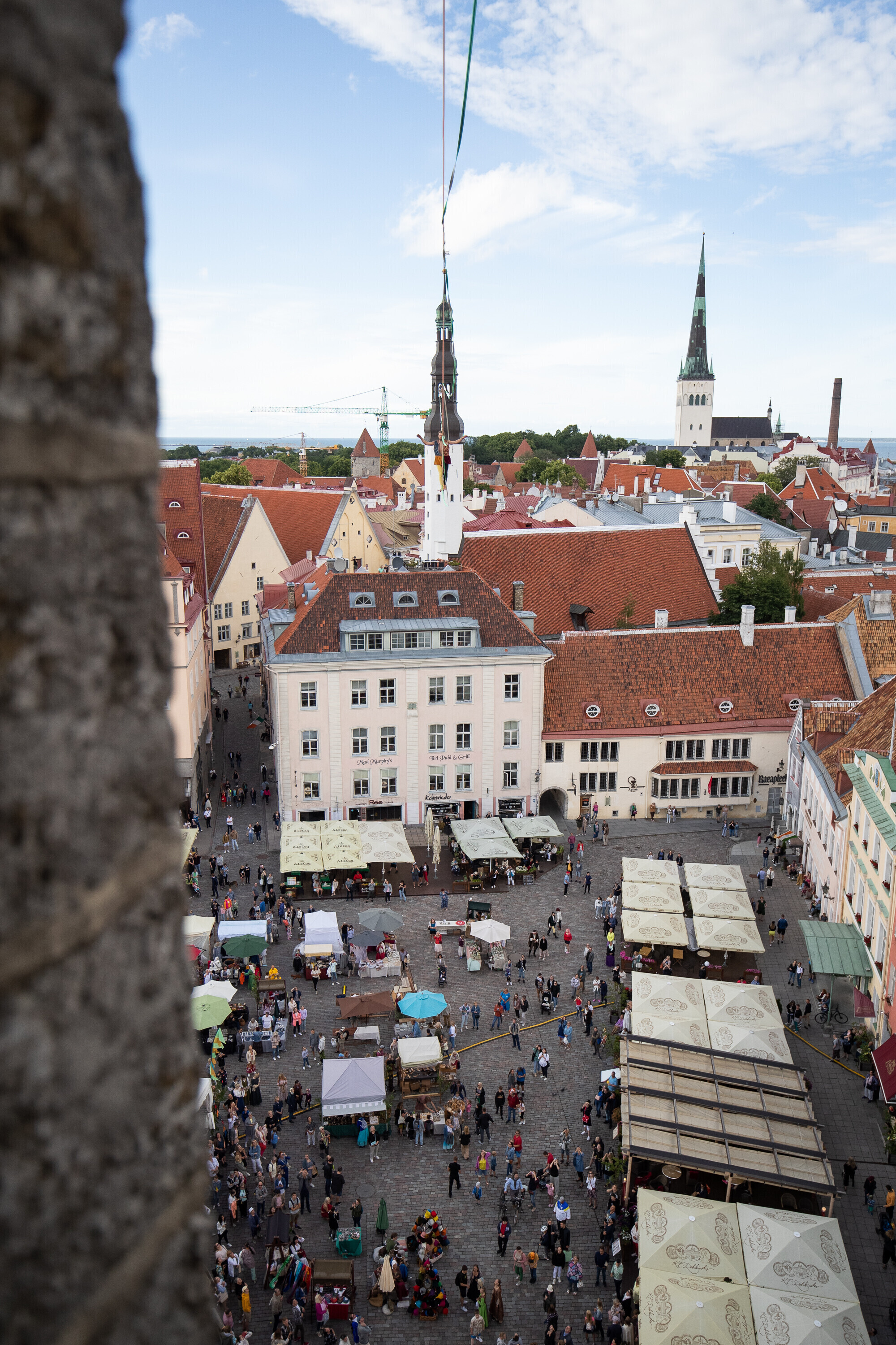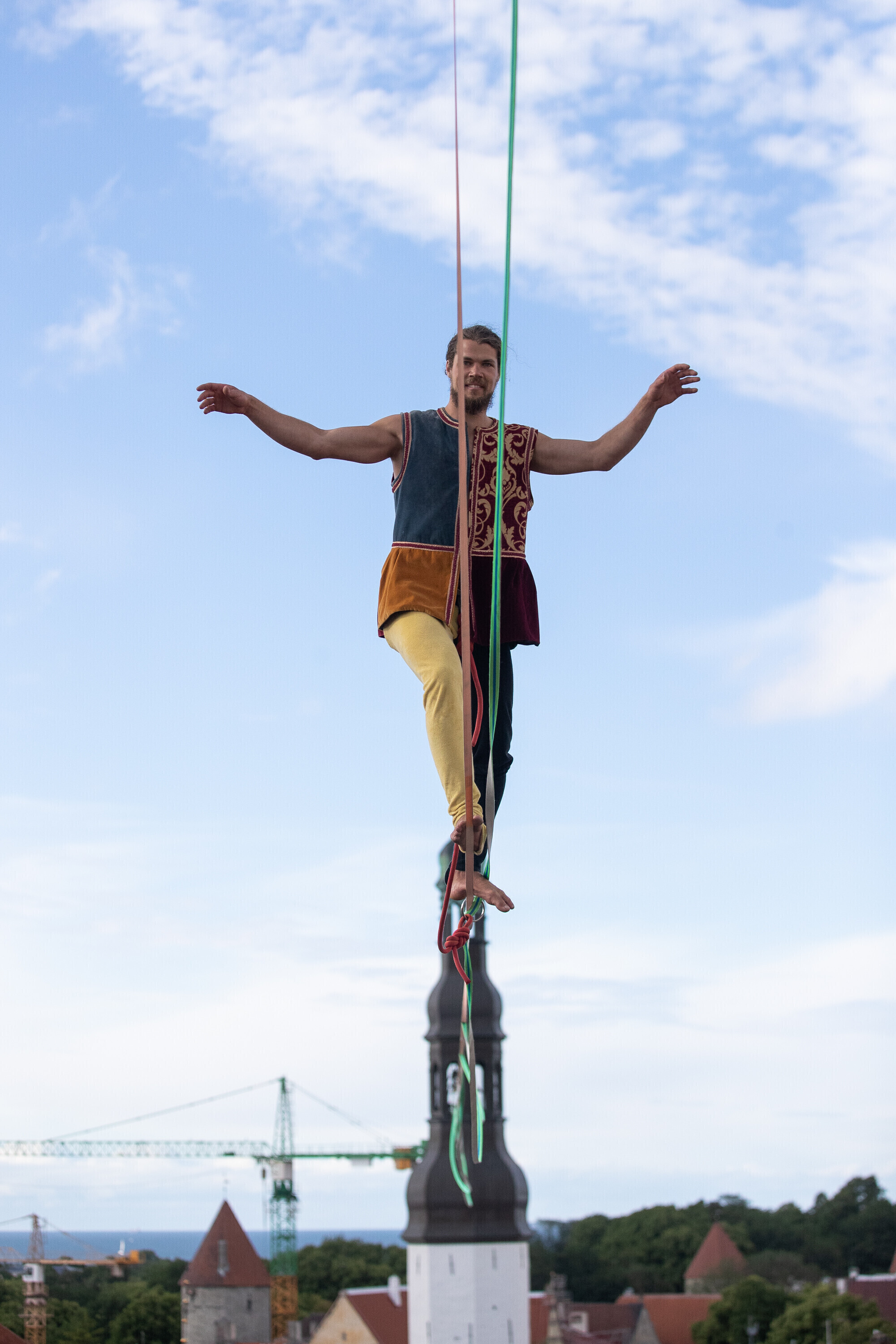 Tallinn's Medieval Days kicked off on Thursday with an opening ceremony at Town Hall Square featuring a dizzying performance by Estonian slackliner Tauri Vahesaar.