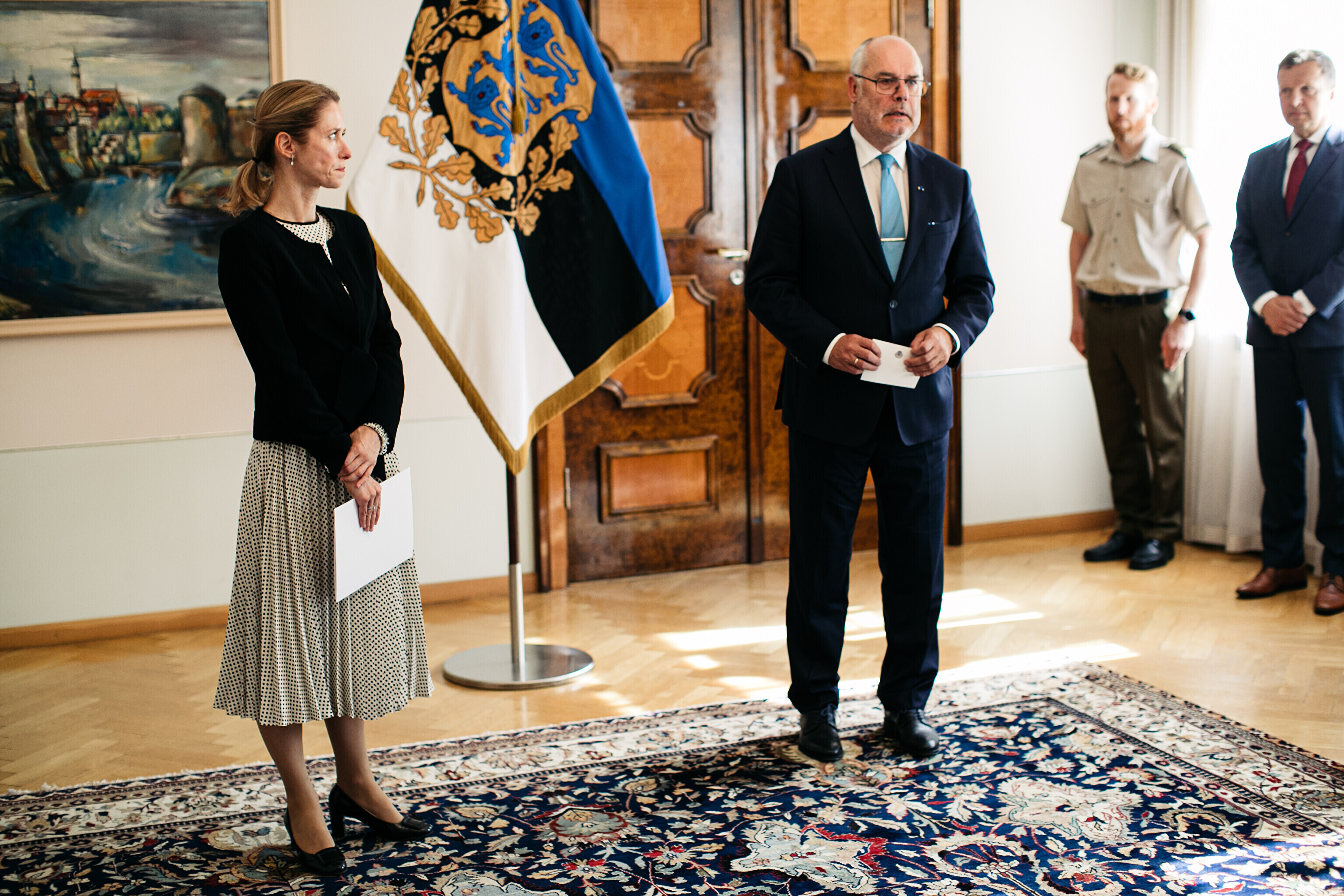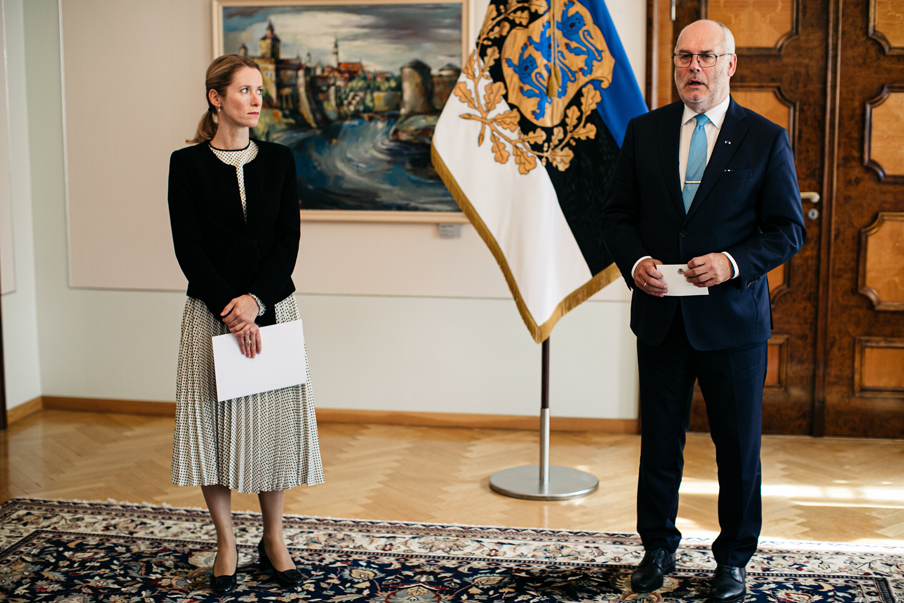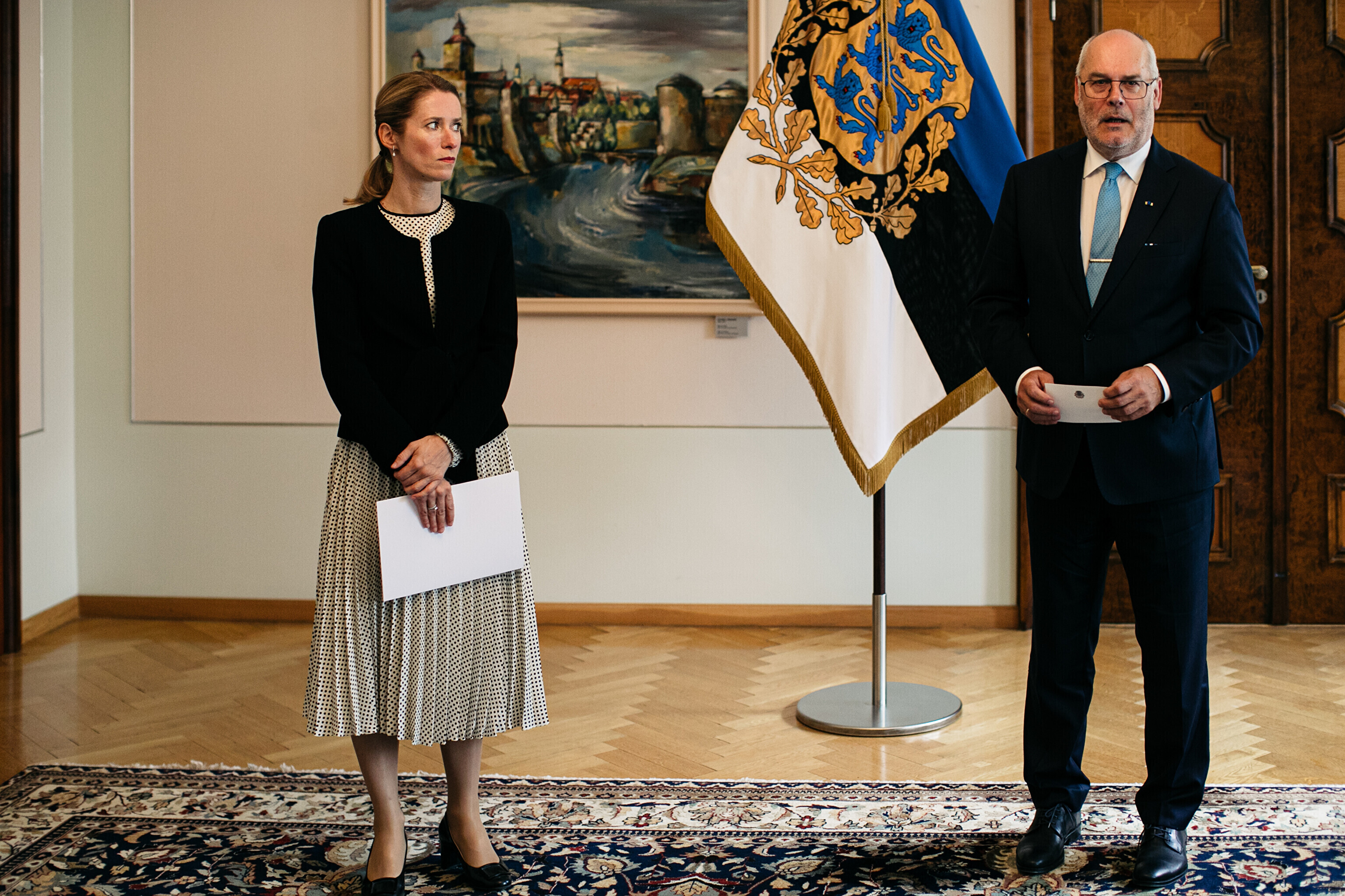 Following constitutional protocol, Kallas informed the Riigikogu of her wish to end the current government on Thursday morning and handed a resignation notice to President Alar Karis at Kadriorg Palace.