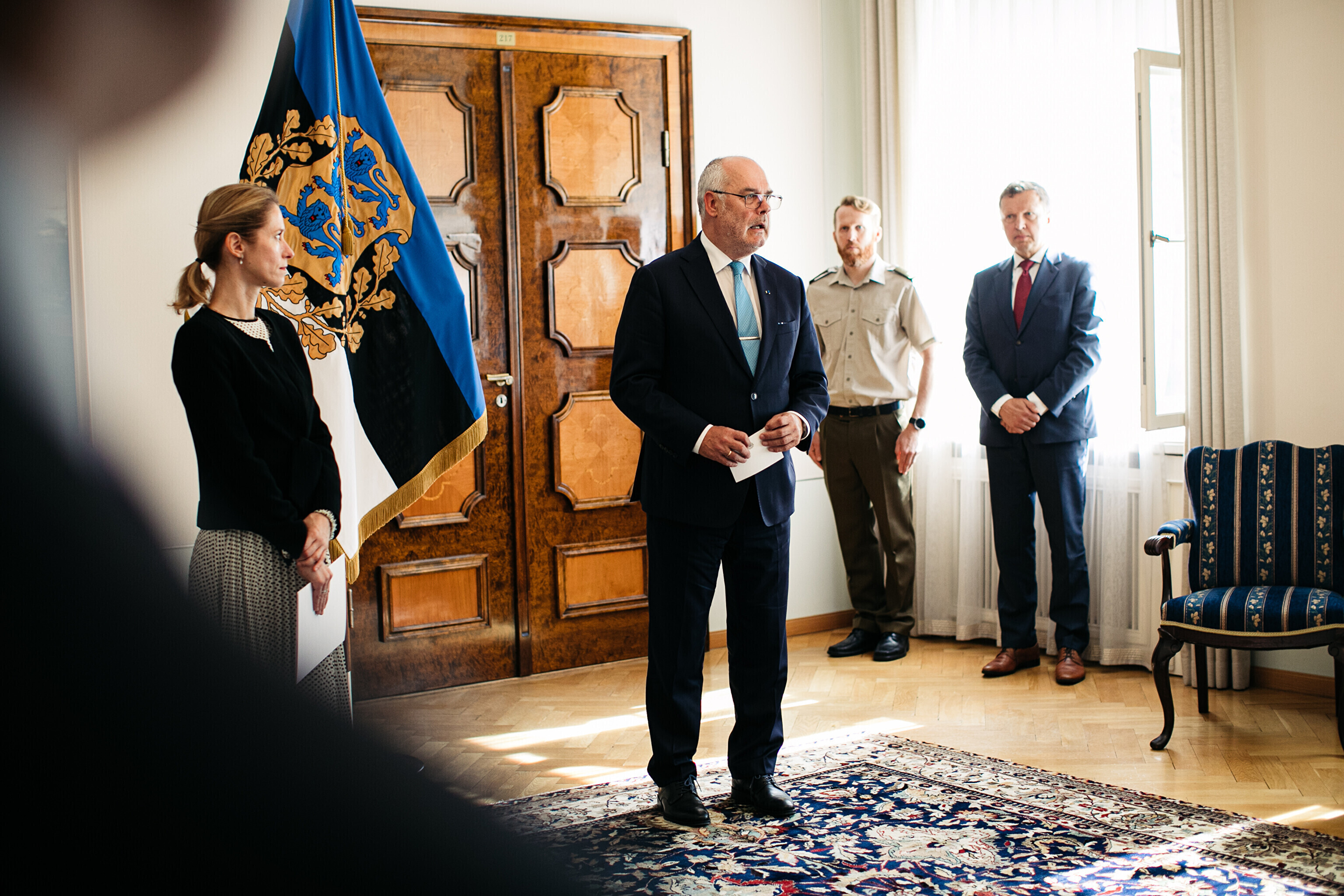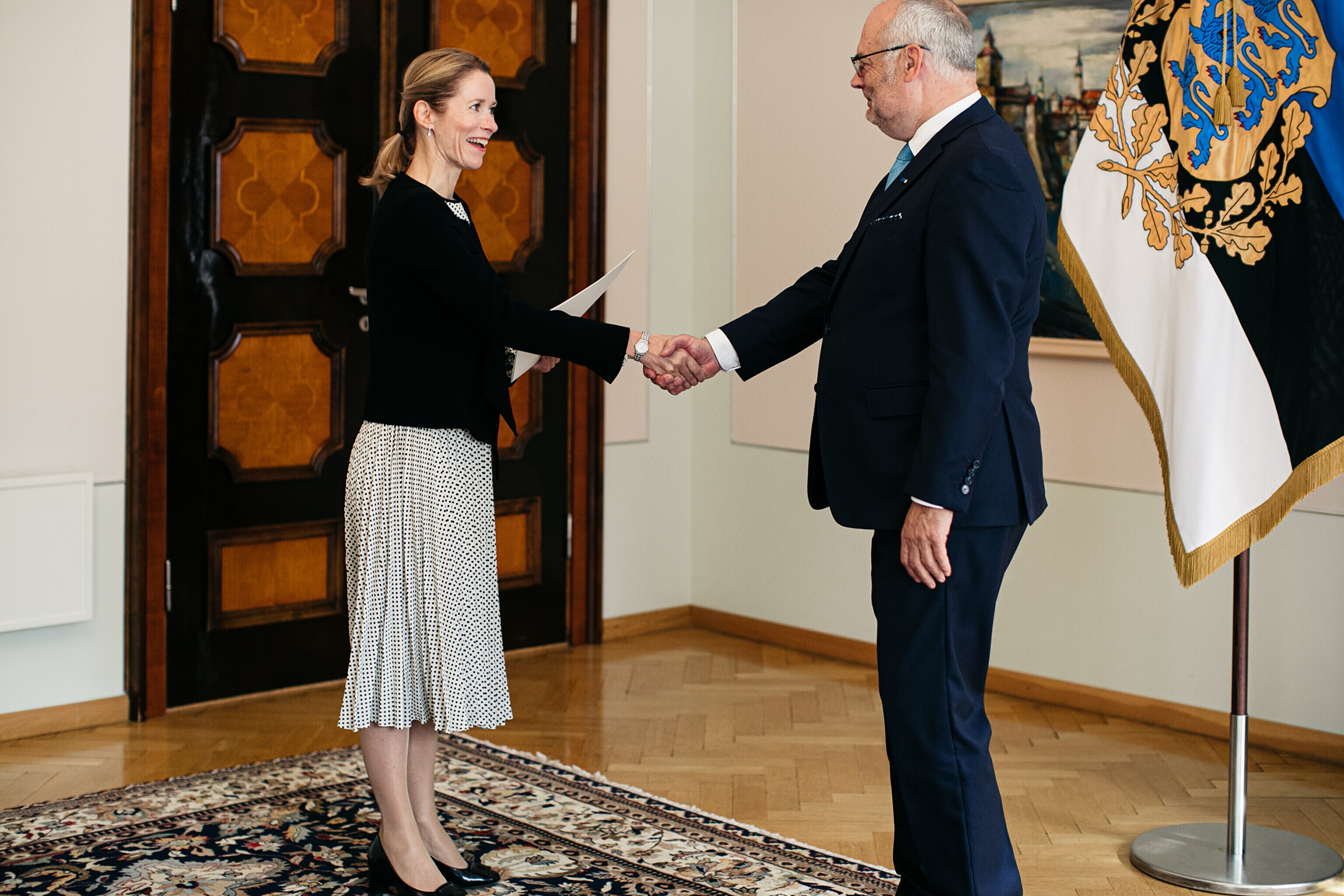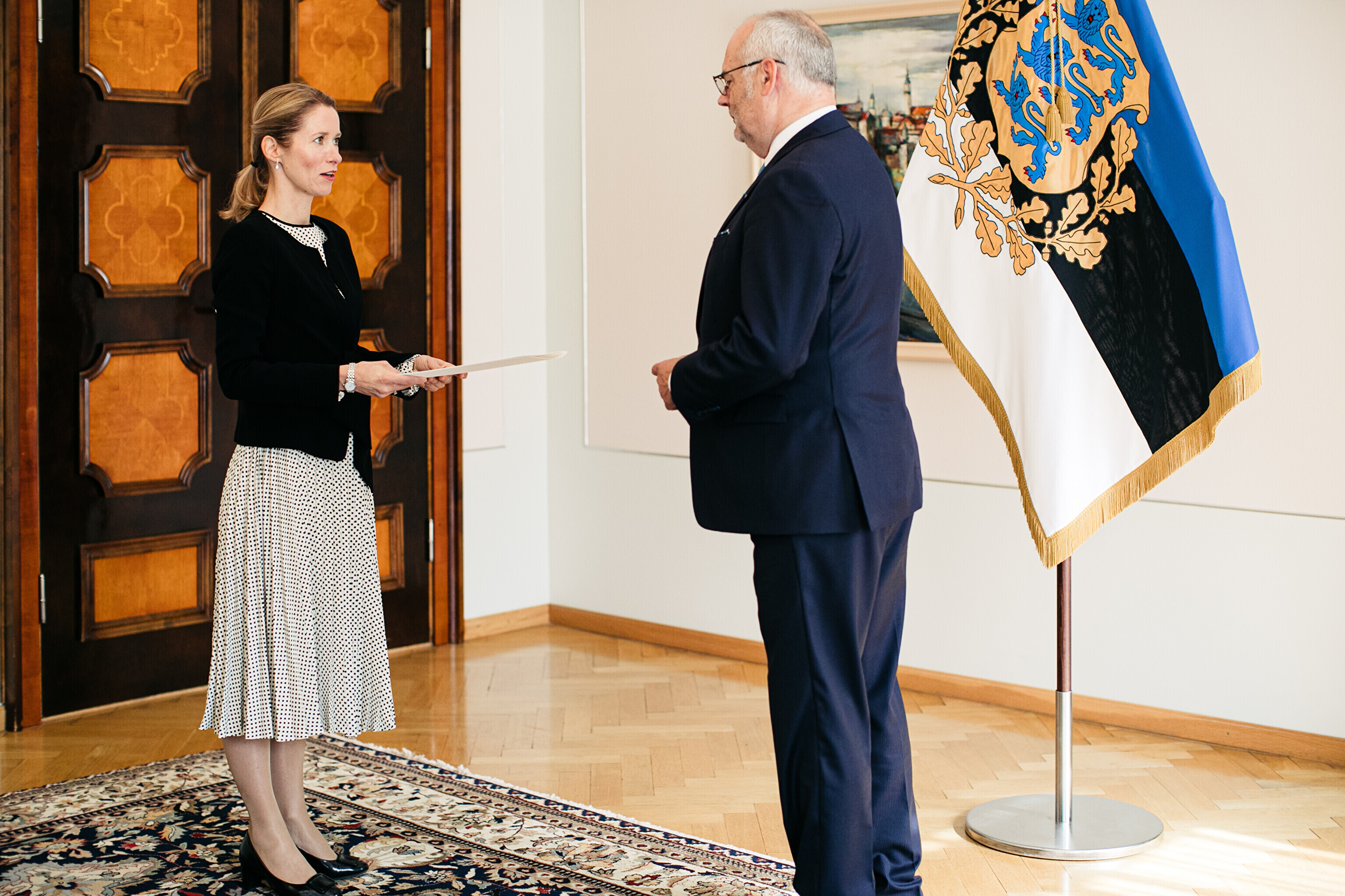 Following constitutional protocol, Kallas informed the Riigikogu of her wish to end the current government on Thursday morning and handed a resignation notice to President Alar Karis at Kadriorg Palace.