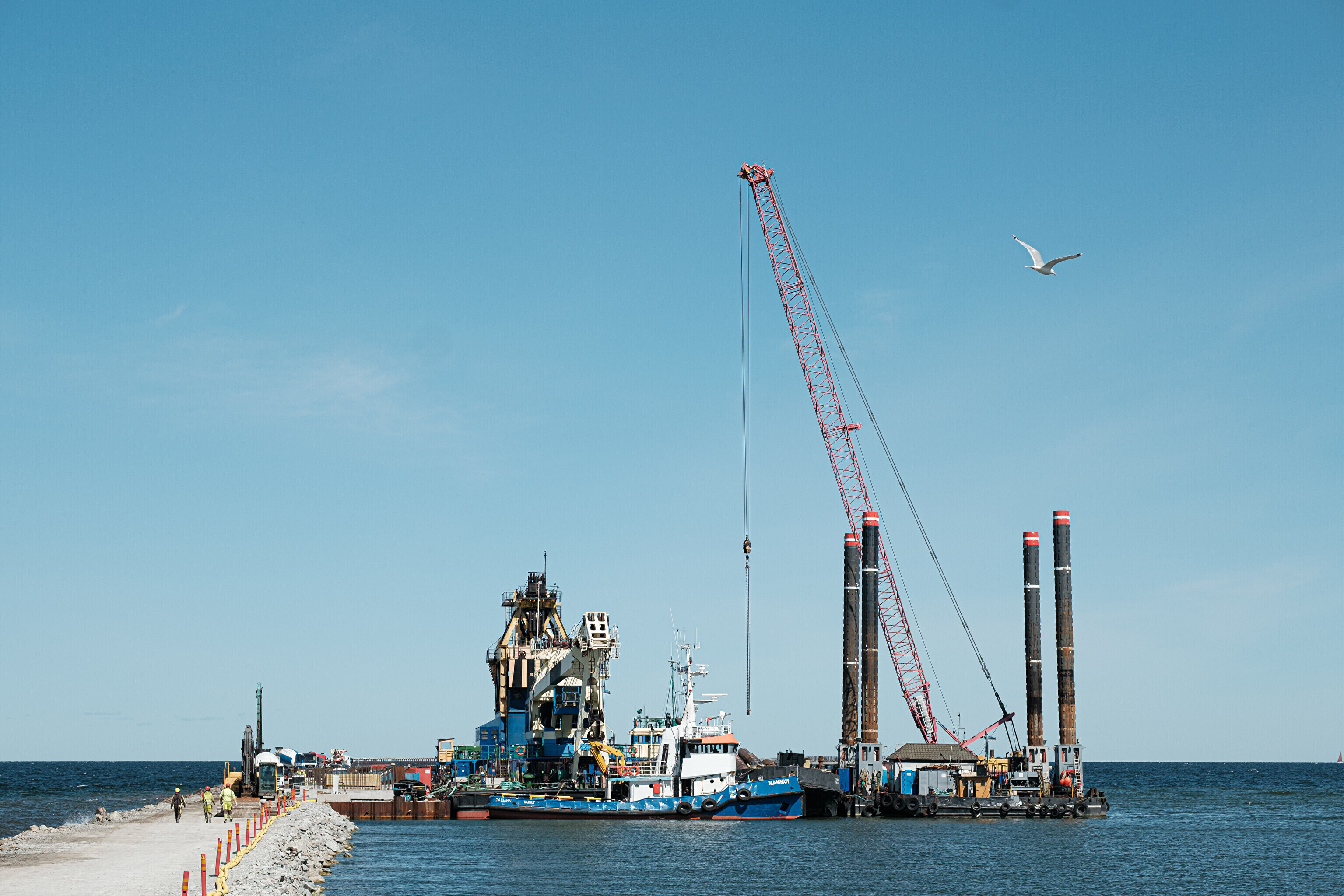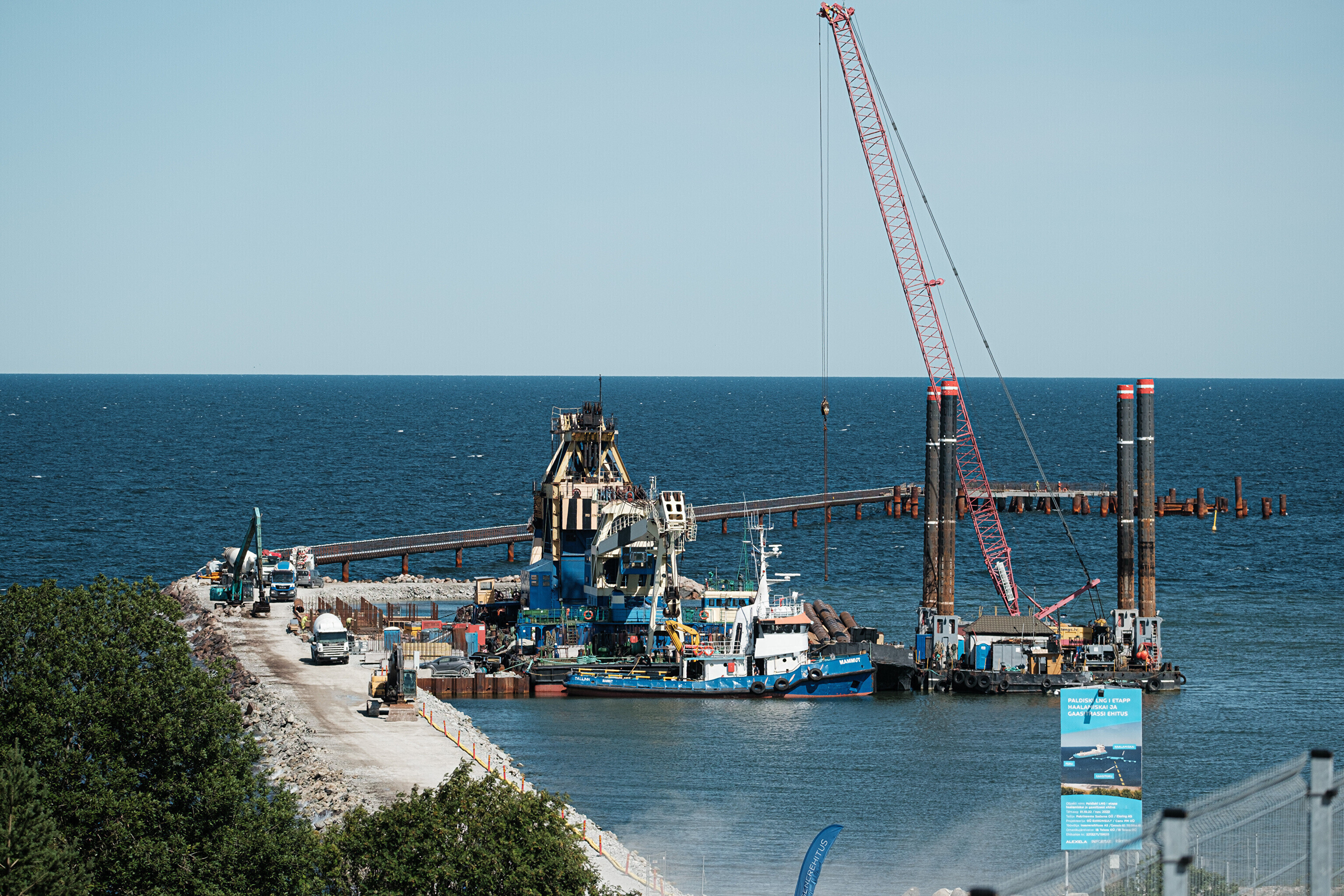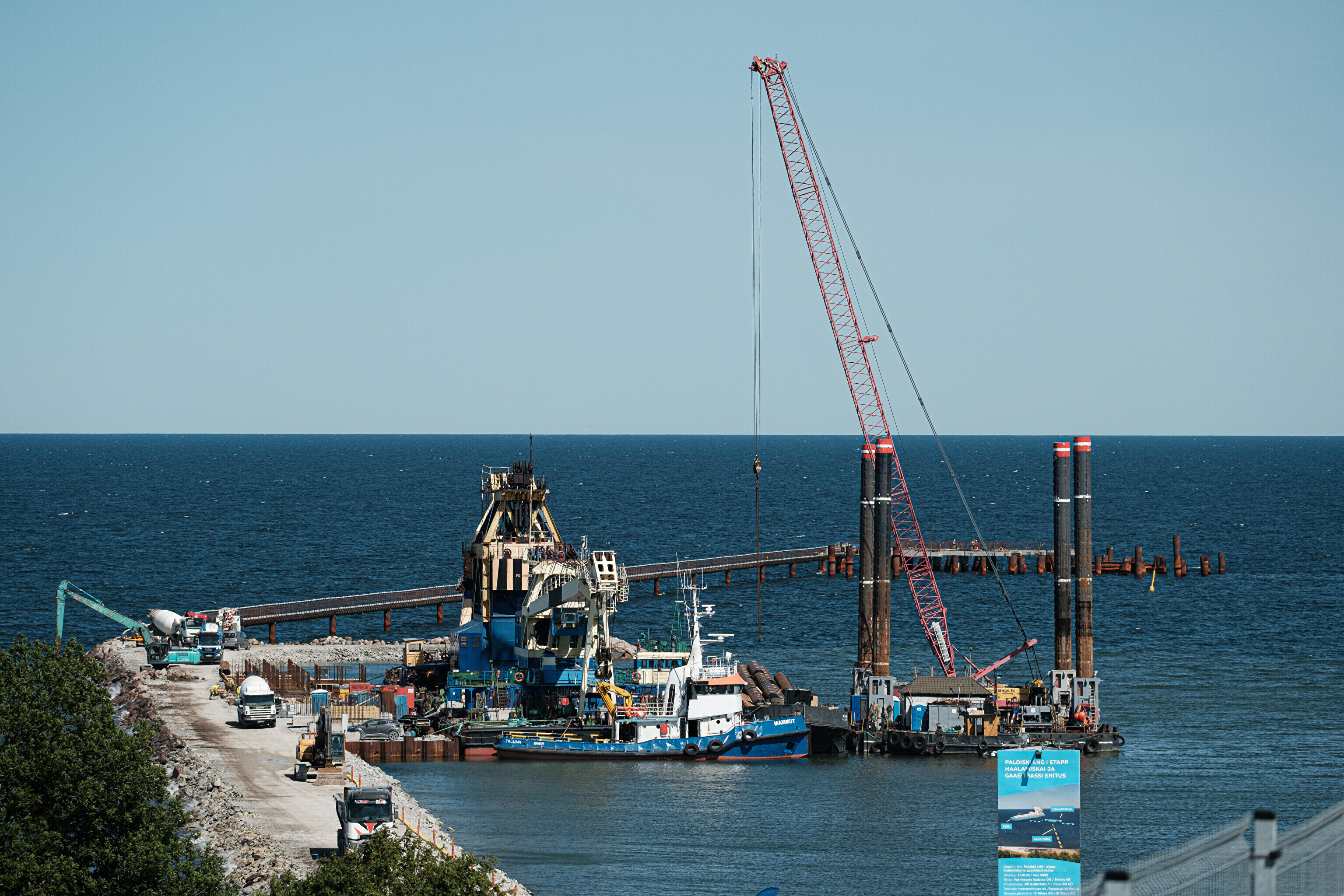 Marti Hääl, chairman of the board of fuel company Alexela, which previously completed dredging work at the Paldiski site, said the construction at Pakrineeme on the nearby Pakri peninsula is also going according to plan, and concrete work has now begun.