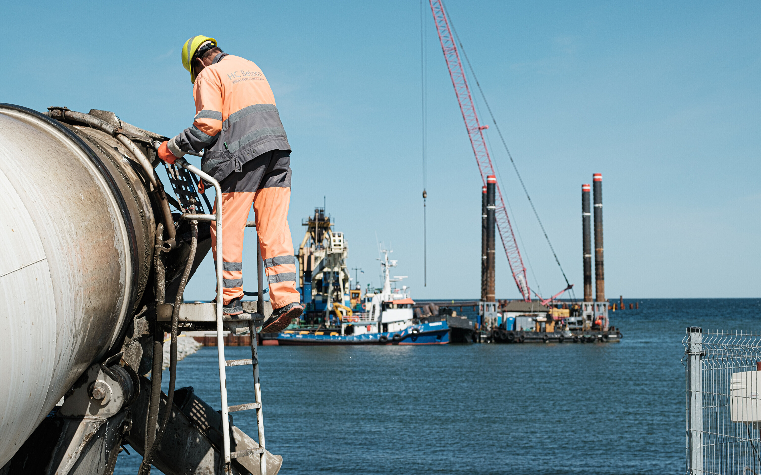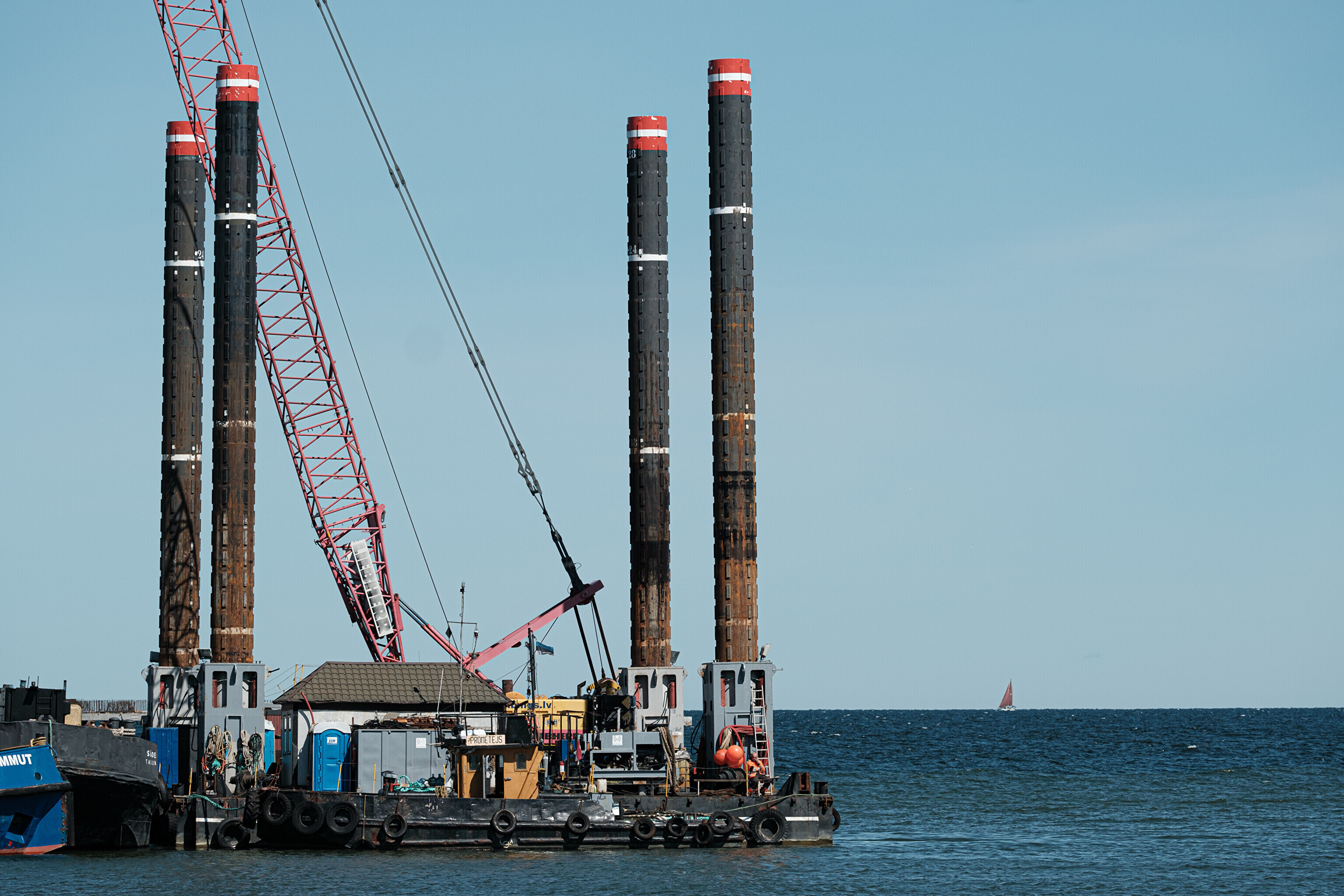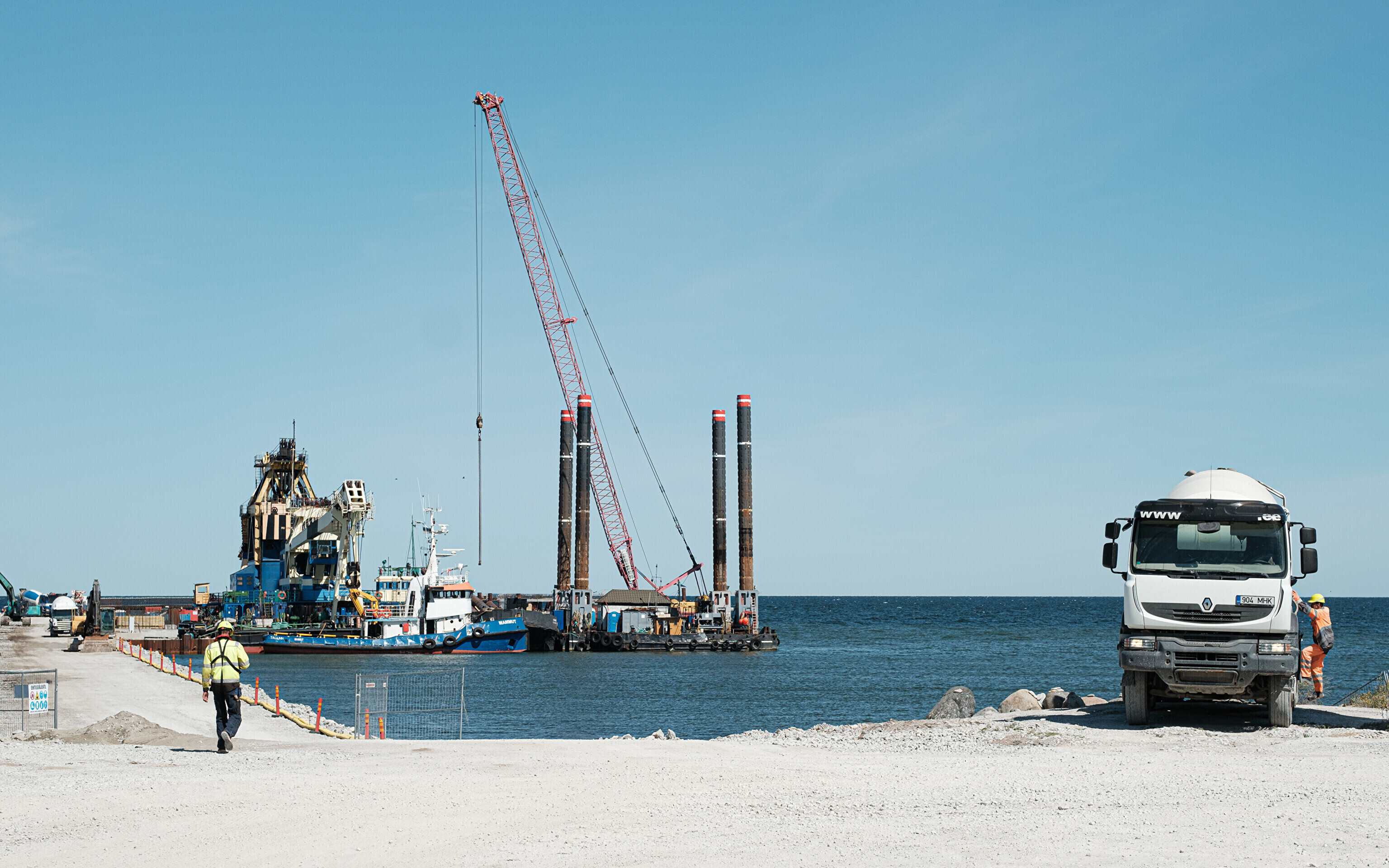 Marti Hääl, chairman of the board of fuel company Alexela, which previously completed dredging work at the Paldiski site, said the construction at Pakrineeme on the nearby Pakri peninsula is also going according to plan, and concrete work has now begun.