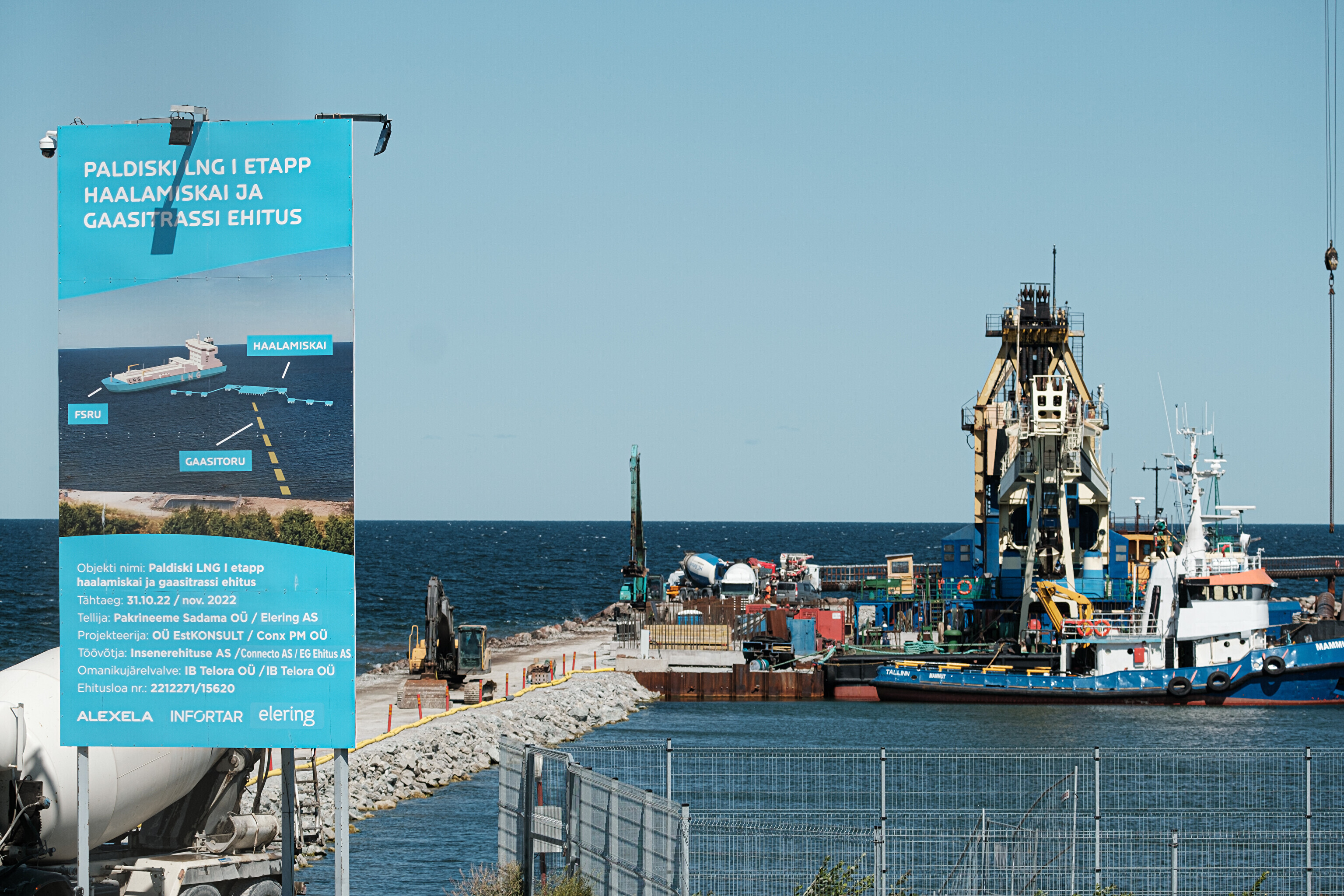 Construction of the Liquified Natural Gas (LNG) floating terminal off the port of Paldiski continues, with both the private investors building the offshore terminal and Elering, which is responsible for installling the gas pipeline, saying they are on schedule to complete the work in November.
