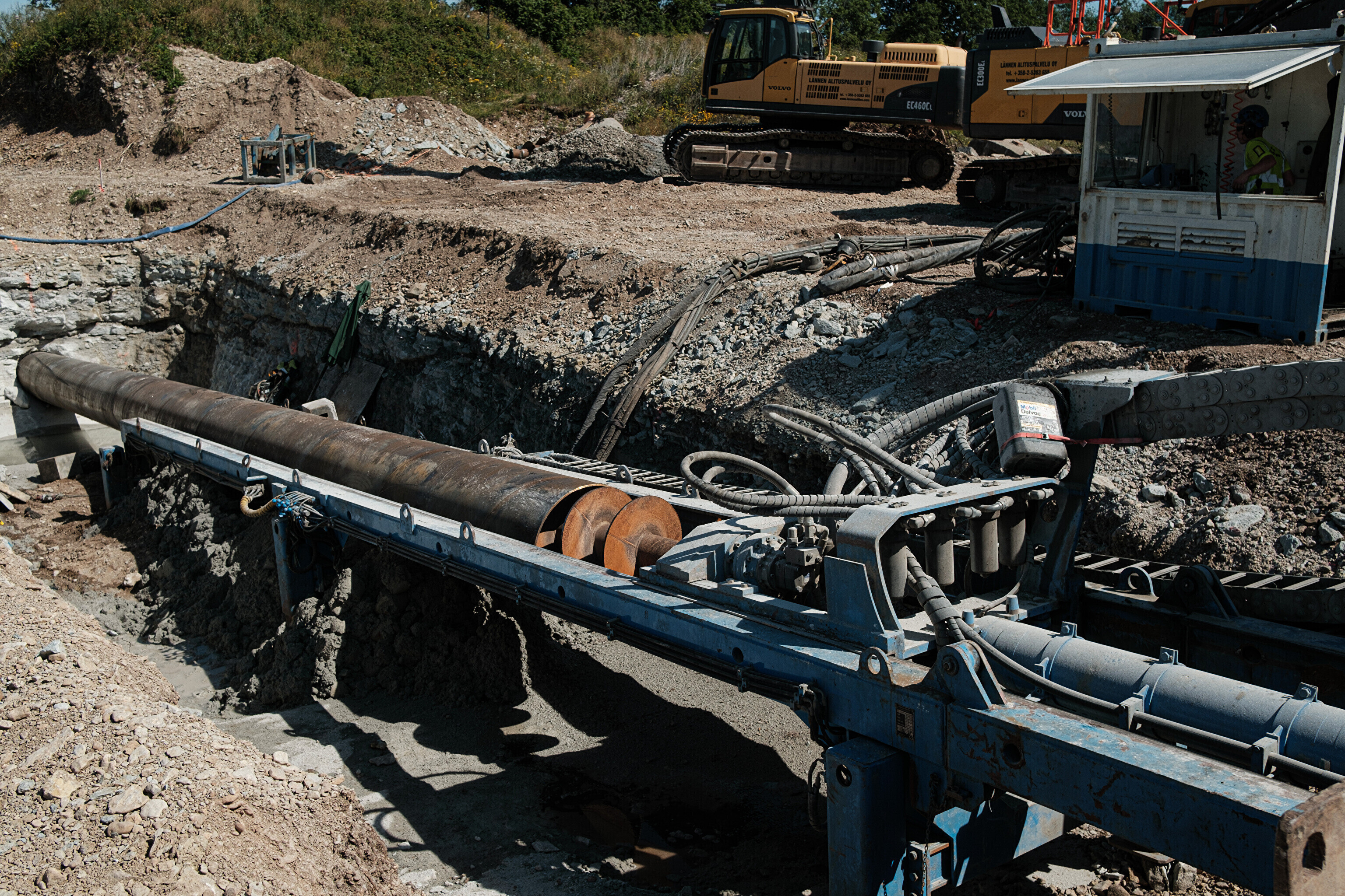 "A drill with a diameter of almost a meter will be put through the rock here and then steel casing will be put in place. A gas pipe, through which the gas will eventually flow, will then be installed inside the steel casing, " explained Priit Heinla, Elering's Offshore Grid development manager.