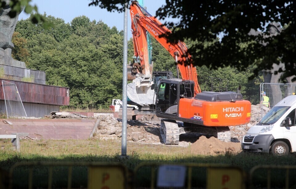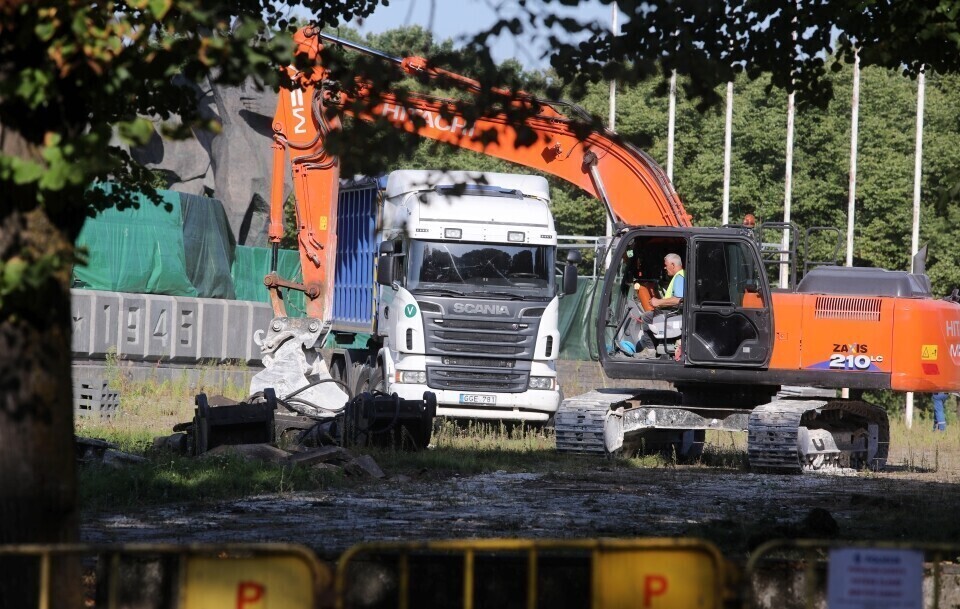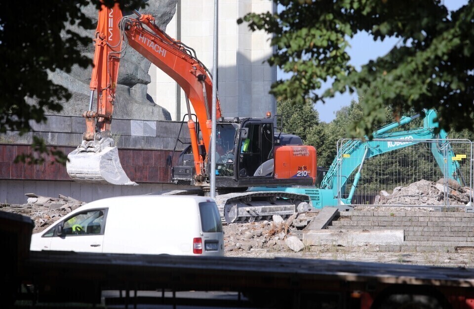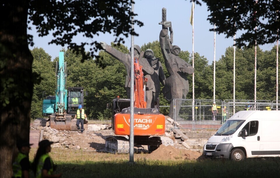 The demolition of a large Soviet monument complex in Riga's Victory Park (Uzvaras parks) began Tuesday following the arrival of large excavators at the site; by Tuesday night, part of the sculptures had already been taken down. Latvian authorities are taking Estonia's experiences into consideration during the process as well.