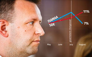 Isamaa, Reform and SDE's coalition partner, saw a slight fall, in the meantime, to 8 percent (from 10 percent in June).