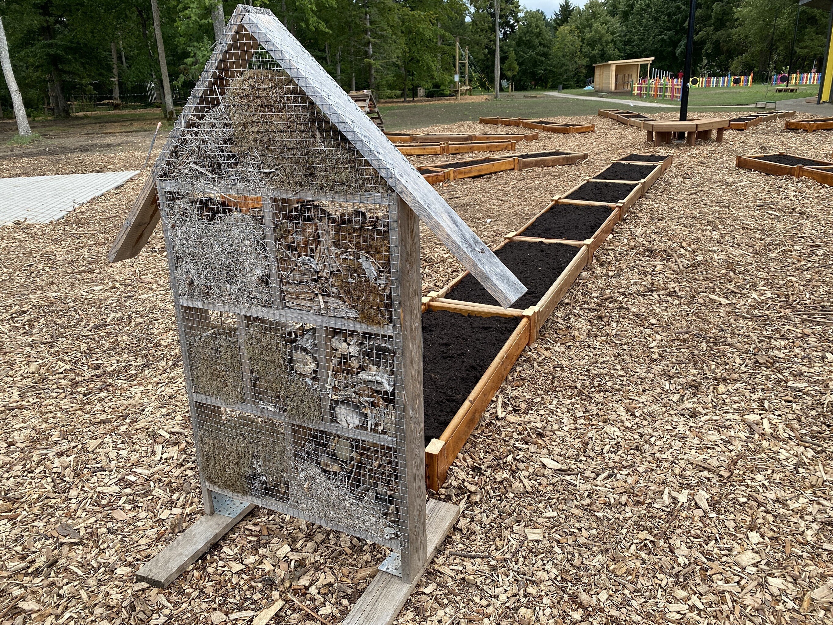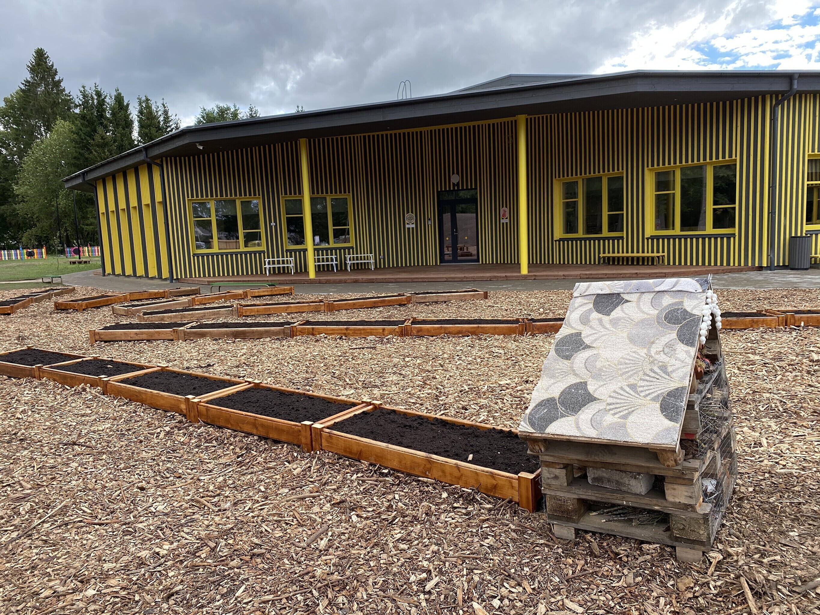 Reminiscent of a giant honeycomb, the new kindergarten can accommodate 16 classes and a total of 334 children. The building includes a gym, art and music rooms as well as opportunities for more solitary time. The outdoor area also features climbing equipment, a bug hotel and even garden beds.