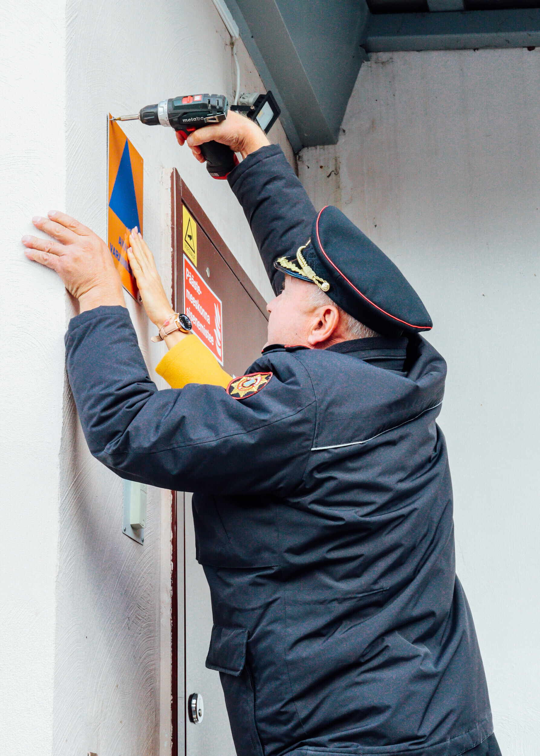 The sign was installed late Thursday morning by Eastern Rescue Center director Ailar Holzmann and Narva Deputy Mayor Irina Smirnova, according to a press release.