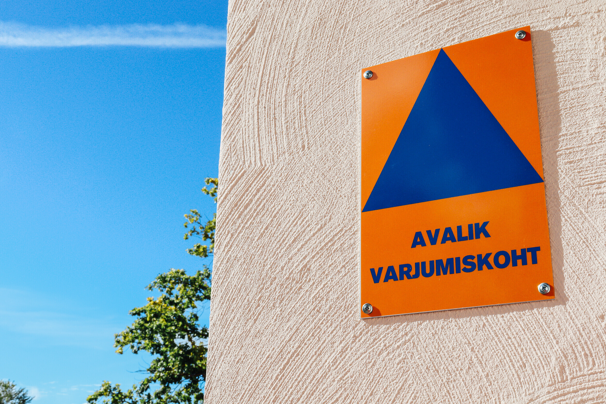 The first seven civil defense shelters in the Northeastern Estonian border city of Narva were marked with signs bearing the international civil defense sign — a blue triangle on an orange background — on Thursday, beginning with a municipal administrative building located at Kerese 20.