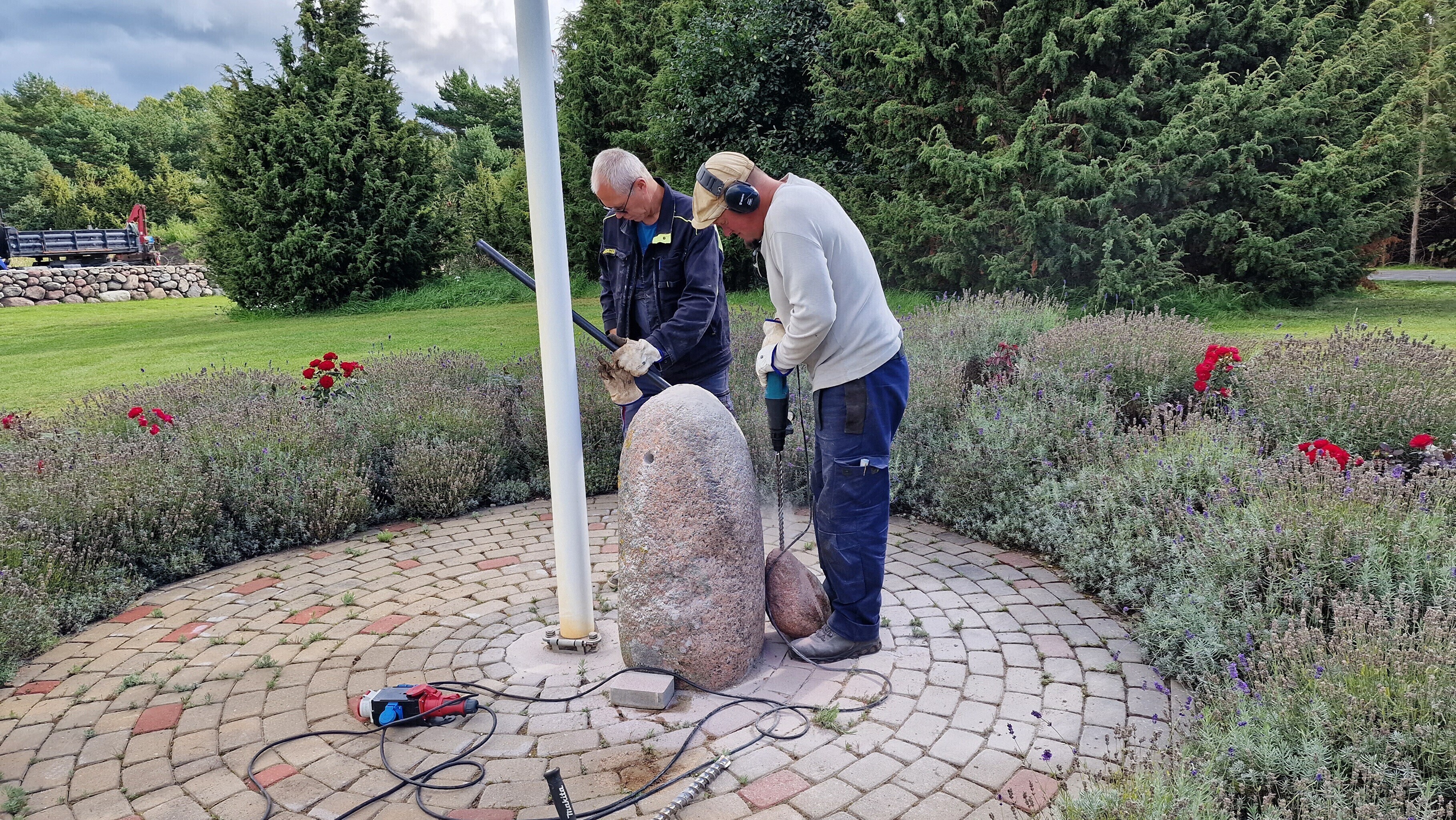 Janek Teller, a stonemason helping with the project, told AK the work is laborious and tough, not only maneuvering the rock, but also the drilling, welding, bending, cutting, smoothing etc., though red granite is slightly easier to drill into than some other materials.