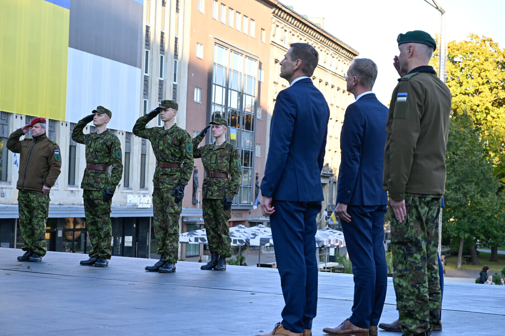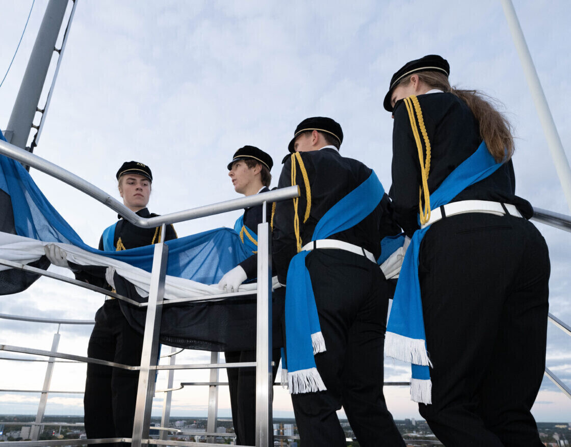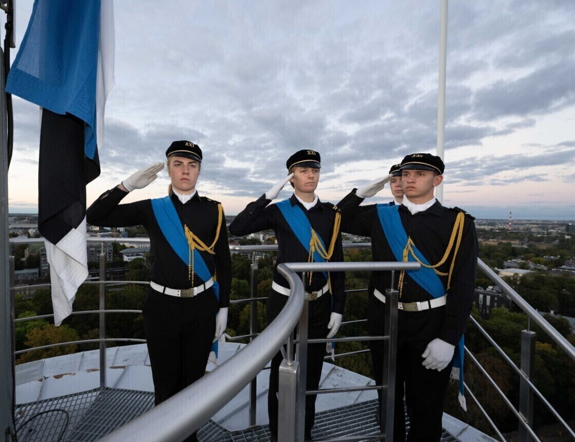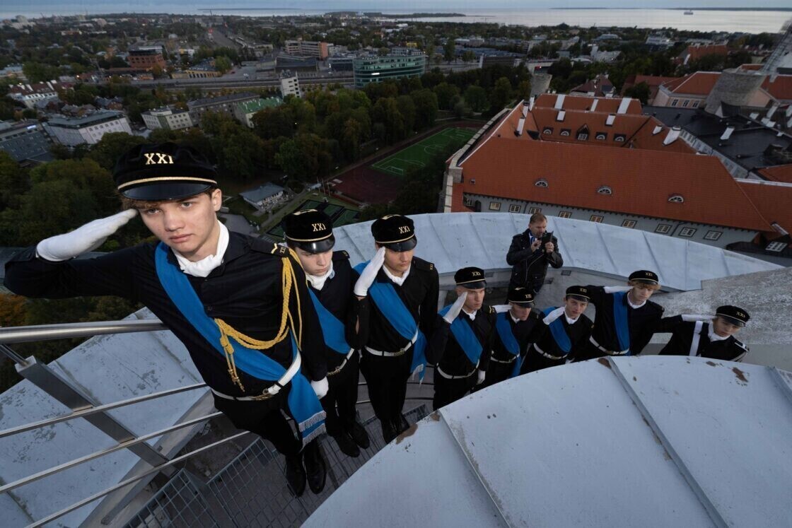 On Thursday morning, the Estonian flag was raised at sunrise (7:04 a.m.) on Pikk Hermann by members of the color guard of Tallinn School No. 21, honoring both the considerable role played by students in the resistance against occupying forces as well as a June 21, 1940 battle fought between the Signal Battalion and occupying forces on the grounds of School No. 21.
