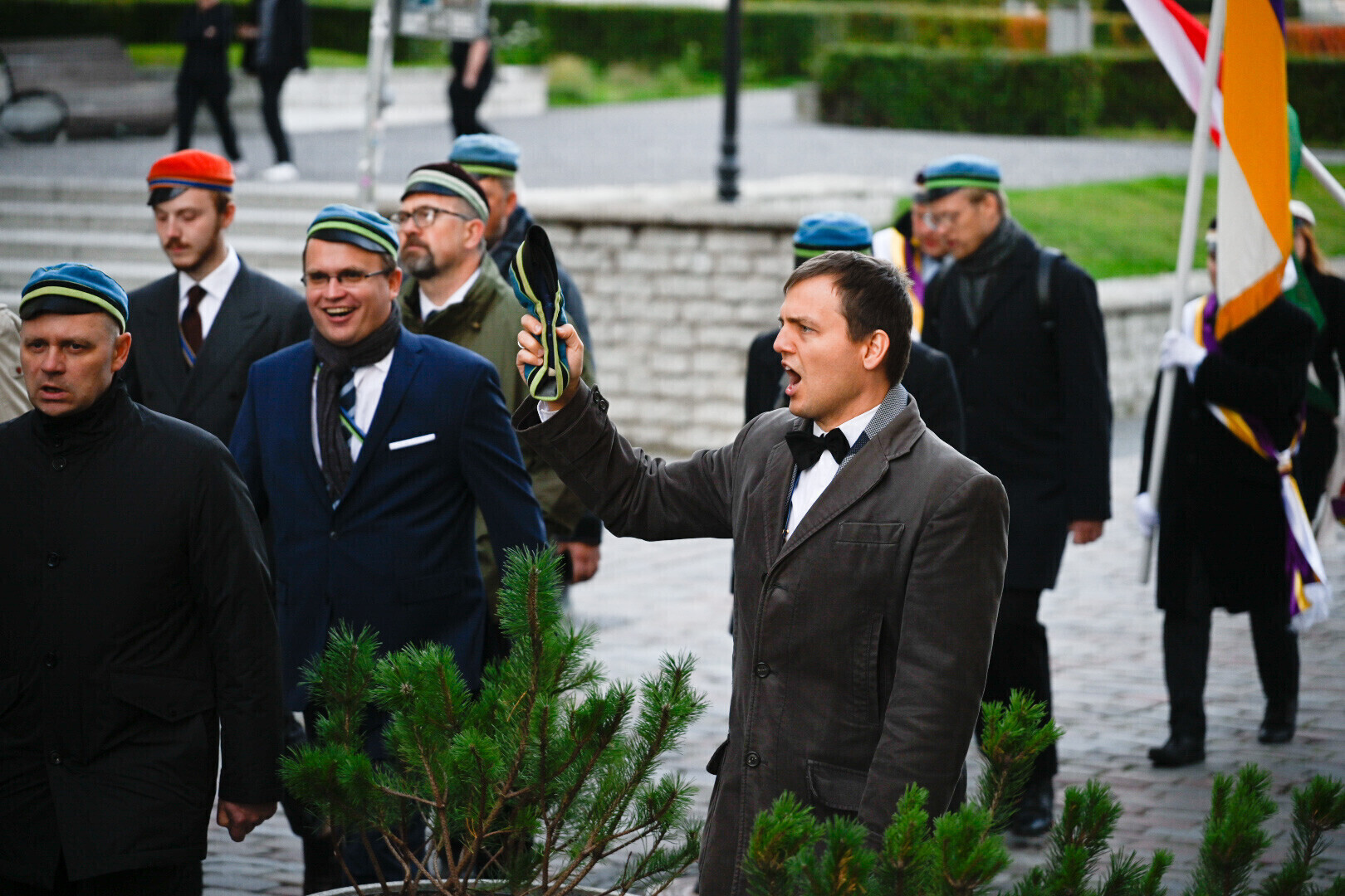 At 6 p.m., a procession of Estonian academic organizations, including fraternities and sororities, will begin in Tallinn's Town Hall Square and move along Harju tänav toward the Monument to the War of Independence in Freedom Square, where memorial wreaths will be laid at the foot of the War of Independence Victory Column by Minister of Defense Hanno Pevkur (Reform), Tallinn Deputy Mayor Tanel Kiik (Center) and the fraternity korp! Fraternitas Tartuensis. Pevkur will give a speech, with a response given by korp! Fraternitas Tartuensis alum Andrus Karnau.