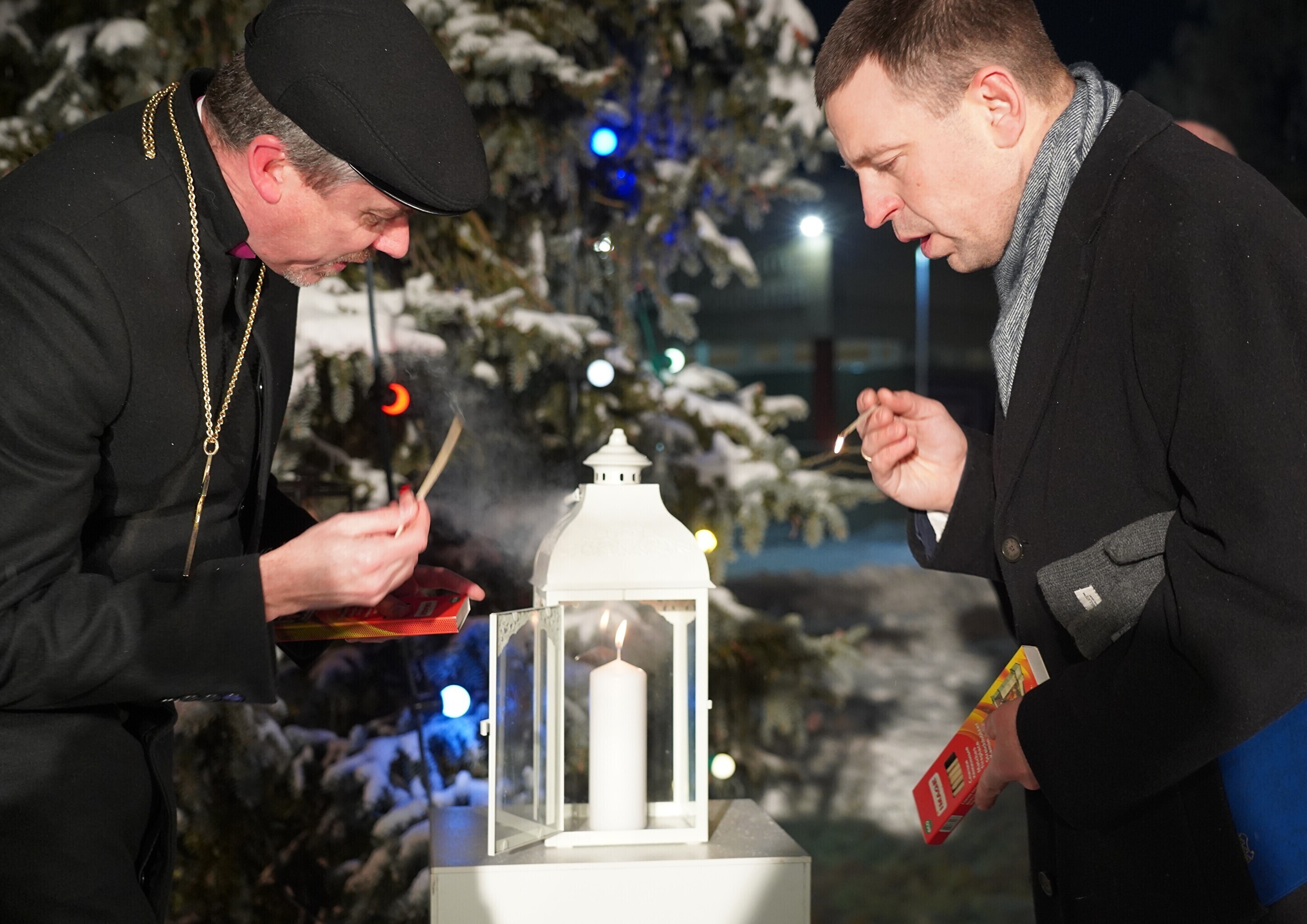 The archbishop and speaker lit a Christmas light together that people who had gathered could take home in their own lanterns.