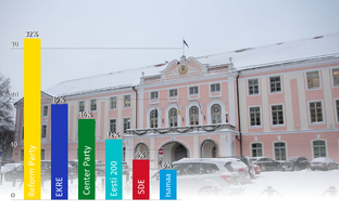 By party, Norstat's latest poll puts 31.8 percent of respondents choosing Reform, a slight fall on the previous week, and 22.8 percent supporting EKRE, a 1.7 percentage point decline on the previous week.