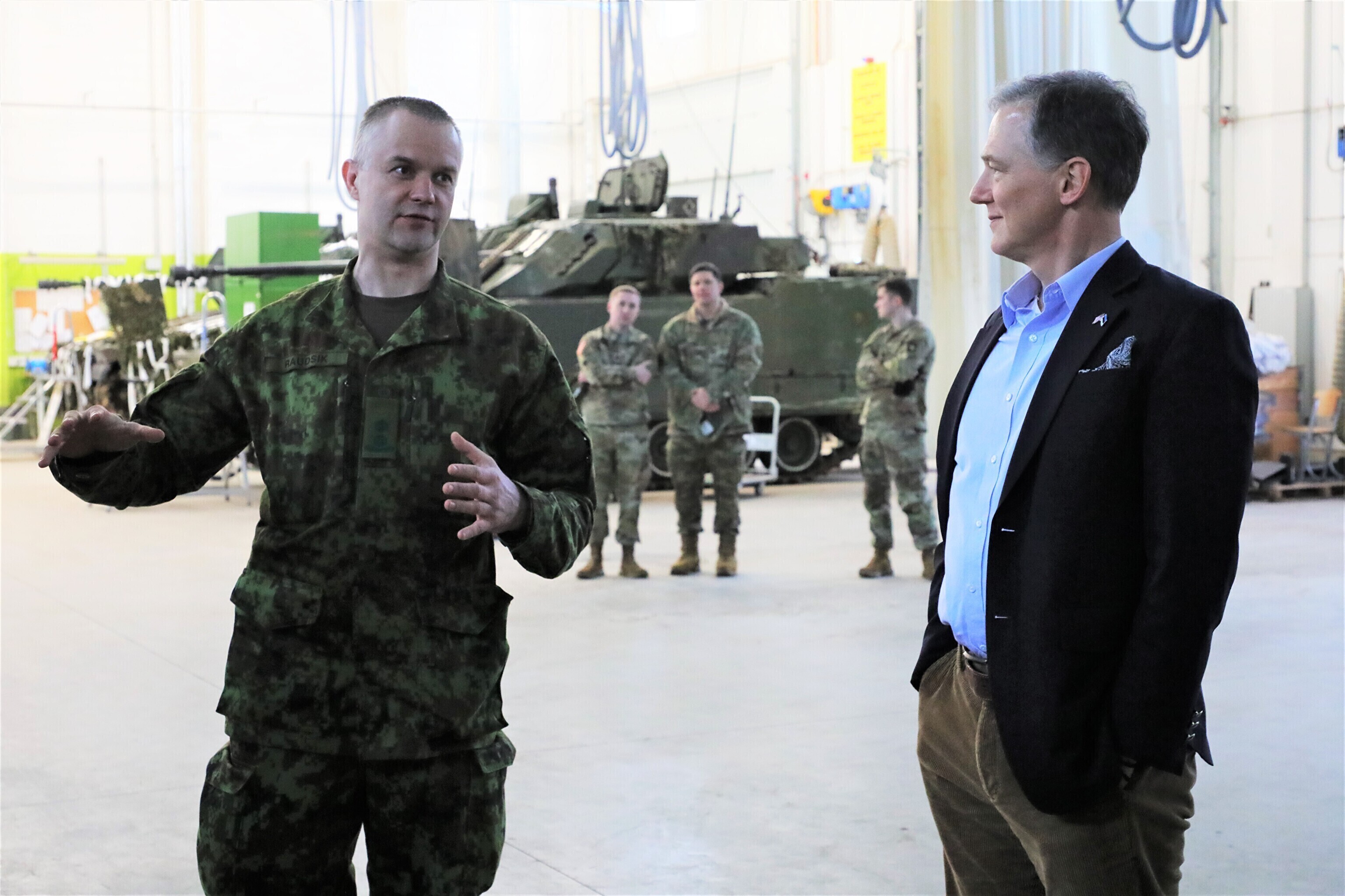 U.S. Ambassador to Estonia George P. Kent and Brig. Gen. Brad Nicholson, commanding general of the U.S. Army Security Assistance Command (USASAC) visited Tapa Army Base on Tuesday, where they met with U.S. troops stationed there as well as members of the Estonian Defense Forces (EDF) and NATO Battlegroup Estonia.