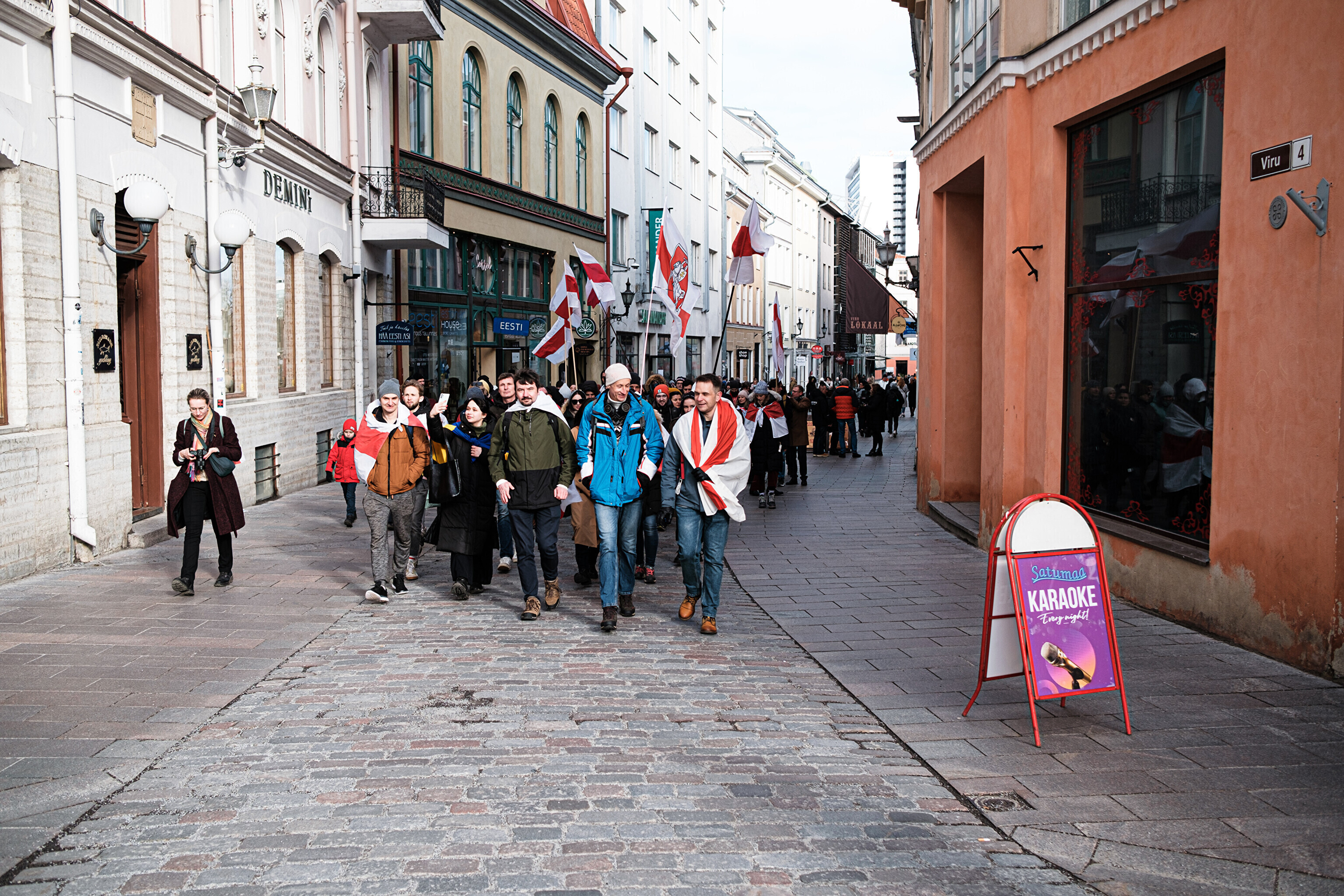 After several speeches, a procession took place through the Old Town to Vene tänav 19 where flowers were laid under a plaque commemorating the military-diplomatic mission of the Belarusian People's Republic (BPR).