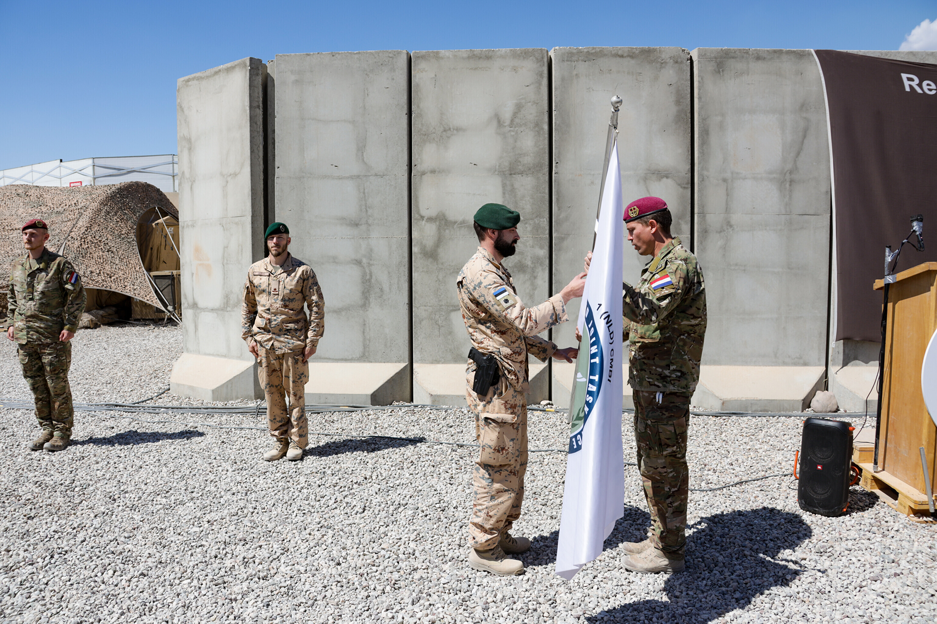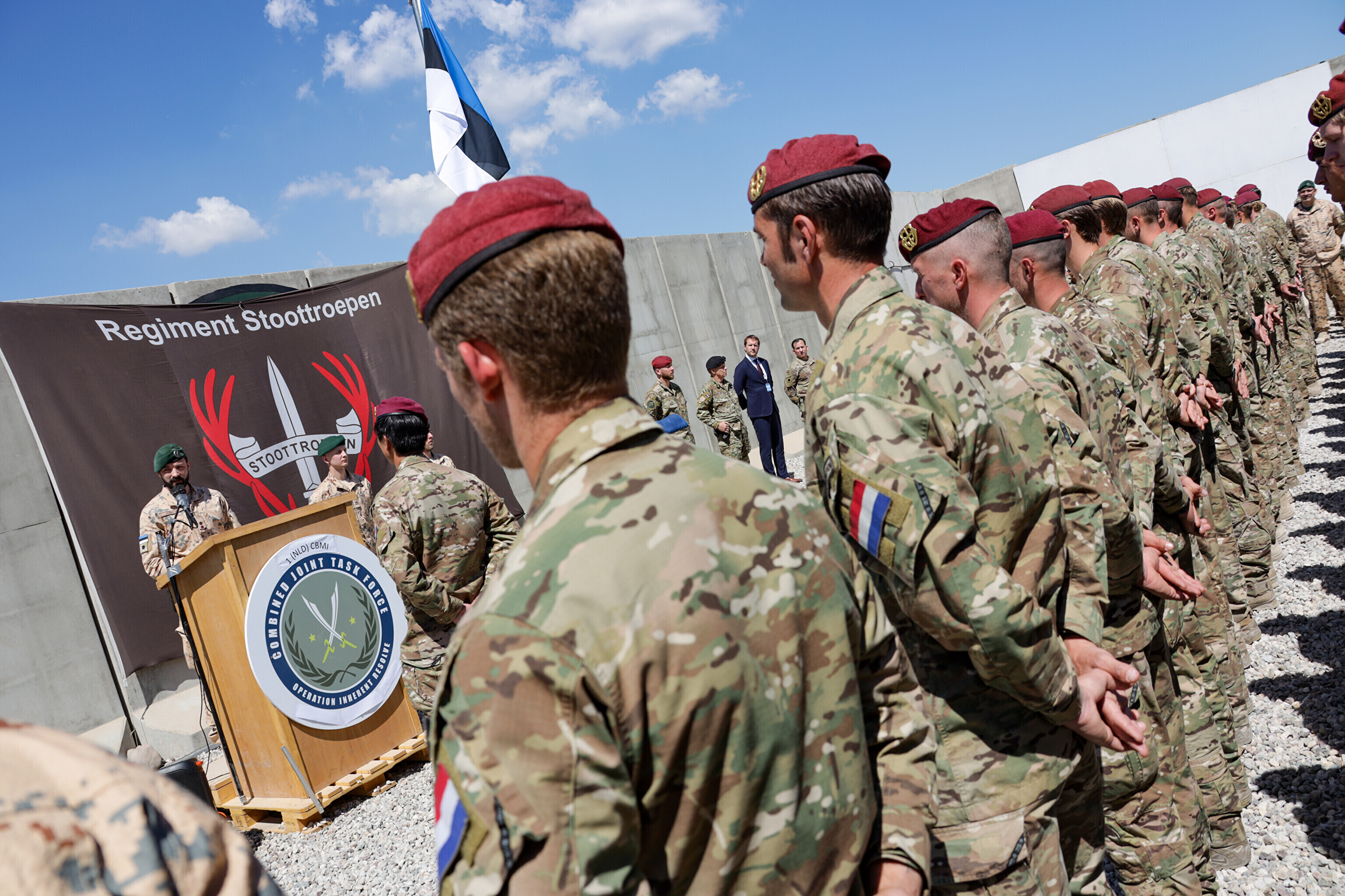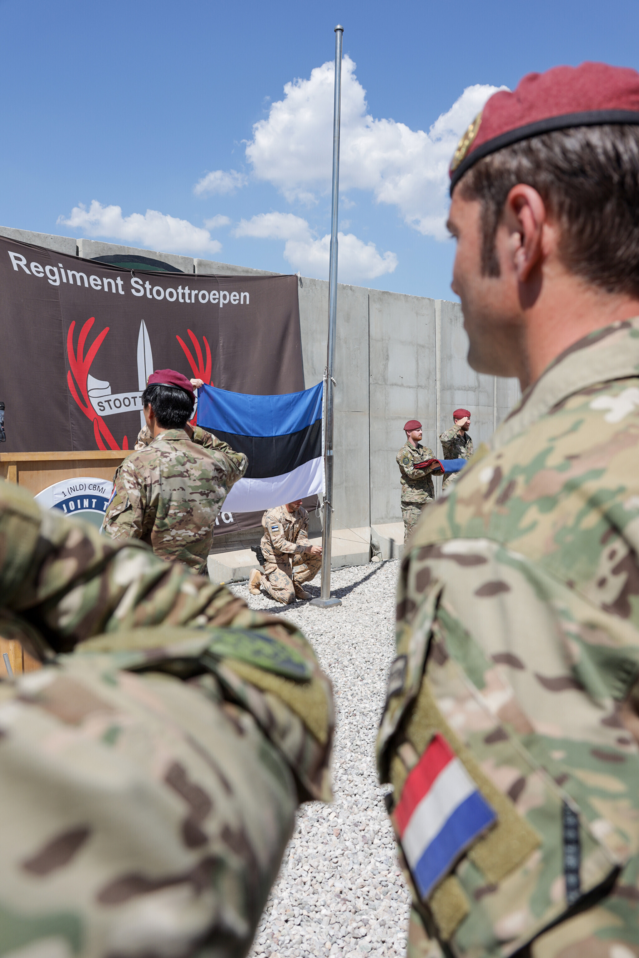 The Dutch, which has a similar size company, handed over their responsibilities to the Estonians on Monday with a flag-raising and lowering ceremony.